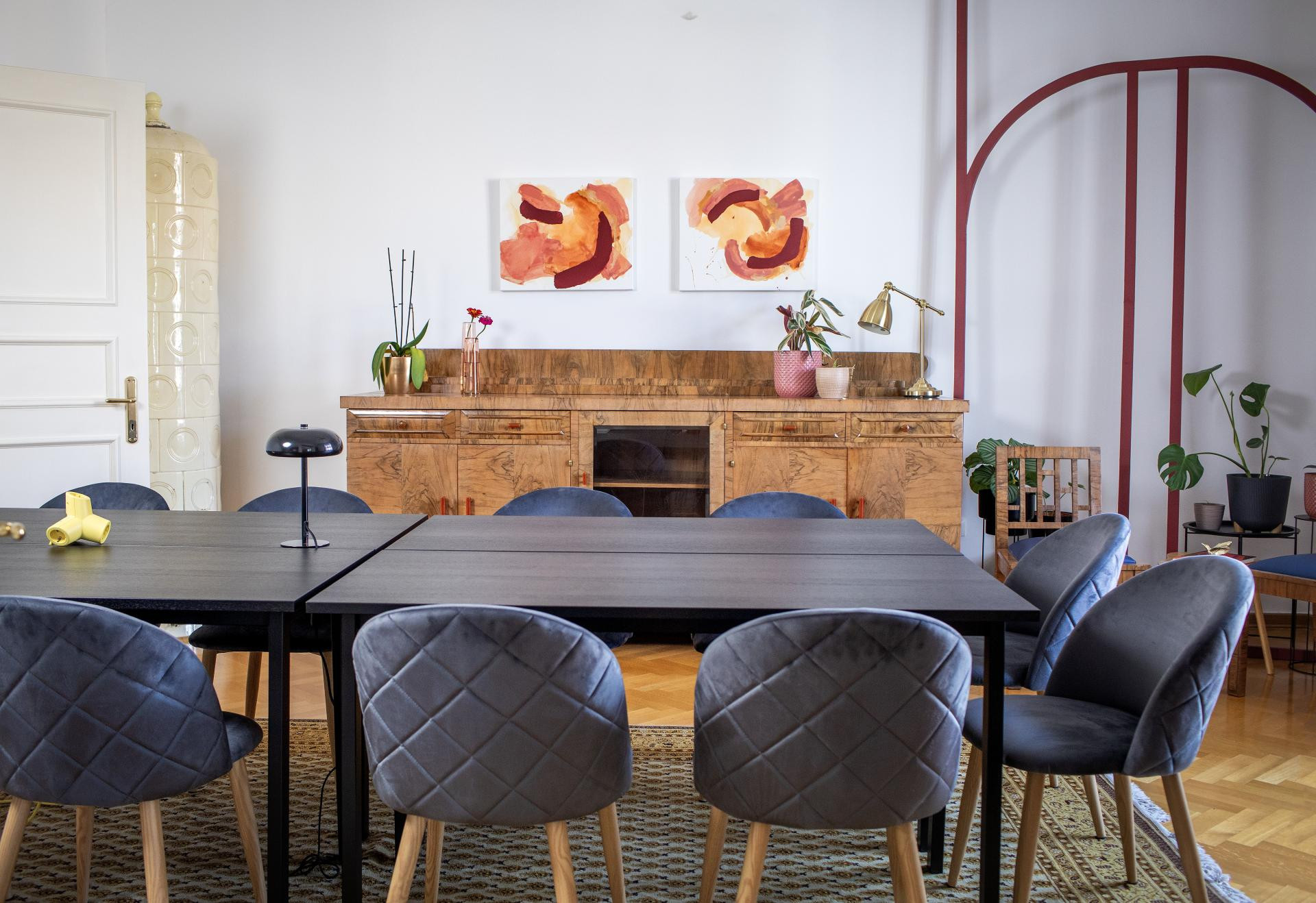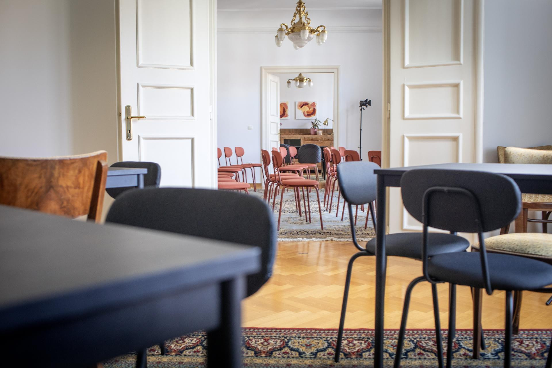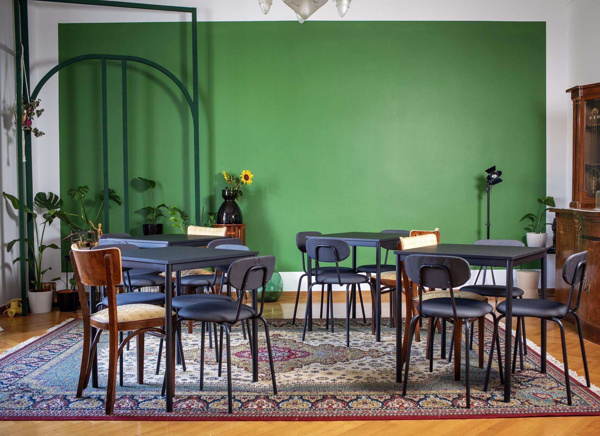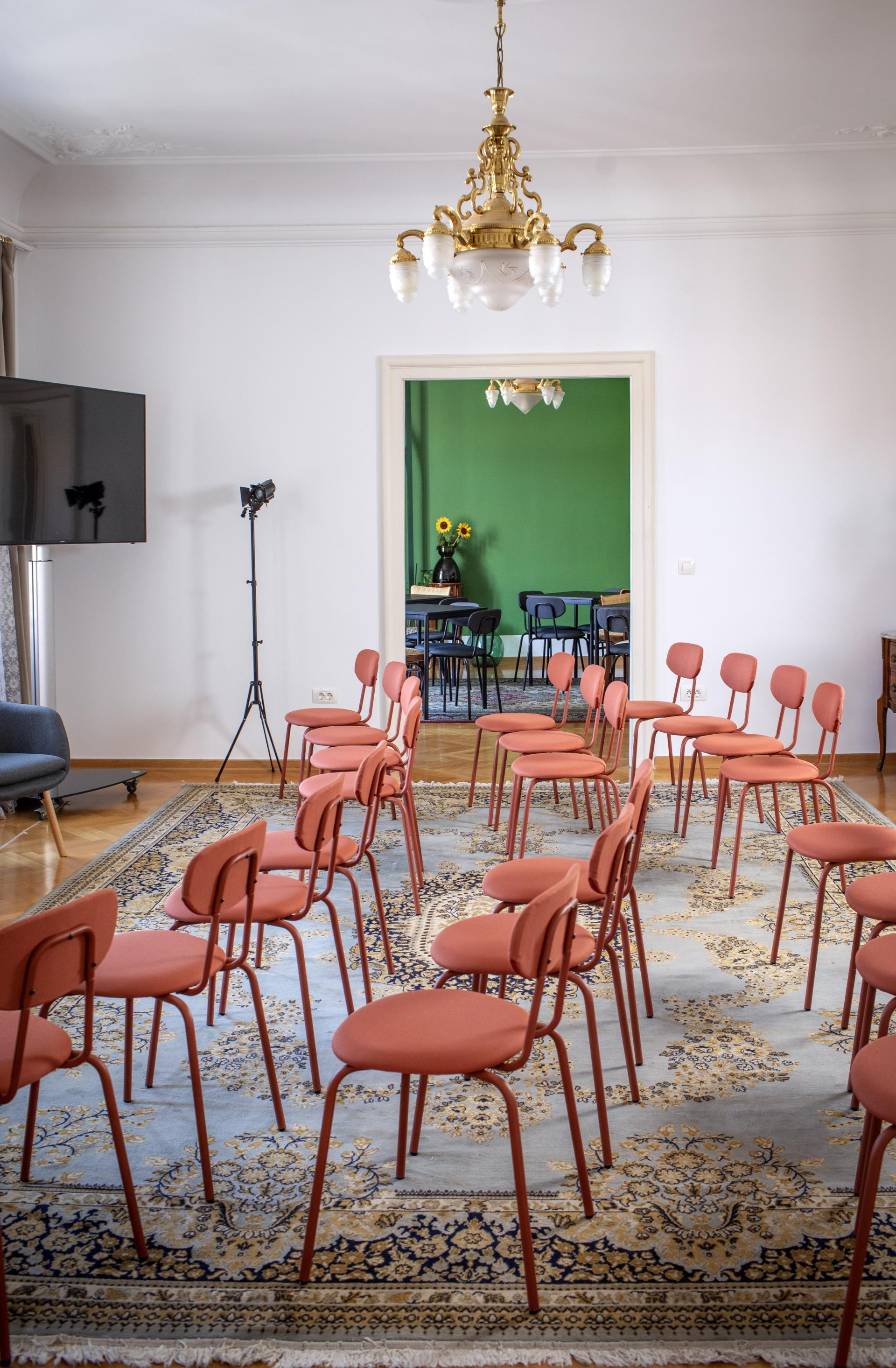 - Naš inventar je eklektičan po naravi, od stilskih stolaca do udobnih, modernih fotelja. Stolovi su praktični i lagano prenosivi, što je velika razlika od stilskih komoda, za koje volimo reći da su se ‘ugnijezdile‘ u svoje pozicije i bolje ih je tamo ostaviti. Osim namještaja, u prostoru se nalaze pomični TV ekrani koji, za razliku od projektora i platna, dopuštaju da se prezentacija odvija uz dnevno svjetlo, što je puno ugodnije za cjelodnevni rad na radionicama ili seminarima.