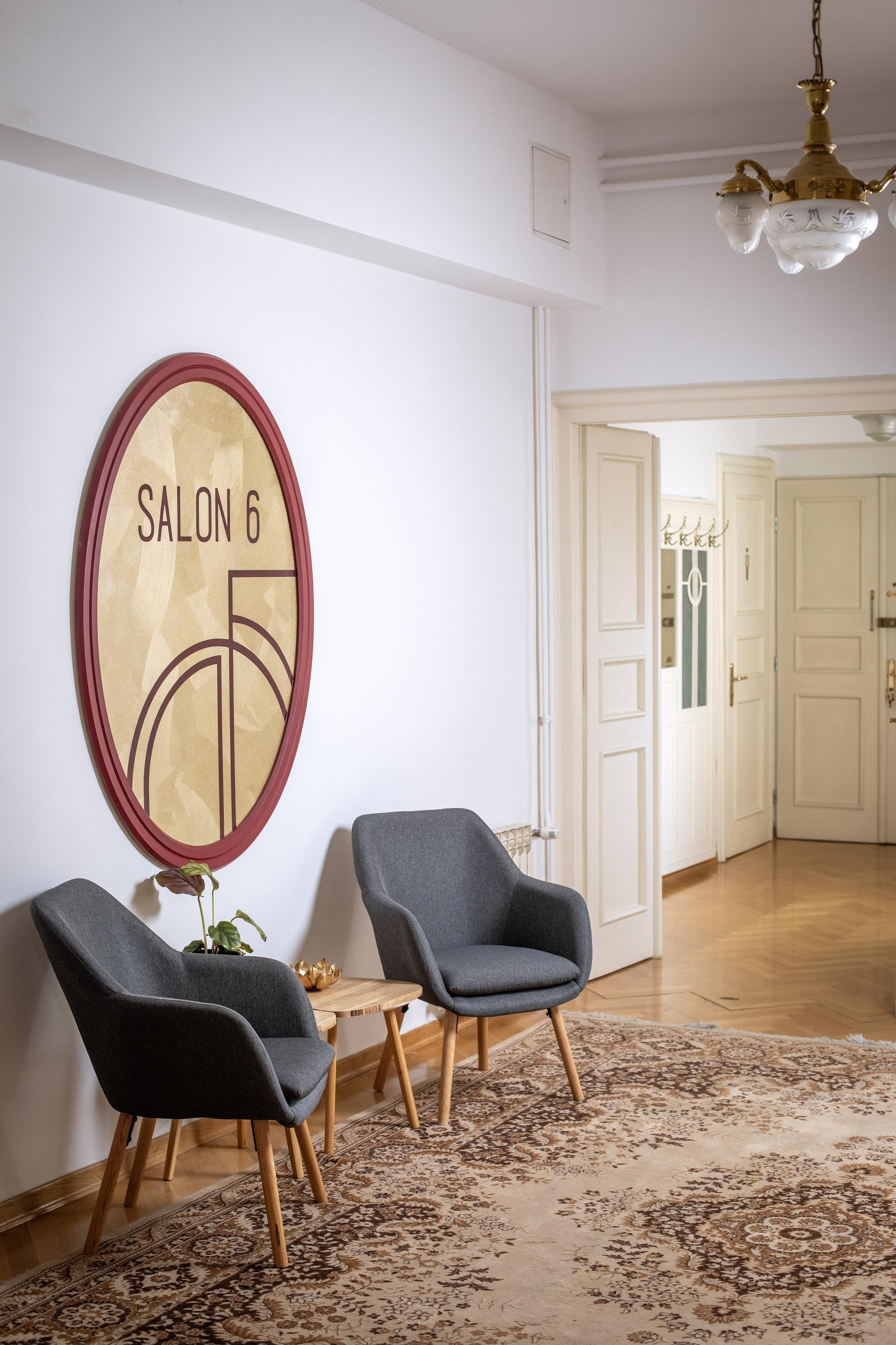 Upravo iz tih lukova proizašao je i vizualni identitet Salona 6, logo i grafička rješenja koja dijele istu osobinu kao i prostor, modularnost i suptilne varijacije koje ga čine jedinstvenim.