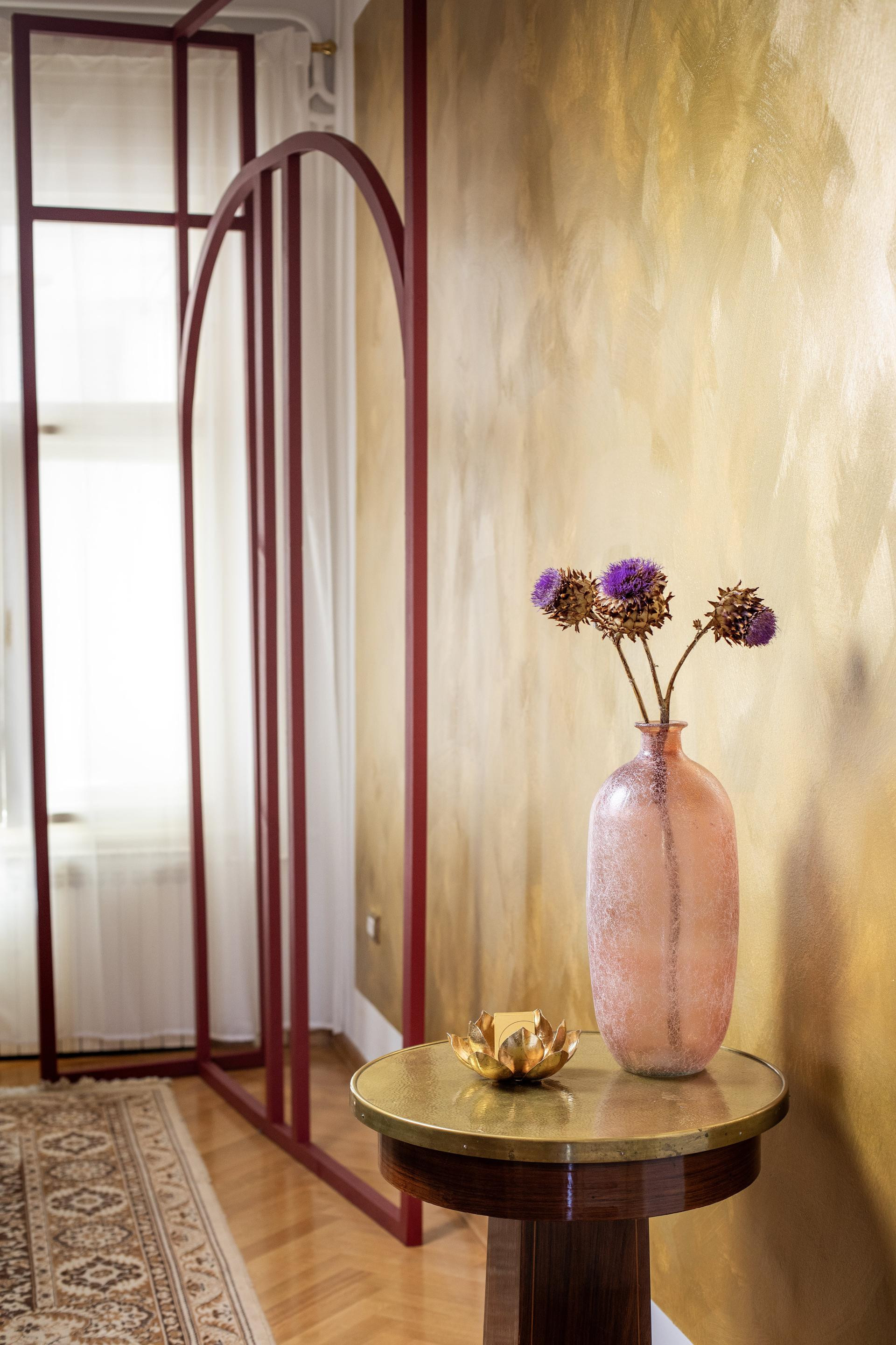 Stan je bio očuvan, ali prazan i bez karaktera. Osim manjih zahvata na zidovima, nije zahtijevao dodatne građevinske radove. Proces uređenja Andrea je započela sama. Postojeći stilski elementi - zlatni lusteri, ručno kreirane štukature i čak tri kaljeve peći, divne stilske komode, stolove i stolce, zatečeni u prostoru koji je ranije bio namijenjen na dnevni najam - podsjećali su ju na salonske susrete starog Zagreba.