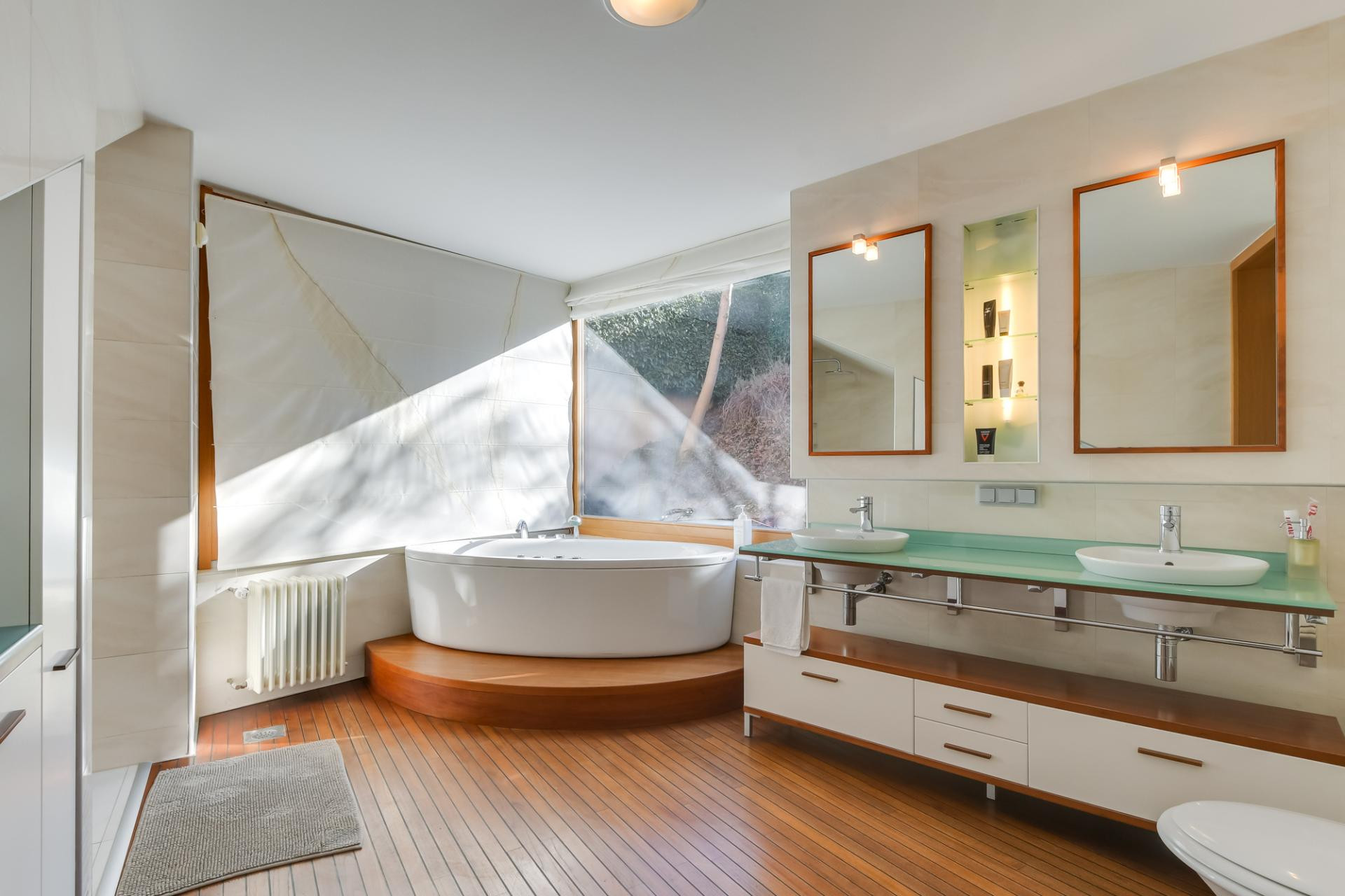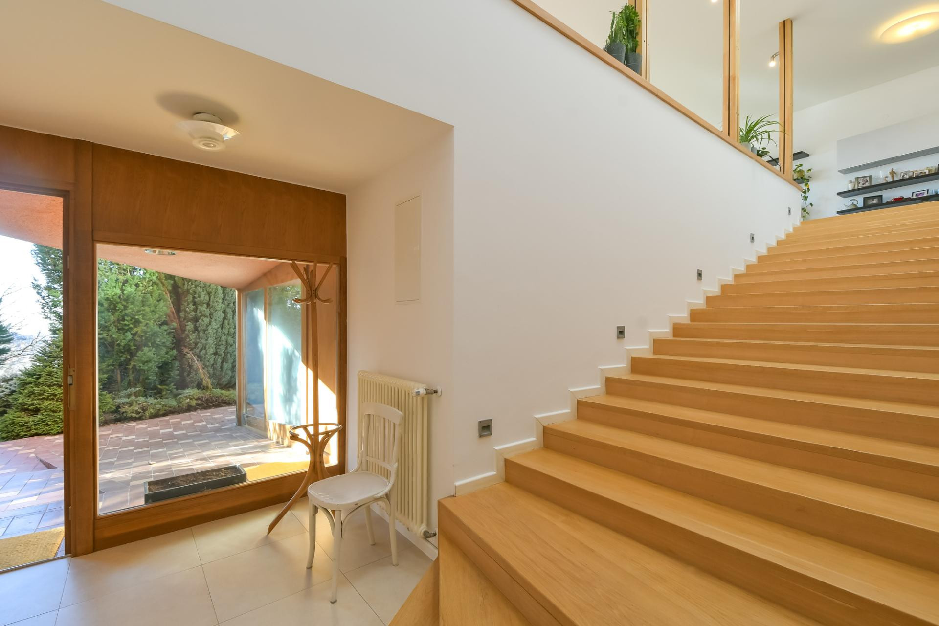 Vanjski prostori dodatno obogaćuju doživljaj nekretnine: uređeni vrt s roštiljem poziva na boravak na otvorenom, a spominje se i postojanje bazena unutar posjeda, čime se ova vila dodatno pozicionira u kategoriju luksuznog obiteljskog doma.