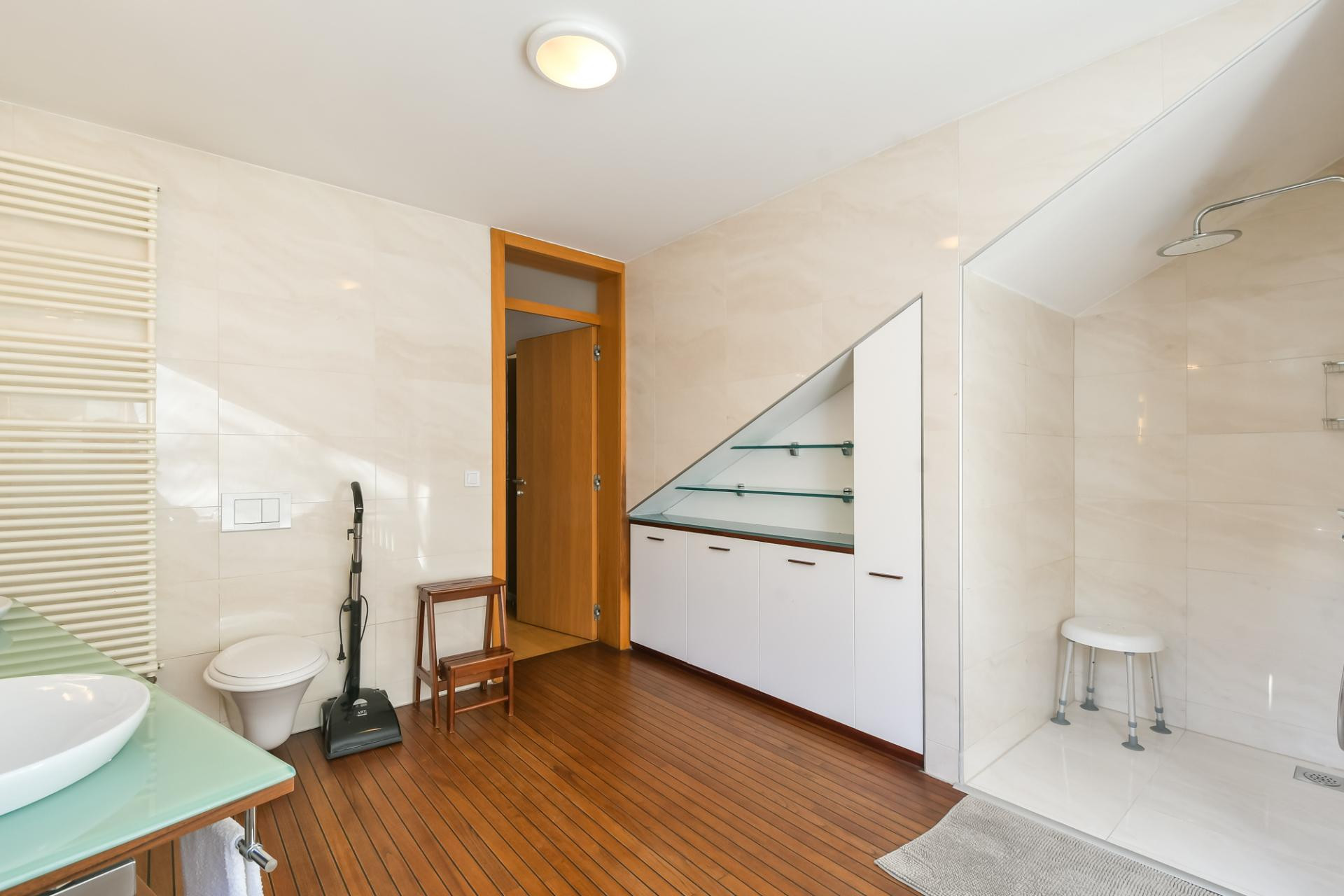 Stambeni dio zauzima približno 390 četvornih metara te je podijeljen u dvije funkcionalne jedinice. Prvu čini prizemni dvosobni stan površine 80 m², koji uključuje dnevni boravak s kuhinjom i blagovaonicom, spavaću sobu, kupaonicu, toalet i ostavu.