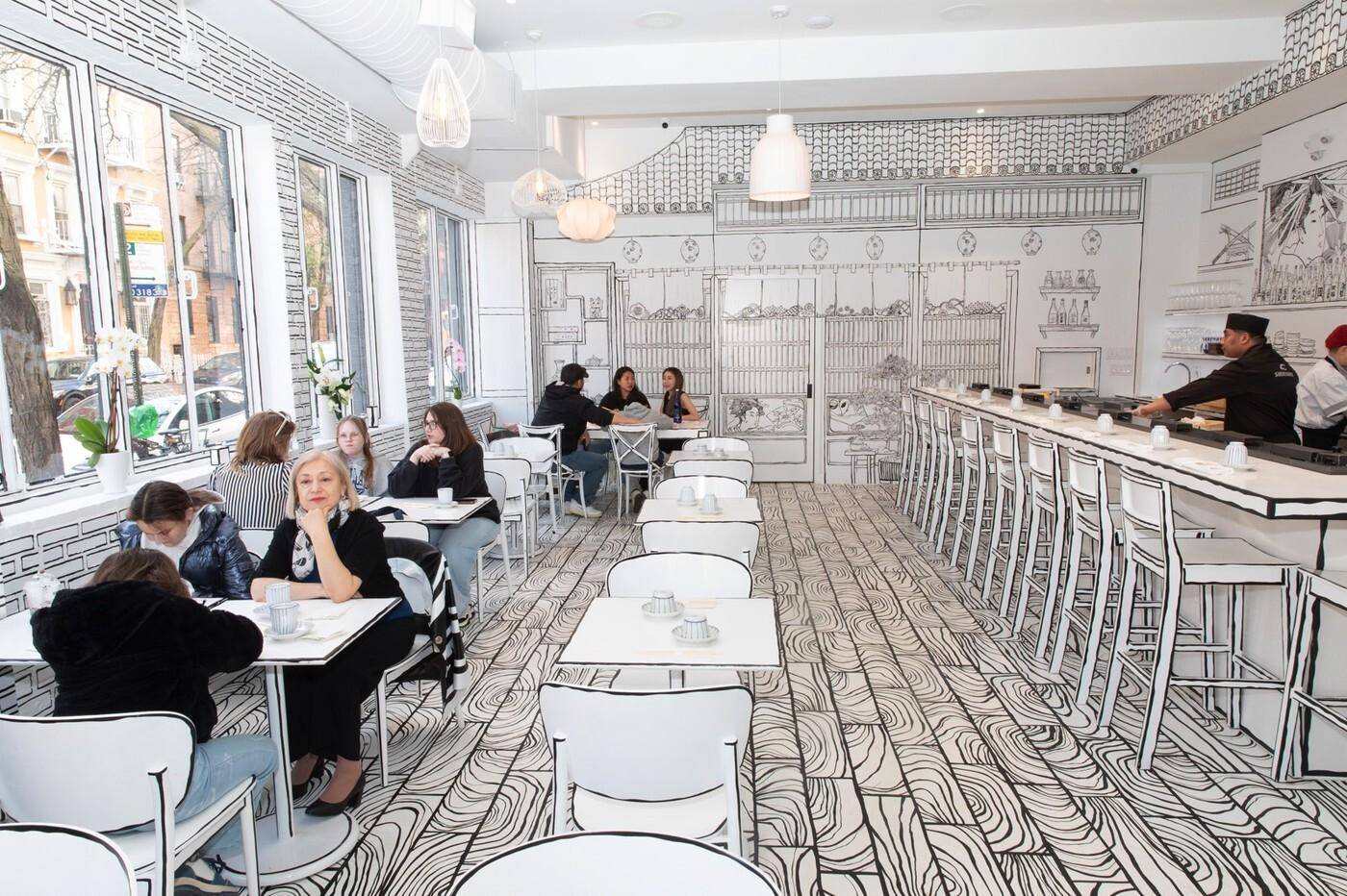 Vizualni dojam, međutim, ostaje glavni magnet za posjetitelje. Gosti se često zaustavljaju već na ulazu kako bi fotografirali crno-bijeli svijet u koji ulaze, dok im se oči pokušavaju priviknuti na iluziju prostora bez dubine. Zidovi izgledaju kao stranice stripa, stolice kao da su samo skicirane, a sushi bar istovremeno djeluje stvarno i nestvarno. Upravo taj kontrast između šarenih tanjura i monokromatskog okruženja stvara upečatljiv prizor - hrana gotovo „iskače“ iz scene, naglašena skromnom, ali moćnom estetikom prostora.