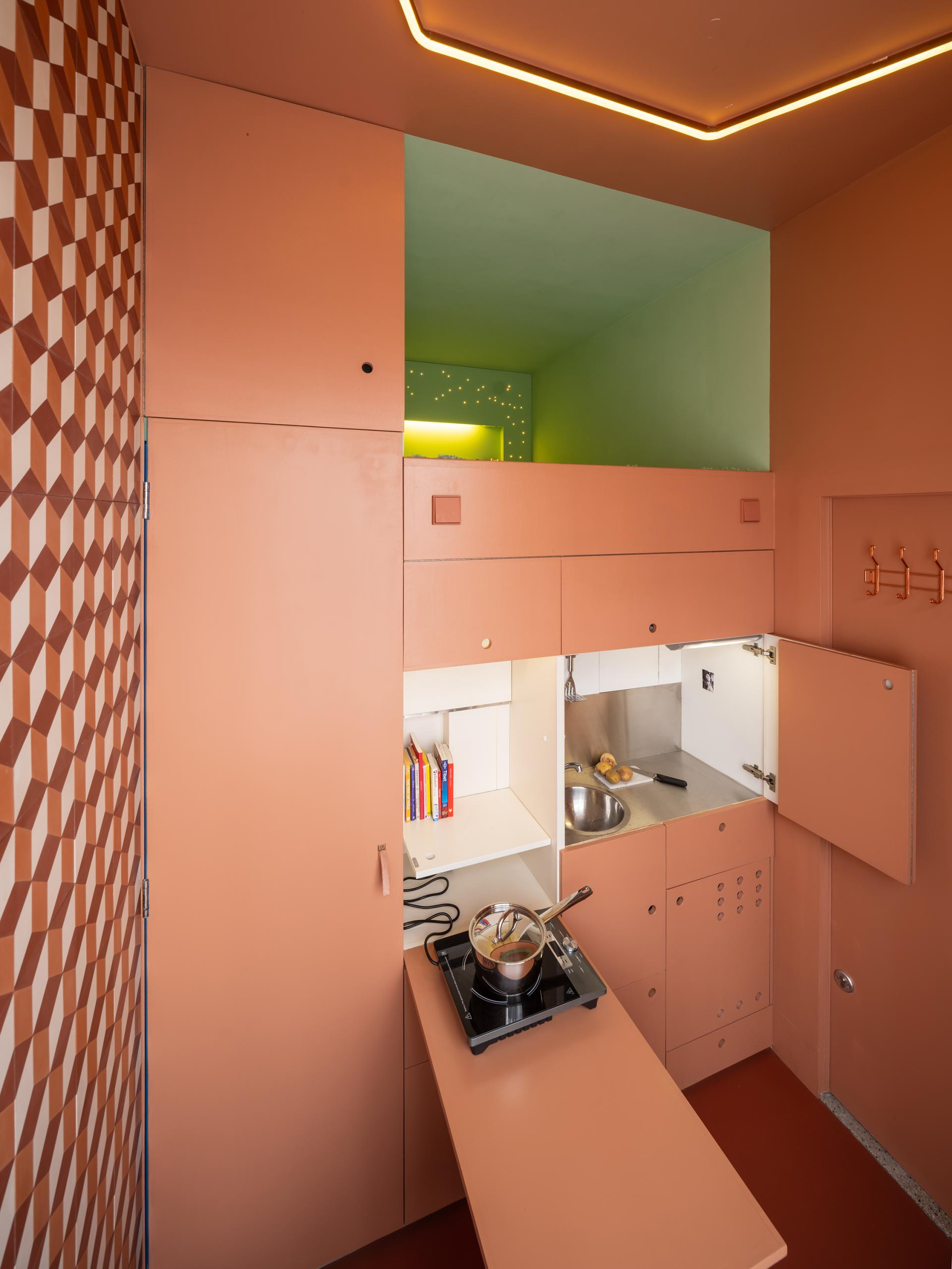 - Cabanon je prenamjena postojećeg tavana koji se prije koristio za skladištenje u stambeni prostor. Nalazi se na najvišem katu stambene zgrade iz 1950-ih u središtu Rotterdama. Njegove unutarnje dimenzije su V: 3 m, Š: 1,97 m, D: 3,6 m. Unatoč nedostatku kvadrata ima predivan pogled na grad, u koji se odmah zaljubiš - rekli su nam arhitekti i napomenuli da je stan Cabanon ime dobio po istoimenoj kolibi Le Corbusiera na Côte d‘Azur. Ipak, ovaj stan ima 6,89 m², upola manje od Le Corbusierove jedinice i, za razliku od njegova Cabanona, potpuno je autonoman i dizajniran za par. Najbolji dio priče je da smo ga radili za sebe - smiju s Beatriz Ramo, arhitektica i vlasnica STAR strategies + architecture studija i Bernd Upmeyer, arhitekt i vlasnik BOARD (Bureau of Architecture, Research and Design).