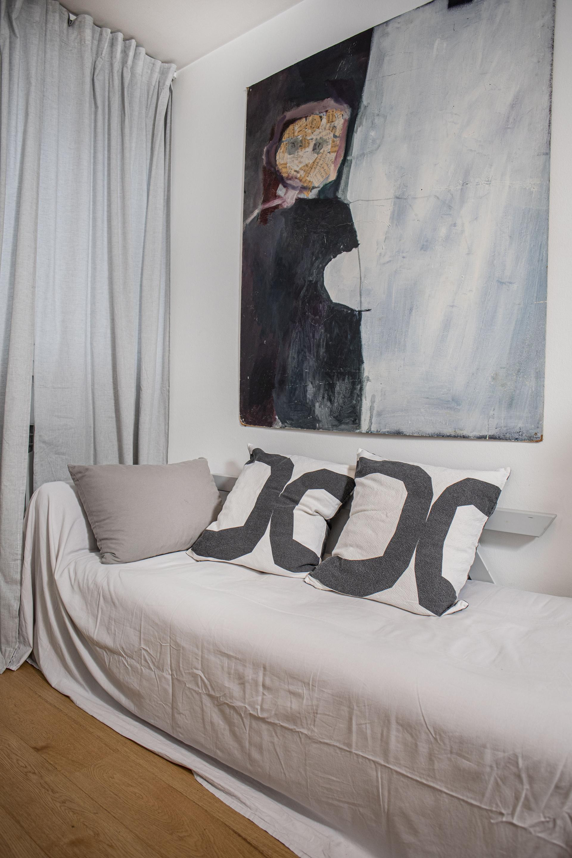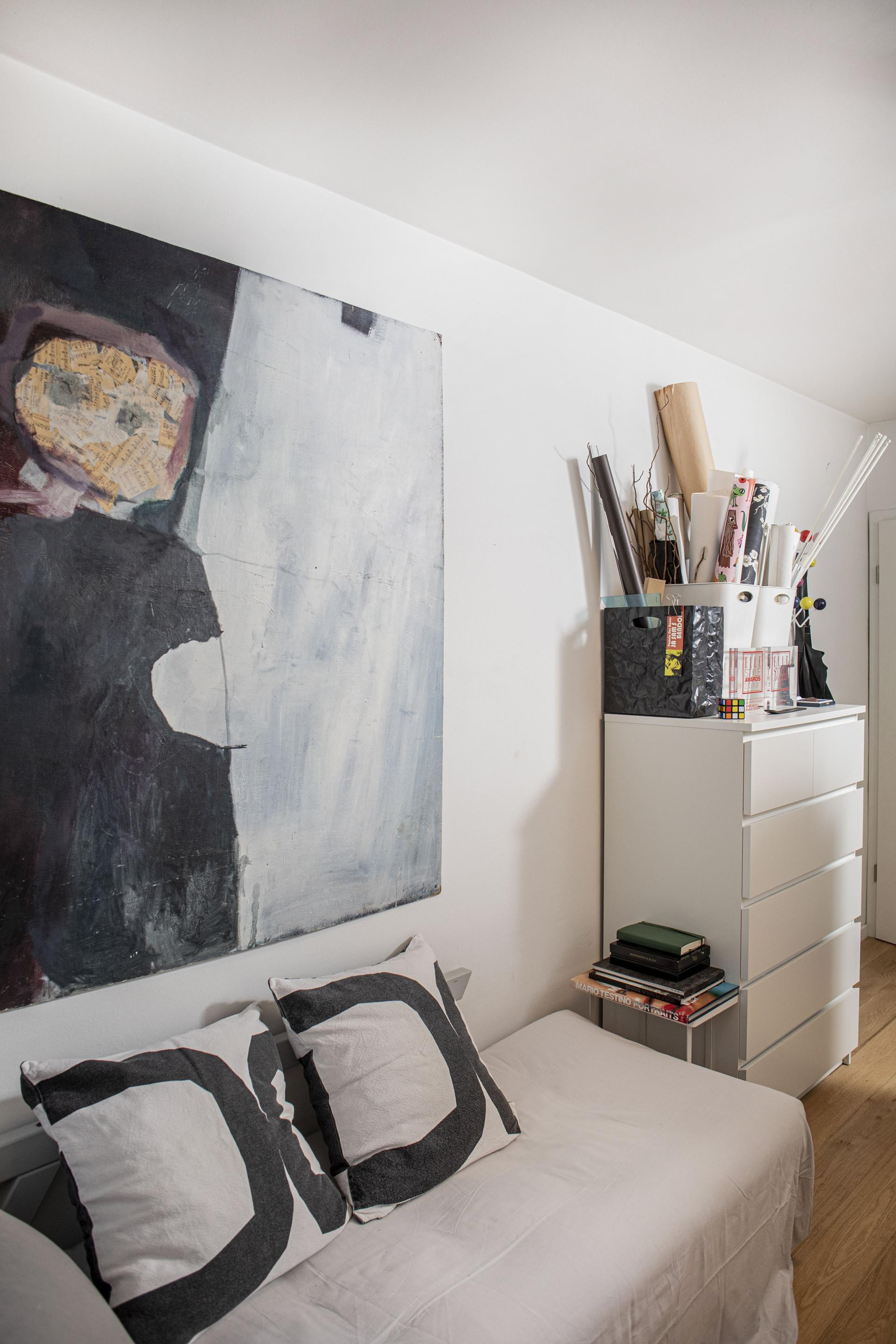 Na zidu iznad manjeg kauča u radnoj sobi nalazi se rad Ane Kolega