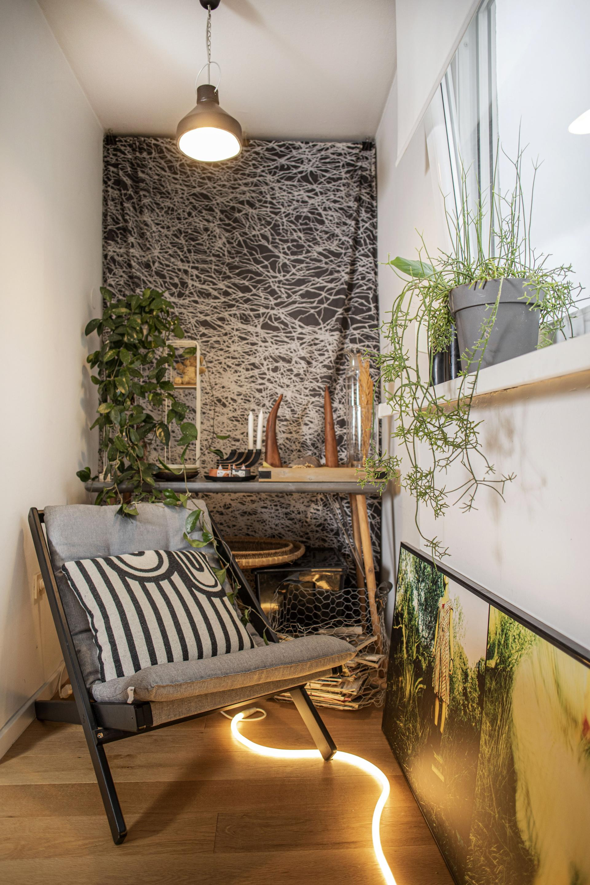 Ovaj dio stana se zove Plaža. Tu je i jedan od tematskih kutaka posvećen obitelji, bivšim vezama i biljkama. Ležaljka je Karup design, luster je s potpisom Le Band design, a košara je Pepo stuff