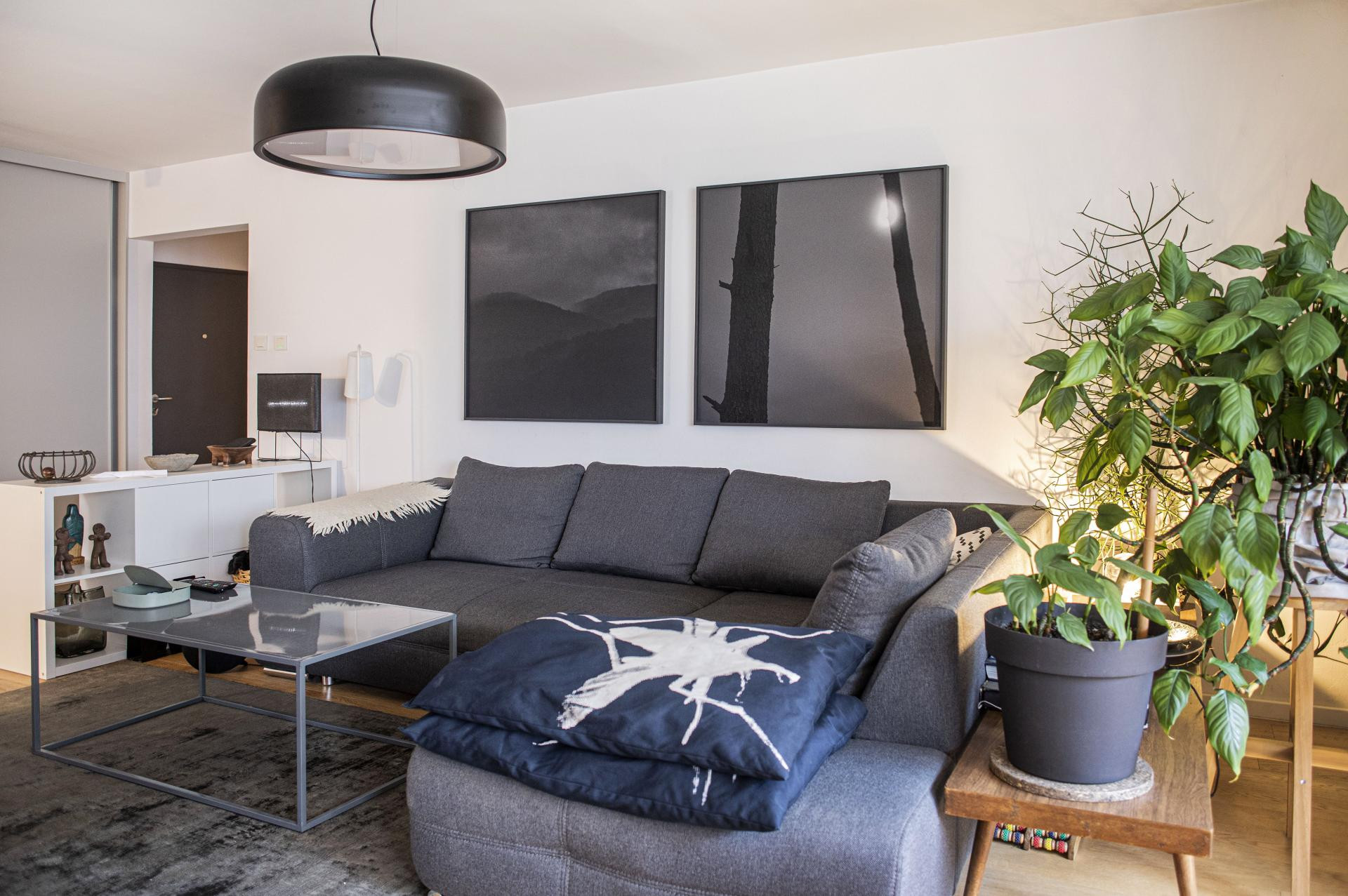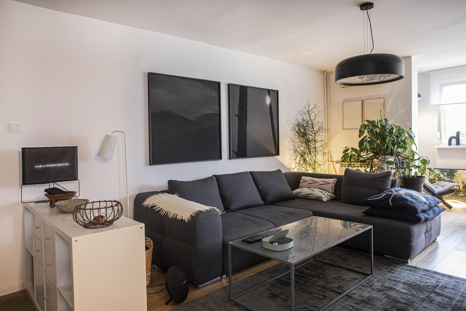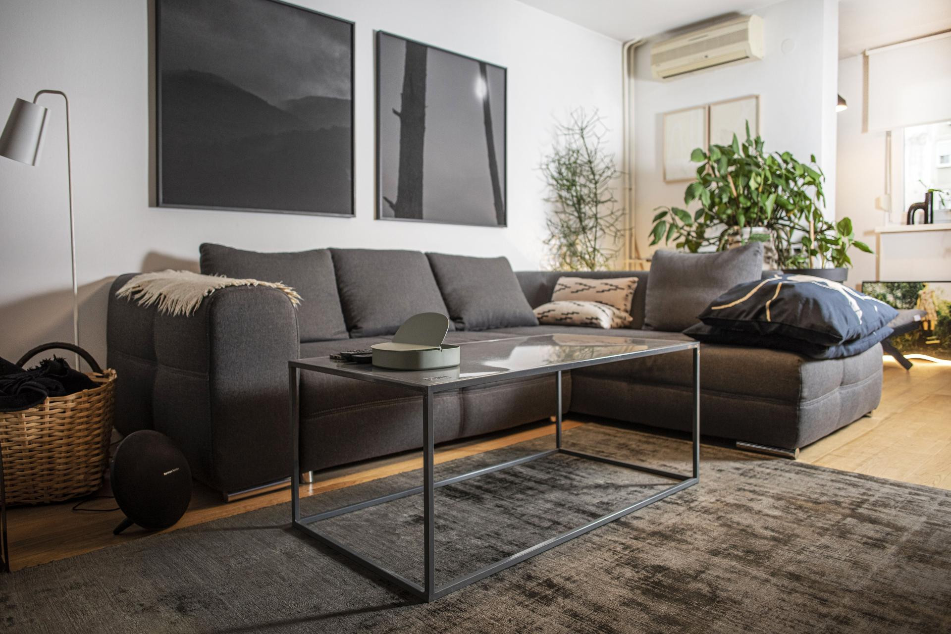 Dnevnim boravkom dominira robusni tamnosivi kauč, model Maverick iz Emmezete, vrhunskog dizajna i jako kvalitetan