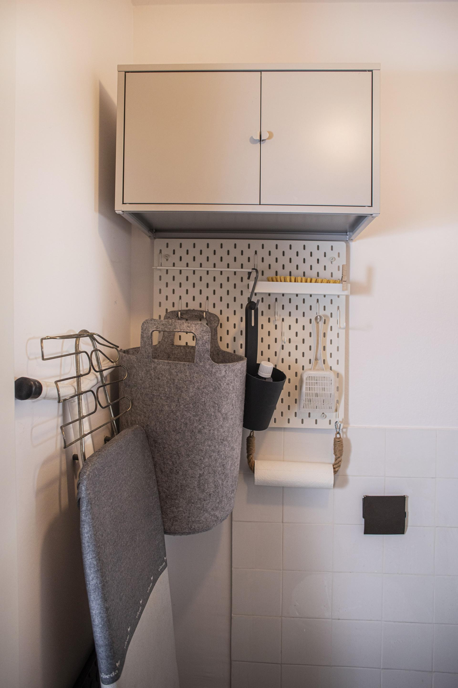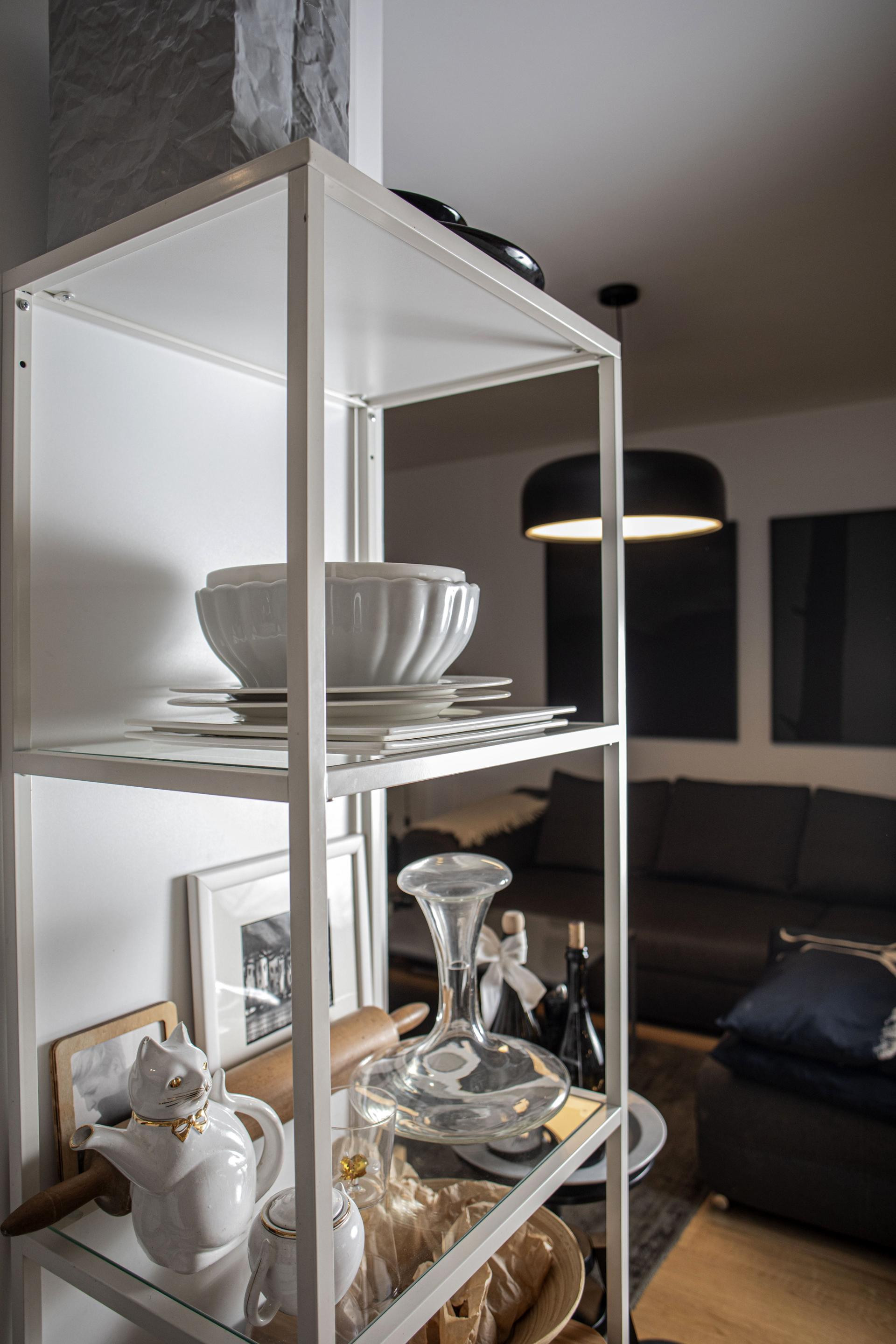 Na pregradnom zidu od knaufa između kuhinje i dnevnog boravka nalazi se bijeli zidni ormar u koji stane jako puno stvari. Ideja za pregradni zid nastala je upravo zbog tog glomaznog ormara, jer su prodavači tražili u ugovoru kada ga je kupovala da će biti naslonjen na zid. Zagrebački je potres pokazao da su bili u pravu.