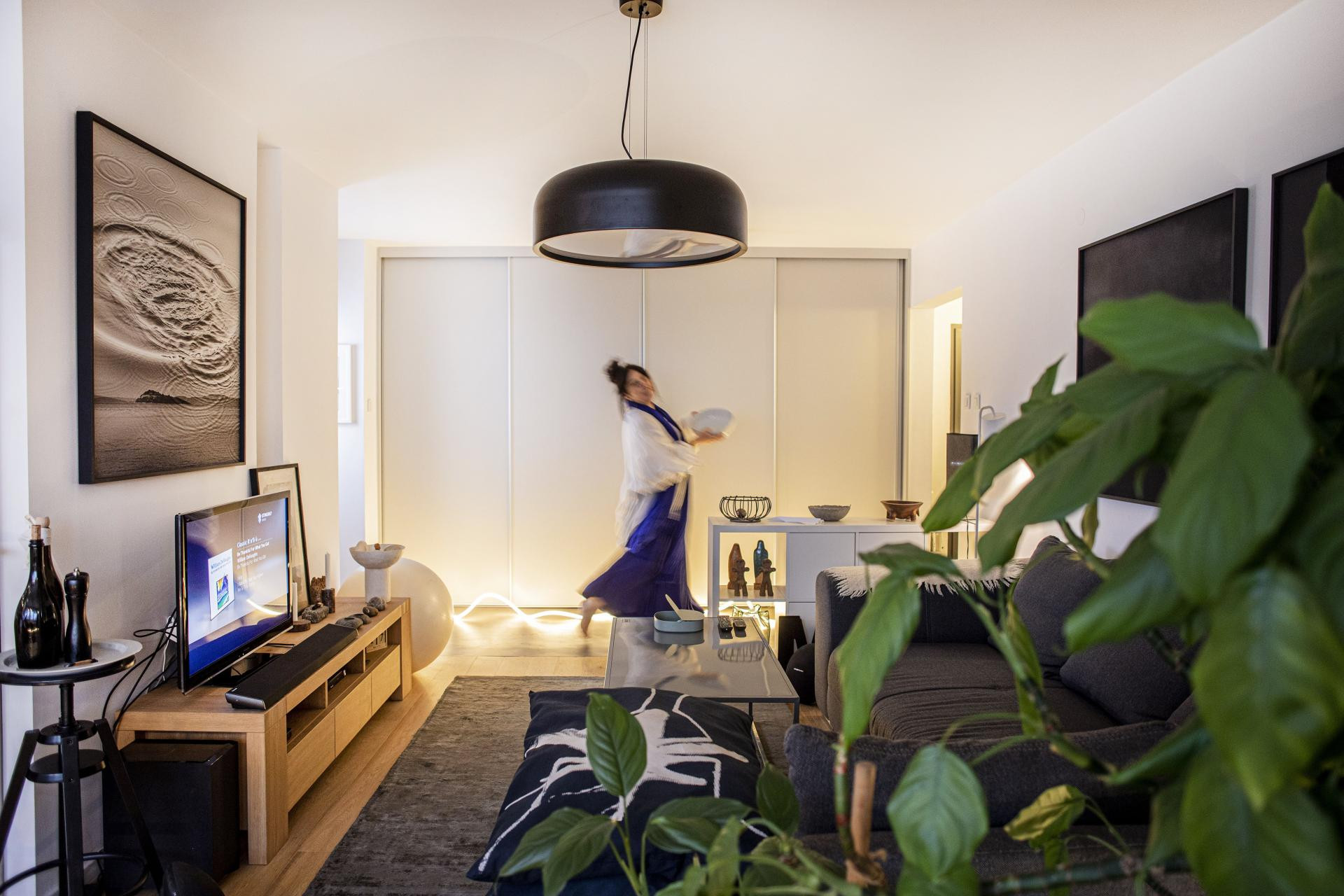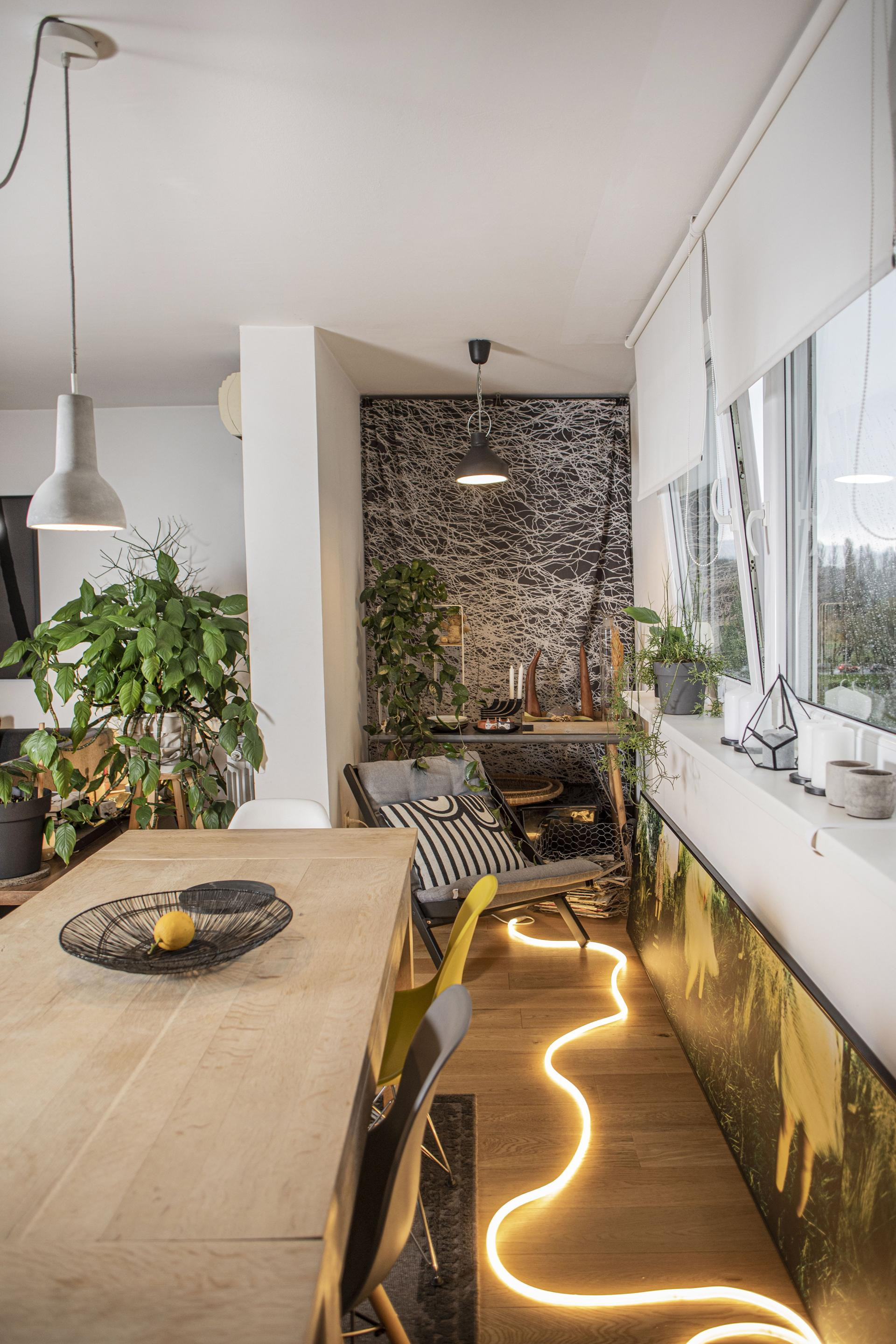 Krajnje modernistički touché stanu su dale i rasvjetne cijevi s potpisom danskog Studija About, a na podu u blagovaonici ispod prozora naslonjen je na zid Marin rad iz 2004. godine, poliptih nazvan "Skakala", koji je bio dio neke pop-up izložbe i napokon mu je pronađen idealni kutak.