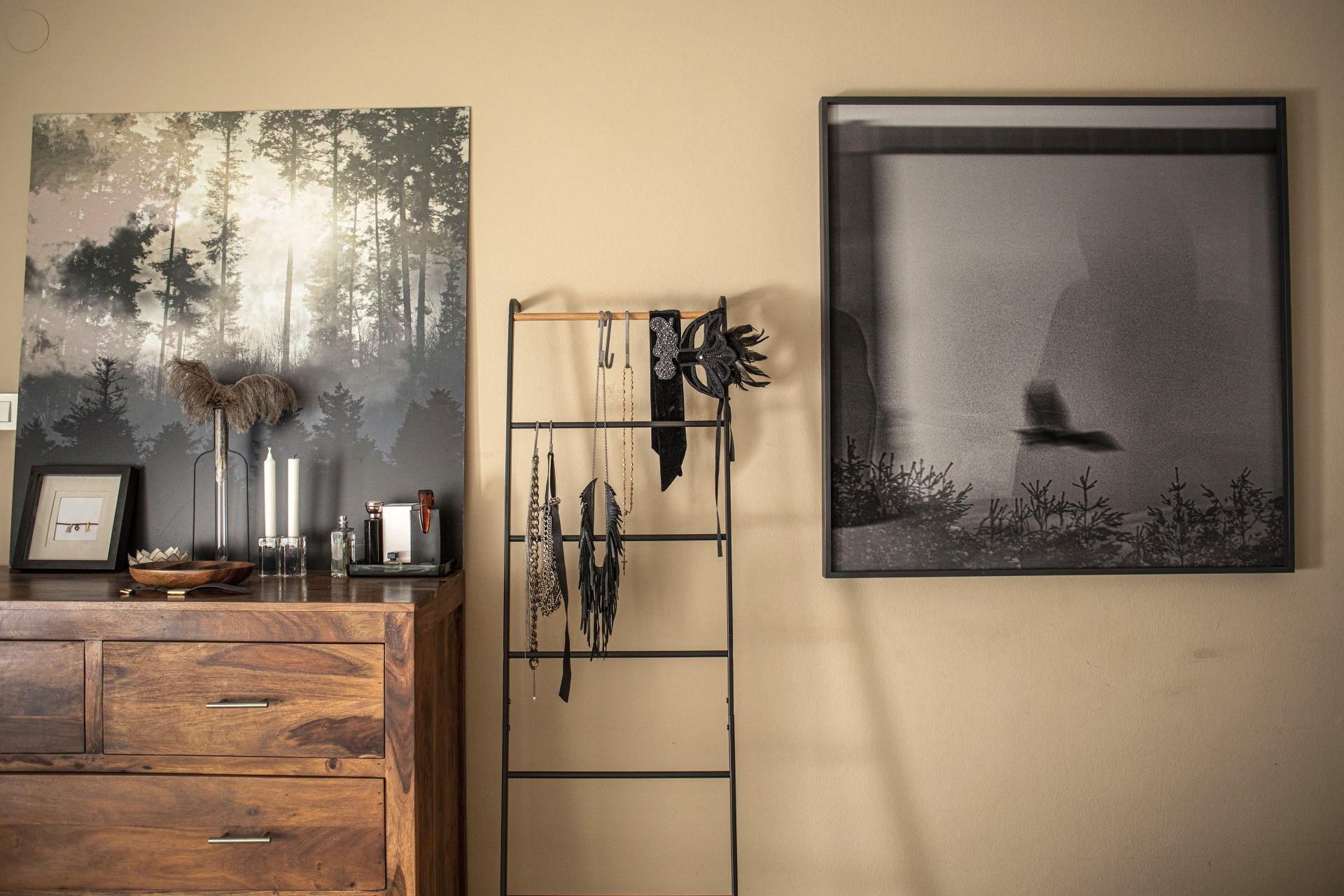 "U stanu su primjetni i tzv. tematski kutci. U mom stanu postoje na par mjesta oboli mojoj obitelji, kao što je npr. original fotografija na komodi u dnevnom boravku, koja datira negdje iz 1900., na kojoj su moji pradjed i prababa. Potom u kutku/niši koju zovem ‘Plaža‘ u dijelu blagovaonice isto postoji kutak posvećen mojoj obitelji. Potječem iz obitelji radišnih, poštenih i normalnih ljudi, prilično sam ponosna na tu činjenicu, volim i cijenim svoju obitelj i svoje podrijetlo."