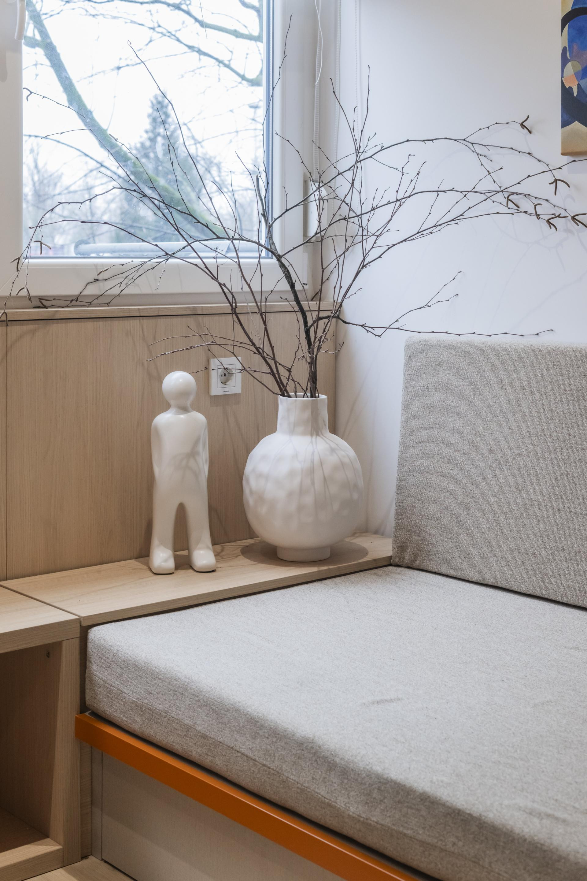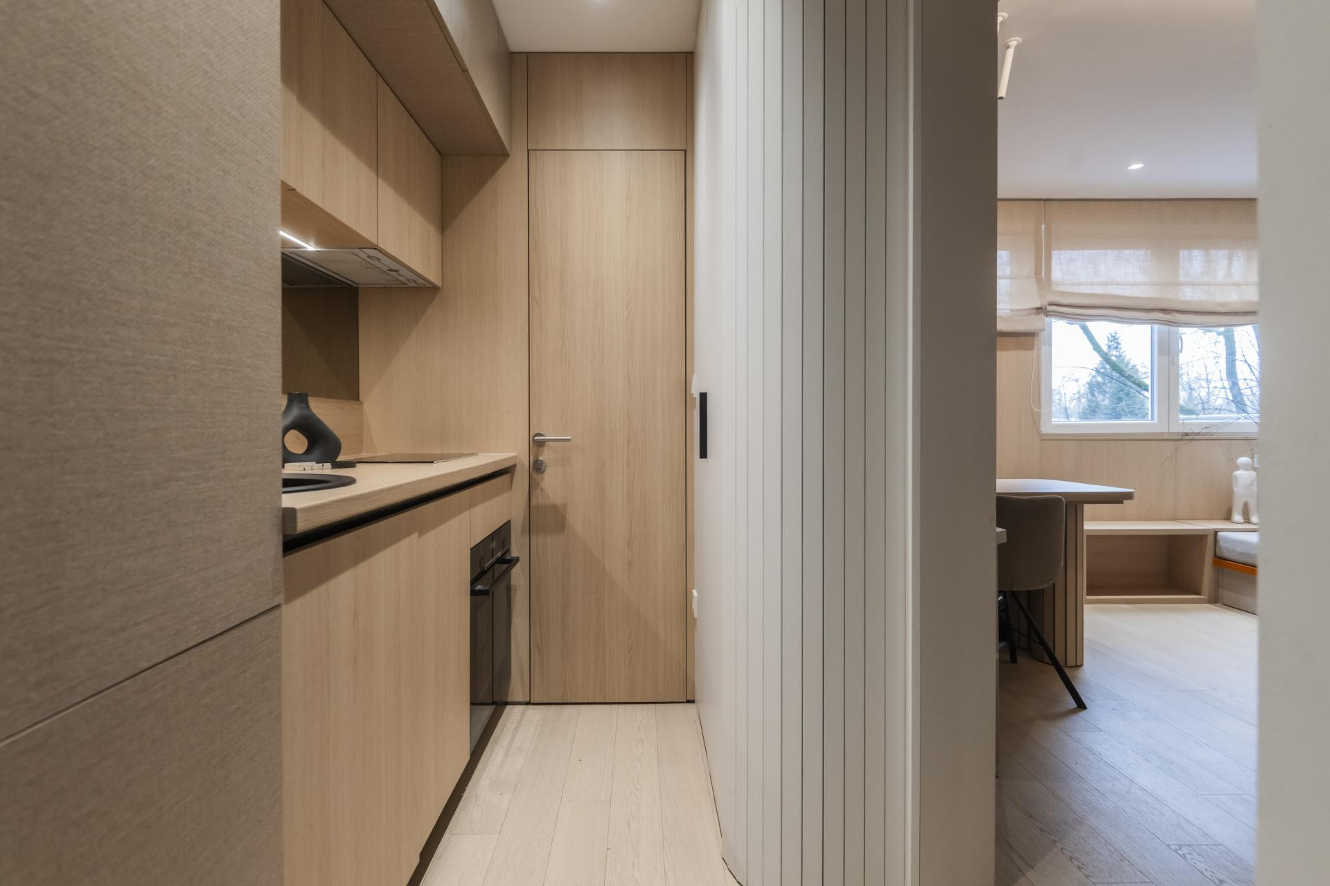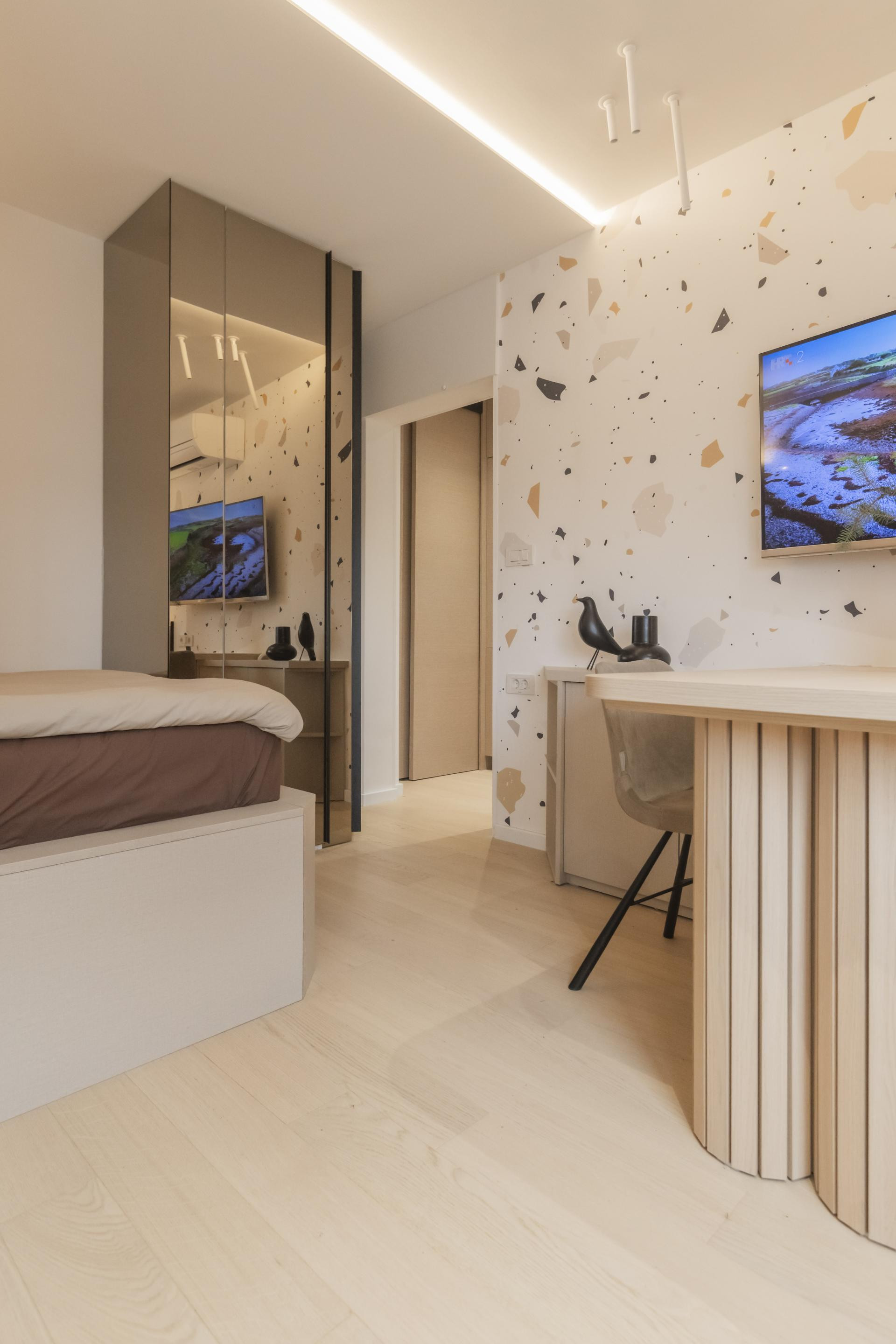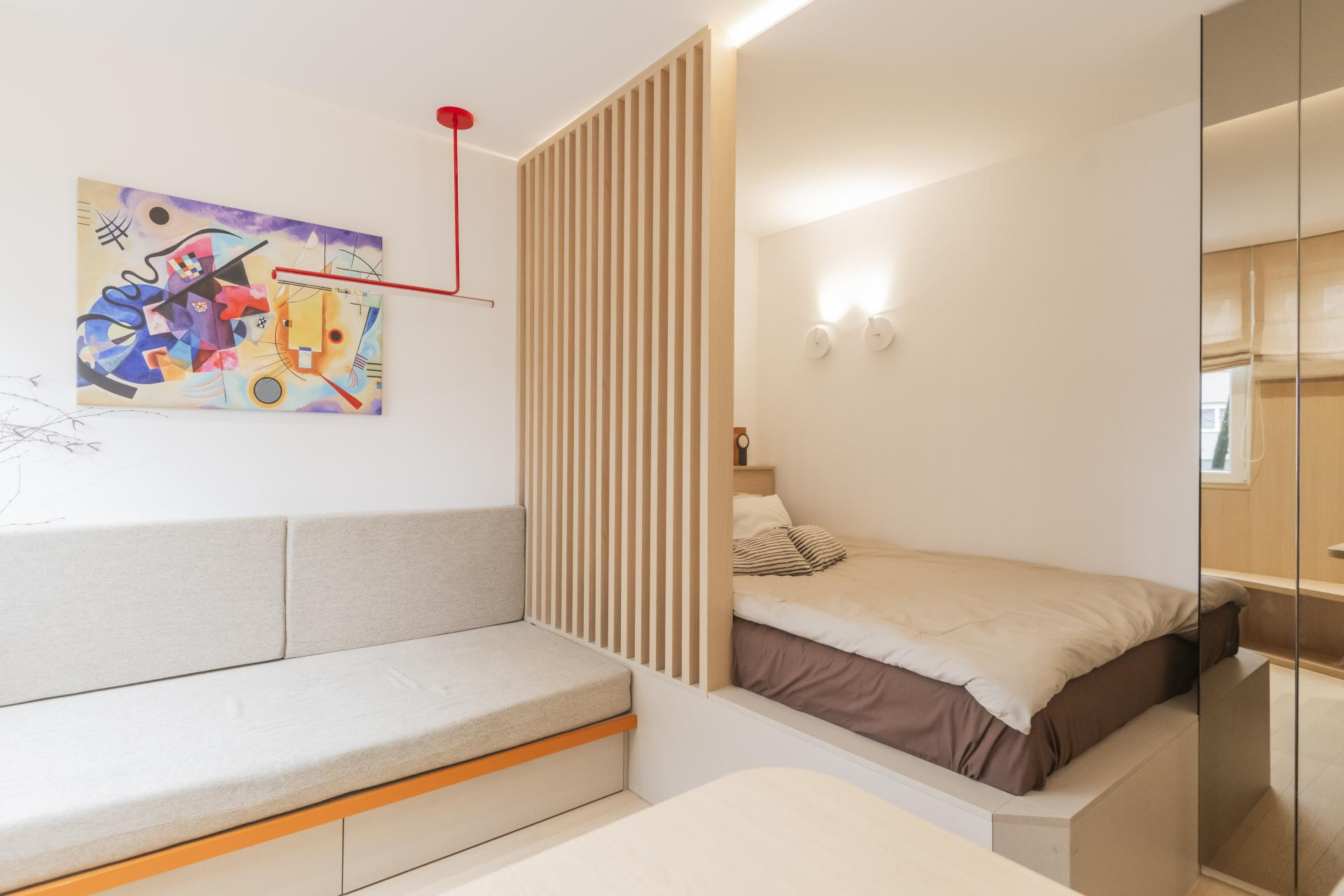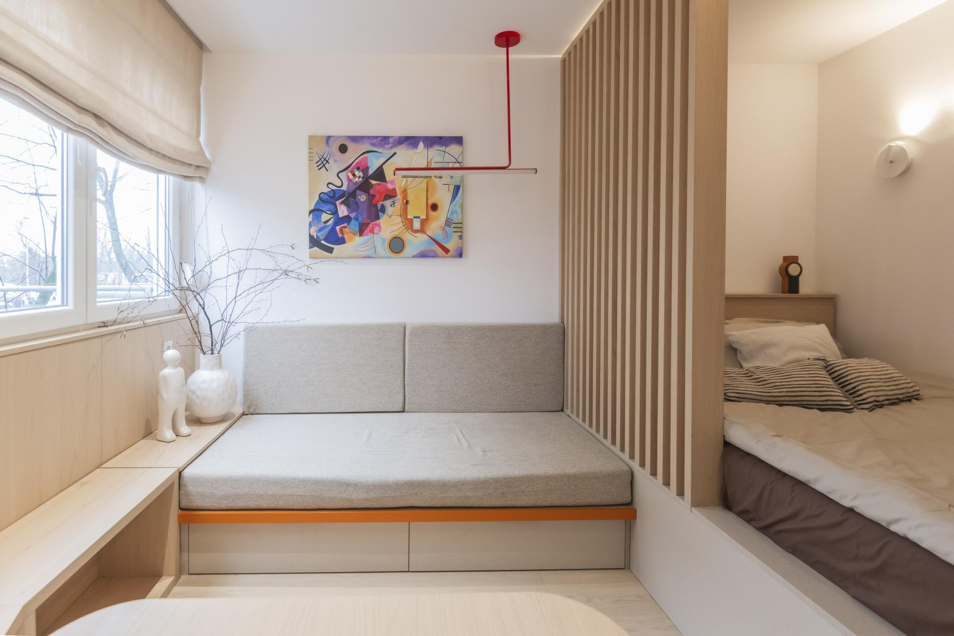 - Osnova koncepta uređenja ovog interijera od svega 22 četvorna metra bila je stvoriti kompaktni prostor s kontinuiranim oblikovnim elementima koji uključuju funkcionalne dijelove u maksimalnoj veličini i formi. Svaki element, od ormara do polica u kupaonici, osim svoje osnovne funkcije, ima i skladišnu namjenu, čime je prostor očišćen od suvišnih predmeta i stvoren dojam urednosti i dobre organizacije. Stan nije uniformiran, već je zamišljen kao dinamičan prostor s različitim dekorativnim materijalima koji apliciraju uzorke, ali bez previše kolorističkih kontrasta. Glavni akcent u prostoru čine boje sličnih nijansi, koje se protežu kroz različite elemente i stvaraju kohezivnu atmosferu. Vlasnicima je bilo važno da stan bude praktičan, ali i estetski privlačan s naglaskom na udobnost i iskoristivost prostora. Iako mali stan, trebao je zadovoljiti sve potrebe vlasnika, od stvaranja dovoljno prostora za skladištenje do zone za spavanje i boravka te smještaj dodatnog ležaja za goste - kaže arhitektica.
