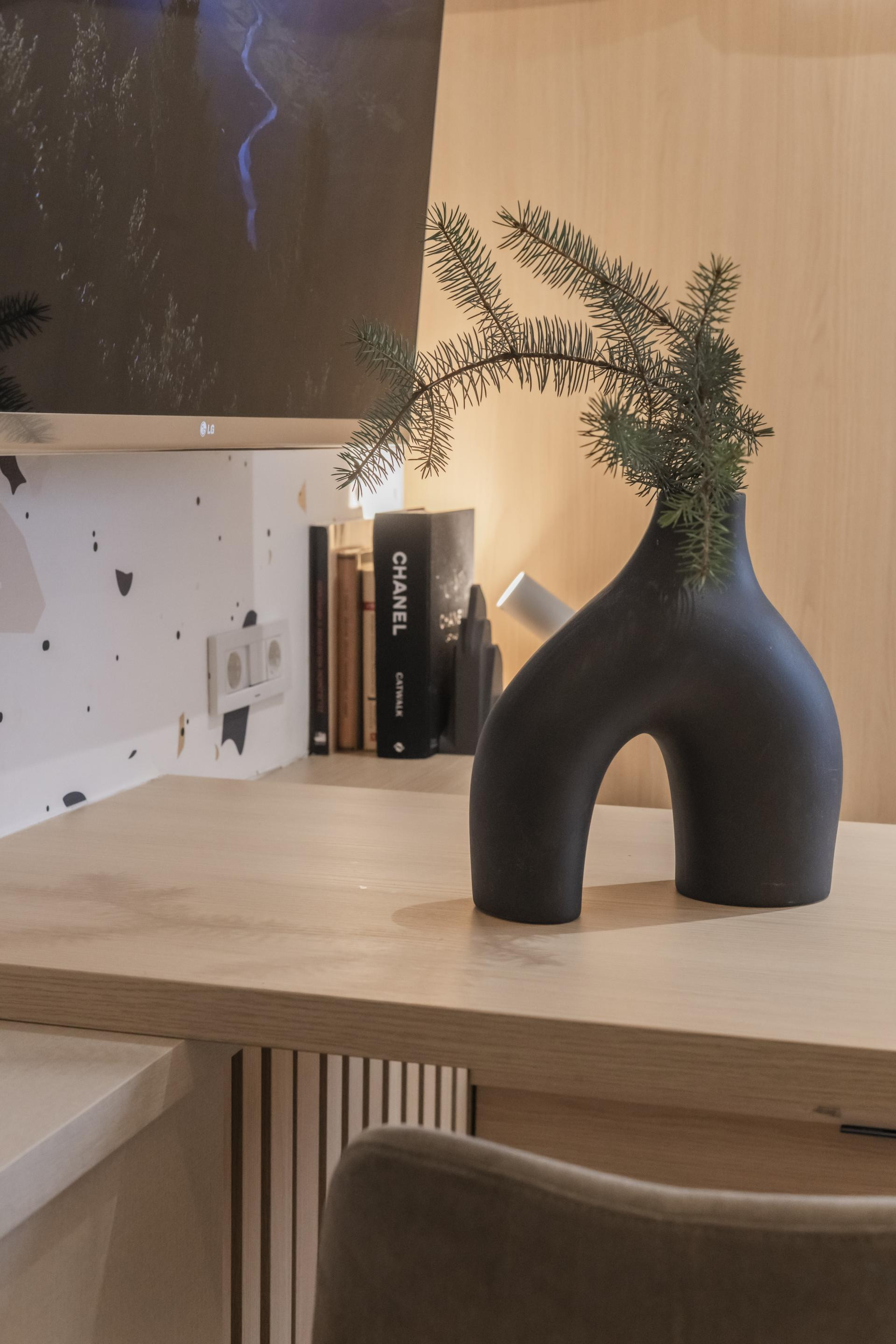 Arhitektica nam objašnjava kako je dodatni izazov uređenja ovog interijera predstavljala prisutnost nosivog zida koji se smjestio na trećini stana, ostavljajući minimalni otvor za prolaz u drugi dio stana. Taj otvor postao je ključan element za komunikaciju između različitih prostornih zona.