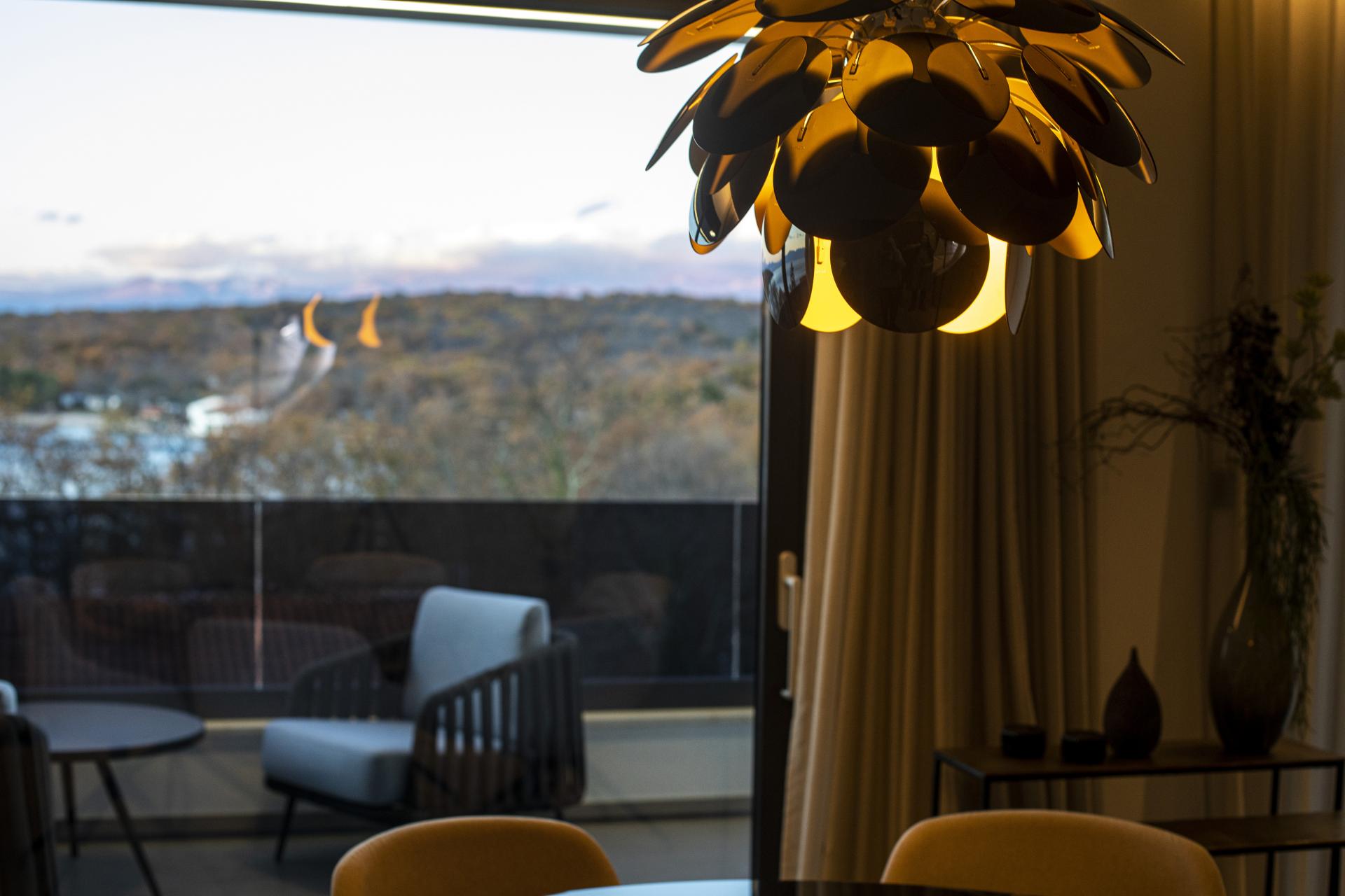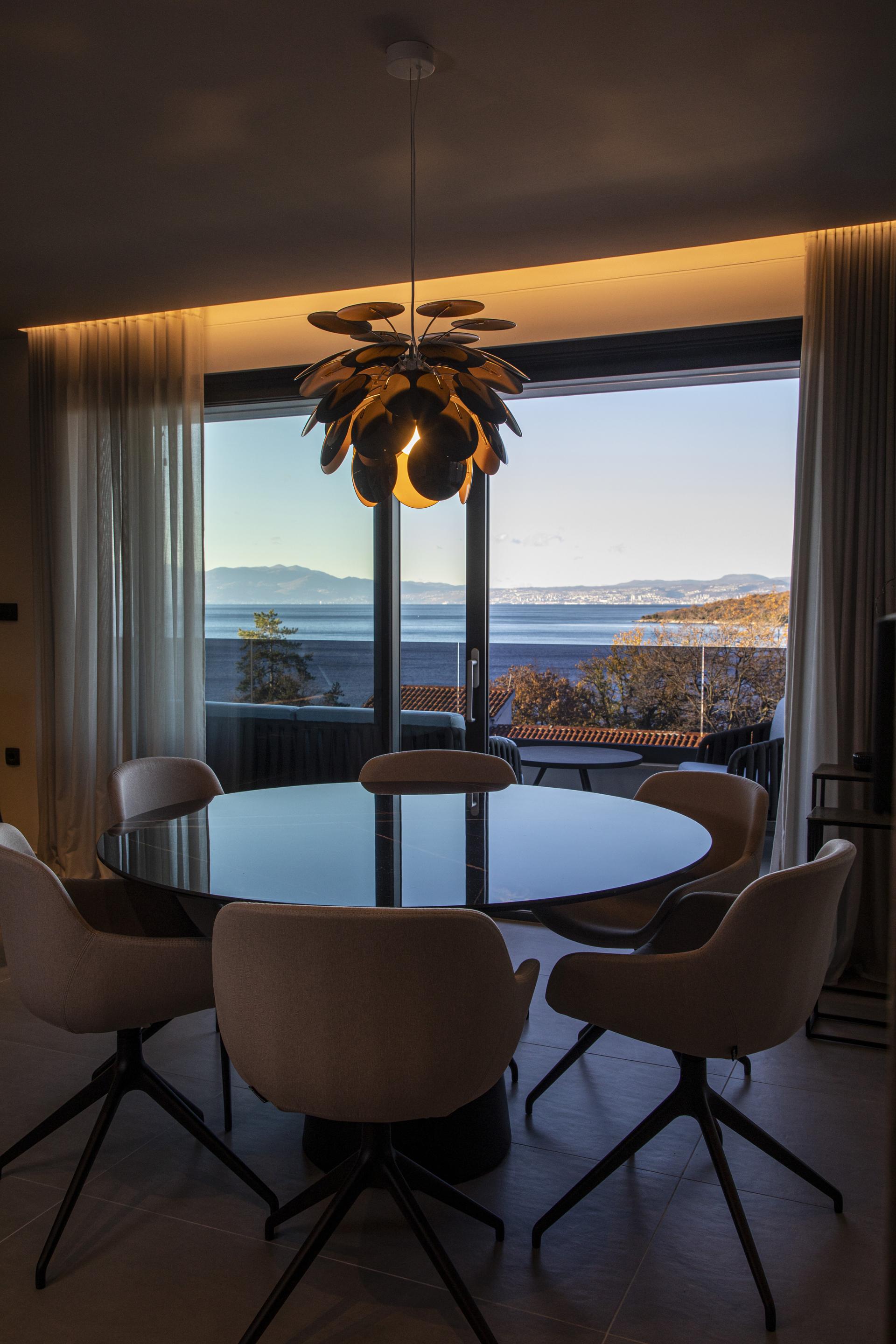 Tijekom relativno kratkog putovanja iz Zagreba prema otoku Krku, prije otprilike mjesec dana, “redala” su se godišnja doba: u Zagrebu je bilo hladno, sivo i tmurno, šume Gorskog kotara prekrio je snježni pokrivač, a Kvarner je bio okupan suncem. Crvenozlatne, jesenske boje stabala i raslinja uz cestu pratile su nas sve do Njivica, nekoć malog krčkog ribarskog mjesta koje se razvilo u turističku destinaciju. Razlog našeg posjeta bio je moderan stambeni kompleks s dvije urbane vile, na 100-tinjak metara od obale. Točnije, stan u jednoj od urbanih vila s prekrasnim vizurama na more. Vlasnici su za njegovo uređenje angažirali arhitektonsku tvrtku Marconico.