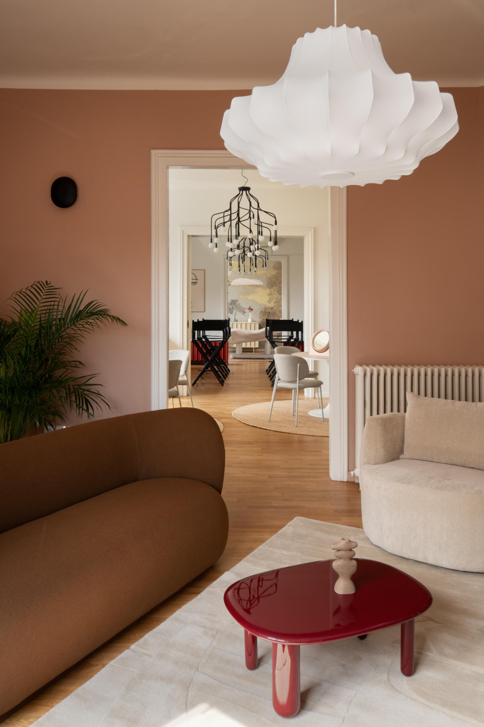 Ipak, funkcionalnost je na prvom mjestu. Vodilo se računa o organizaciji prostora, protoku ljudi, rasvjeti i akustici, ali pritom nije bilo potrebe za pomicanjem zidova ili bilo kakvim drugim građevinskim zahvatom. Zapravo, sve je prilagođeno originalnoj arhitekturi stana, koji je podijeljen na dva dijela: s ulične strane su četiri međusobno povezana salona, dugim hodnikom odijeljeni od takozvanih nusprostorija sa suprotne strane.