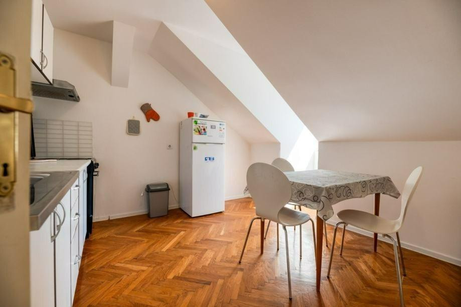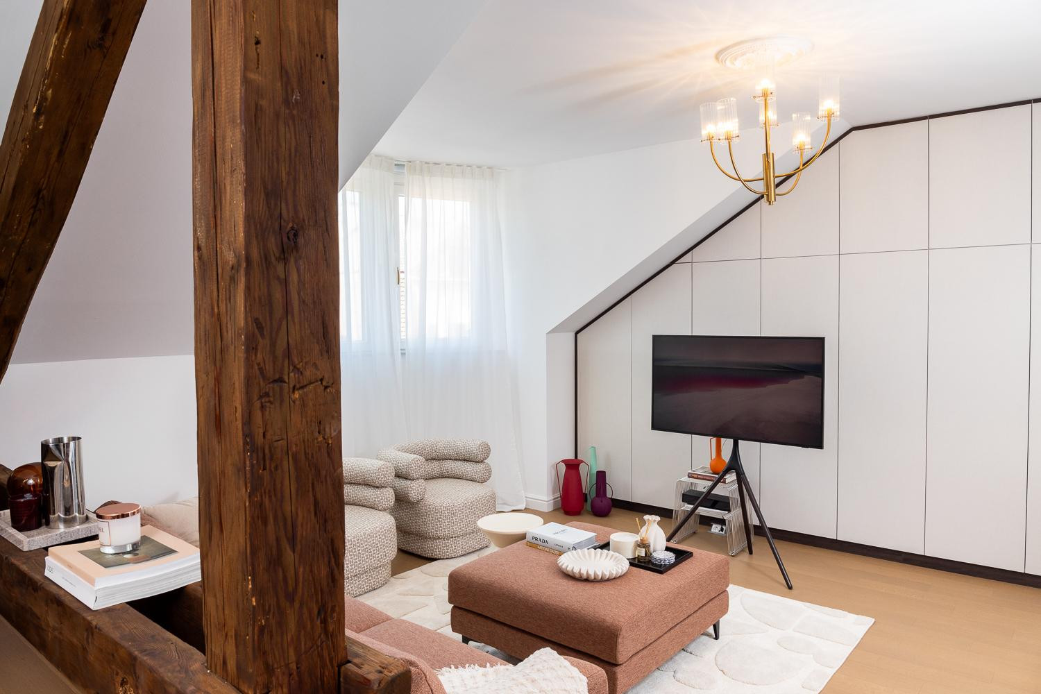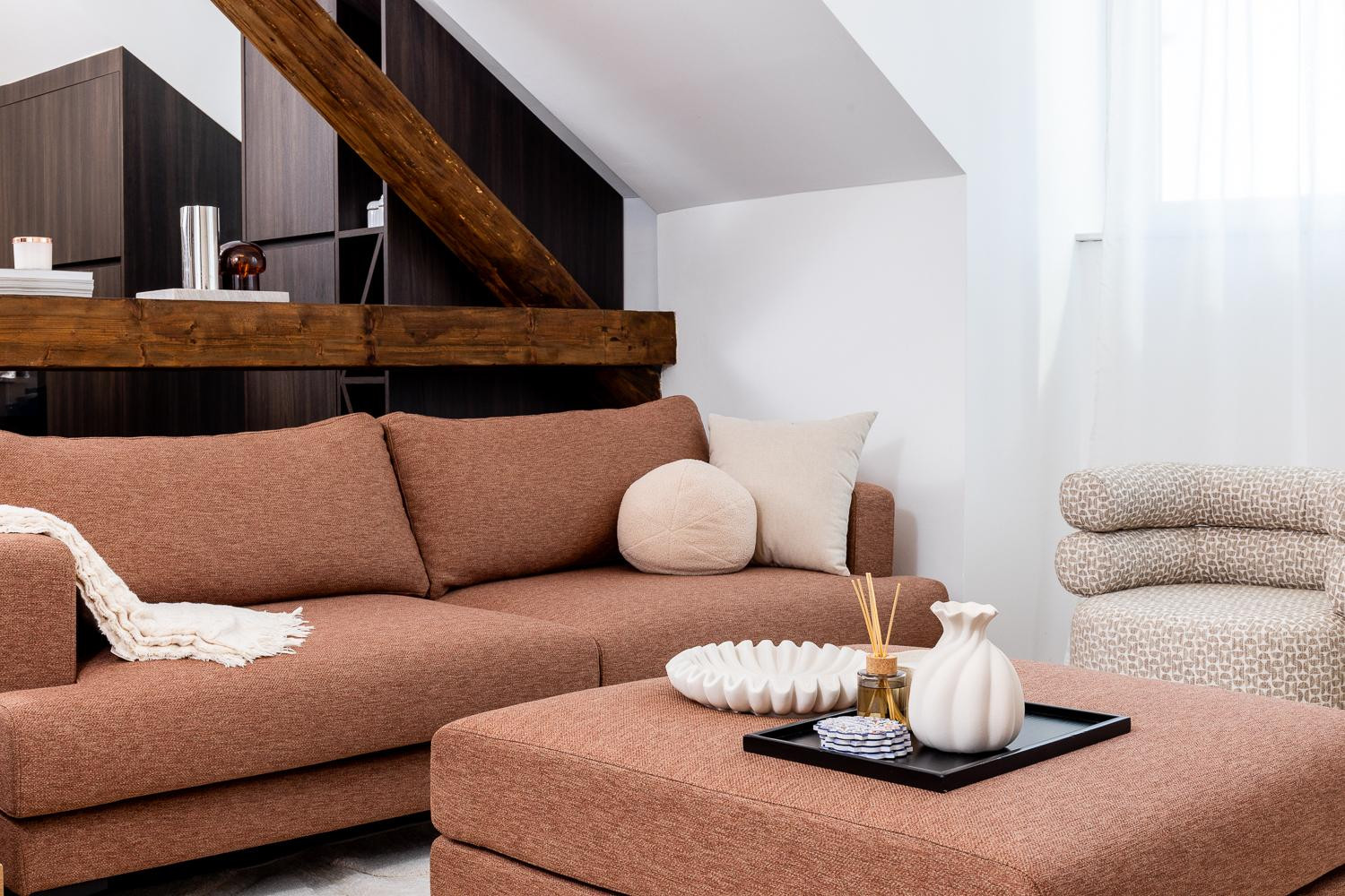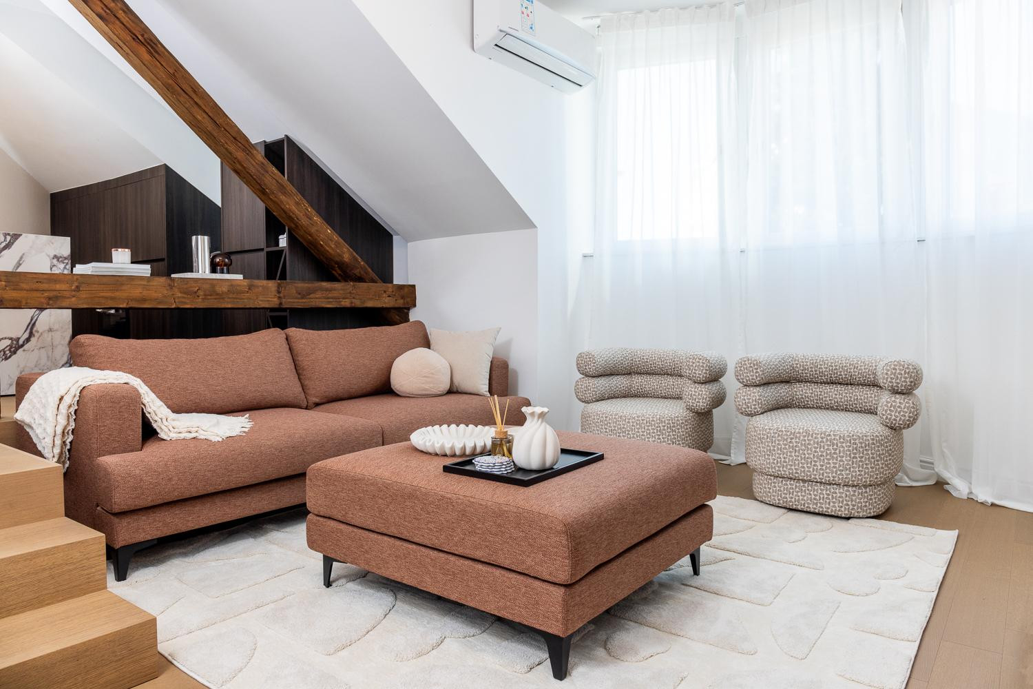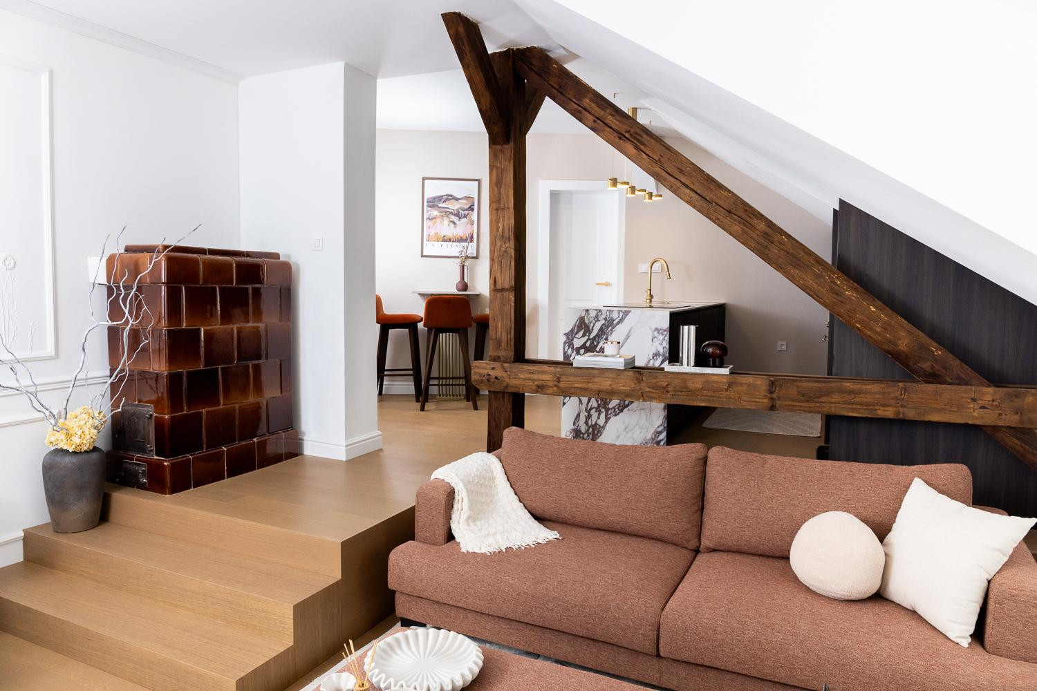 Ovaj stan od 55 kvadrata smješten u starogradnji u samom centru Zagreba poseban je po svemu – od neobičnog tlocrta do topline drvenih greda koje su godinama bile skrivene u zidovima, a danas čine njegov zaštitni znak.