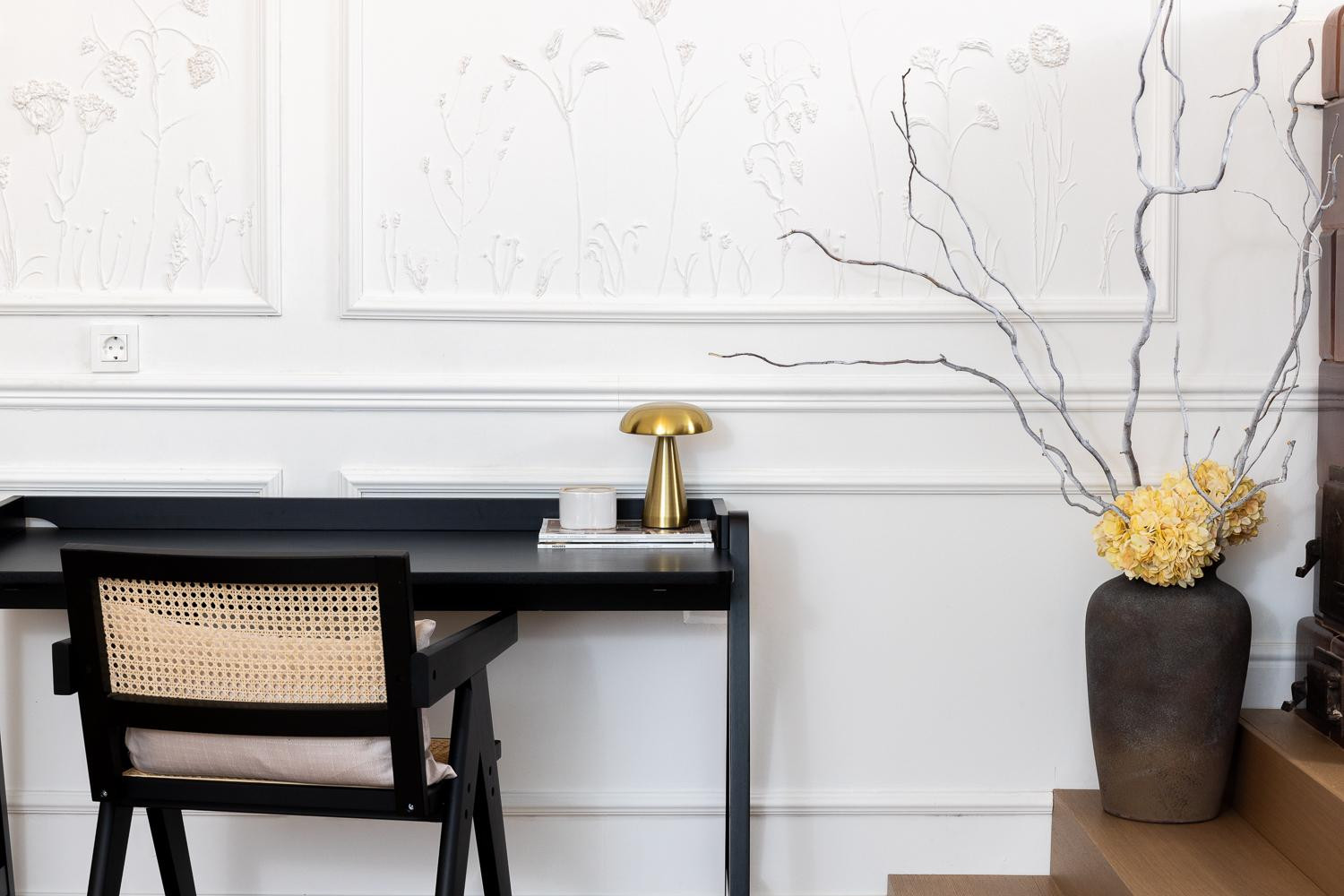 Cijelim stanom proteže se elegantan i svijetao stil s modernim linijama, ali i klasičnim dodirima – štukaturama, mramornim uzorcima, toplim bojama, kao i umjetnošću na zidu, ručno rađenom od gipsa. Nisam željela da prevladavaju jedino klasične bež nijanse koje se danas često viđaju, već sam prostor razigrala bojama koje unose život i toplinu.