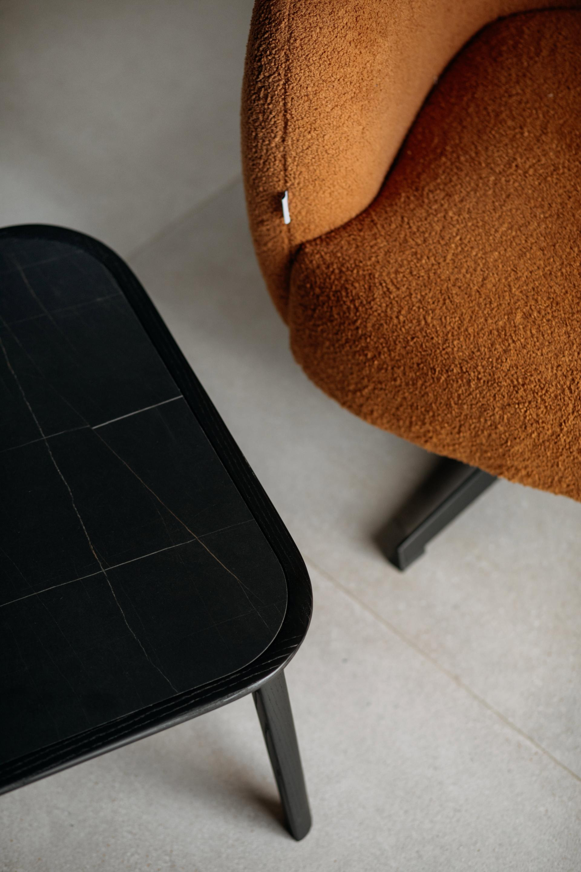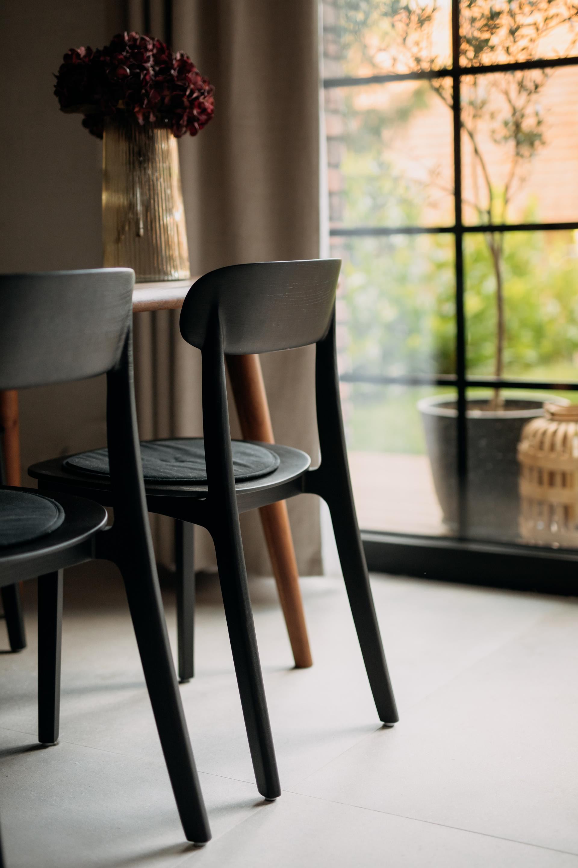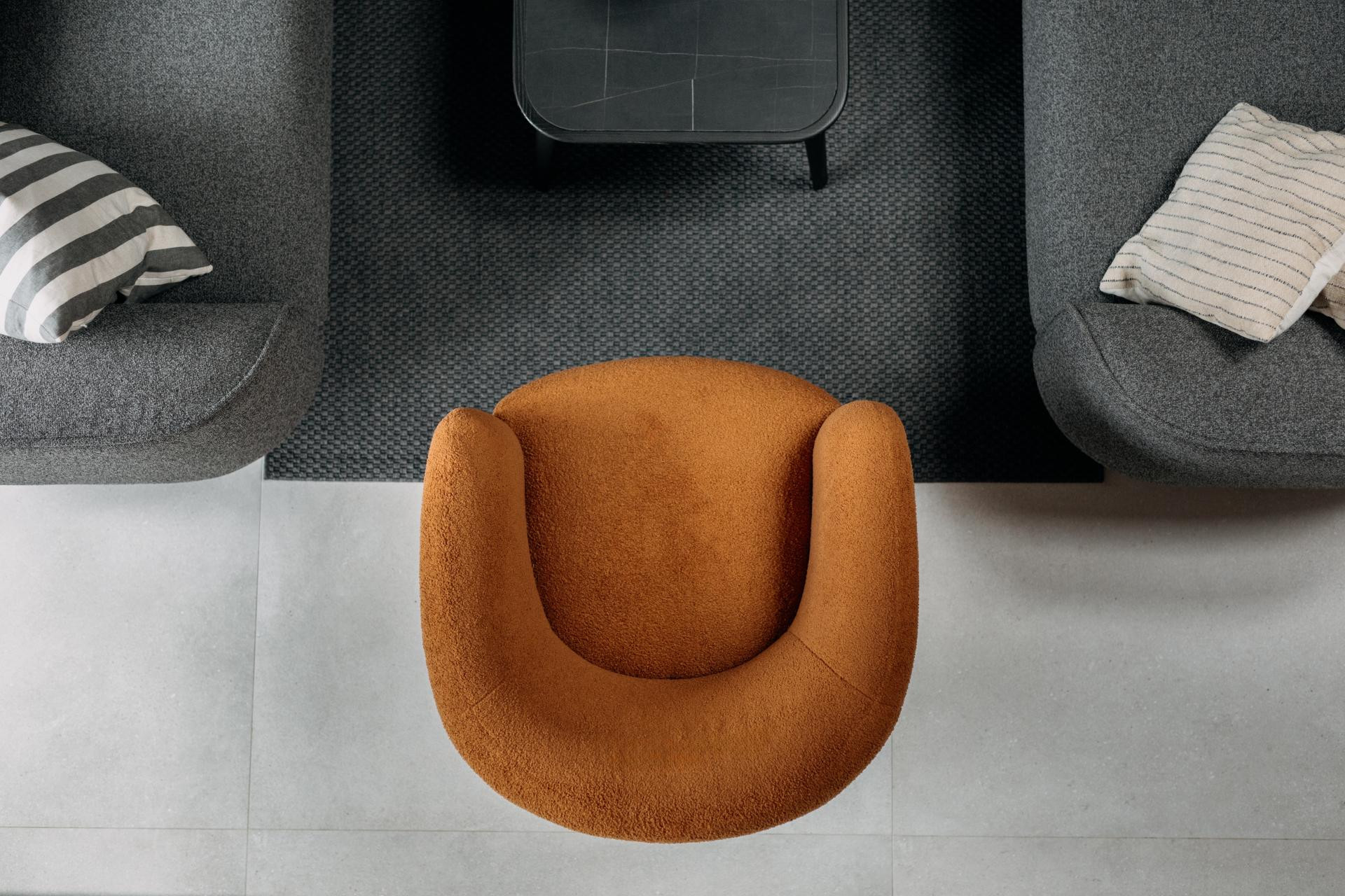 Materijali prevladavaju prirodni: drvo, cigla, keramika i crni detalji. Namještaj po mjeri provučen je kroz cijeli interijer, u suradnji s partnerima iz Visokog – Interiors by XY. Domaći brendovi imaju posebno mjesto: Artisan stolovi i stolice od punog drveta te sofe Le Mans domaćeg proizvođača Volumen po dizajnu Zorana Jedrejčića.