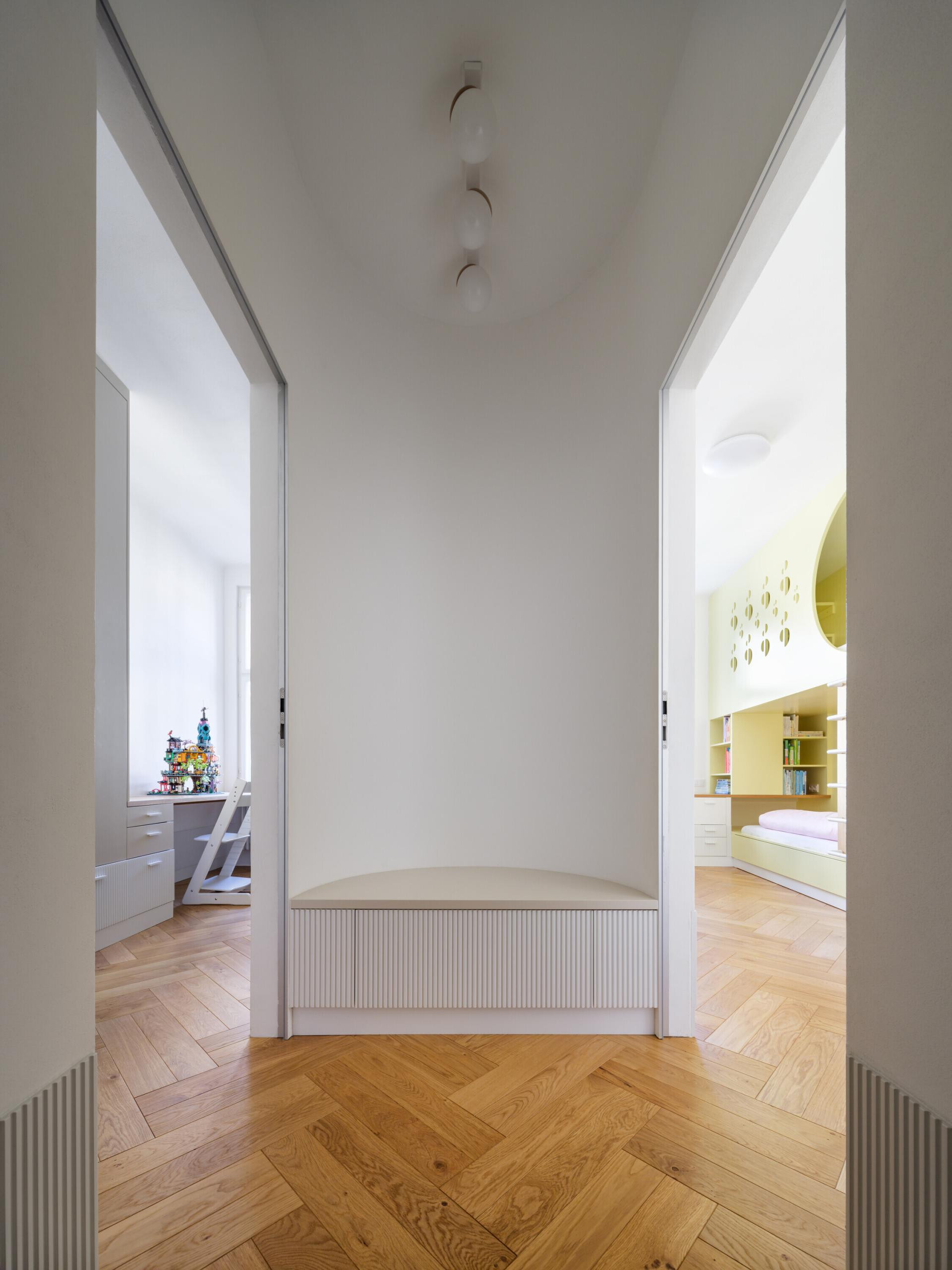 Što može ponuditi prosječni gradski stan u stoljetnoj zgradi? Ako nosivi zidovi ne dopuštaju preinake, pa se dizajn interijera svede na "kozmetičko" preuređenje s novom bojom zidova, pokojim novim komadom namještaja i uz dodatak par dekorativnih elemenata, ne mnogo. Ali ako postoji mogućnost inovativnog tlocrtnog rasporeda, uz zanimljiva građevinska rješenja i tehničku infrastrukturu, prostor bi mogao ponuditi puno više nego što se to na prvi pogled čini. Tako je bilo i u slučaju jednog stana u Pragu, gdje su arhitekti prepoznali potencijal te ga pametnim preoblikovanjem transformirali u jedinstven životni prostor.