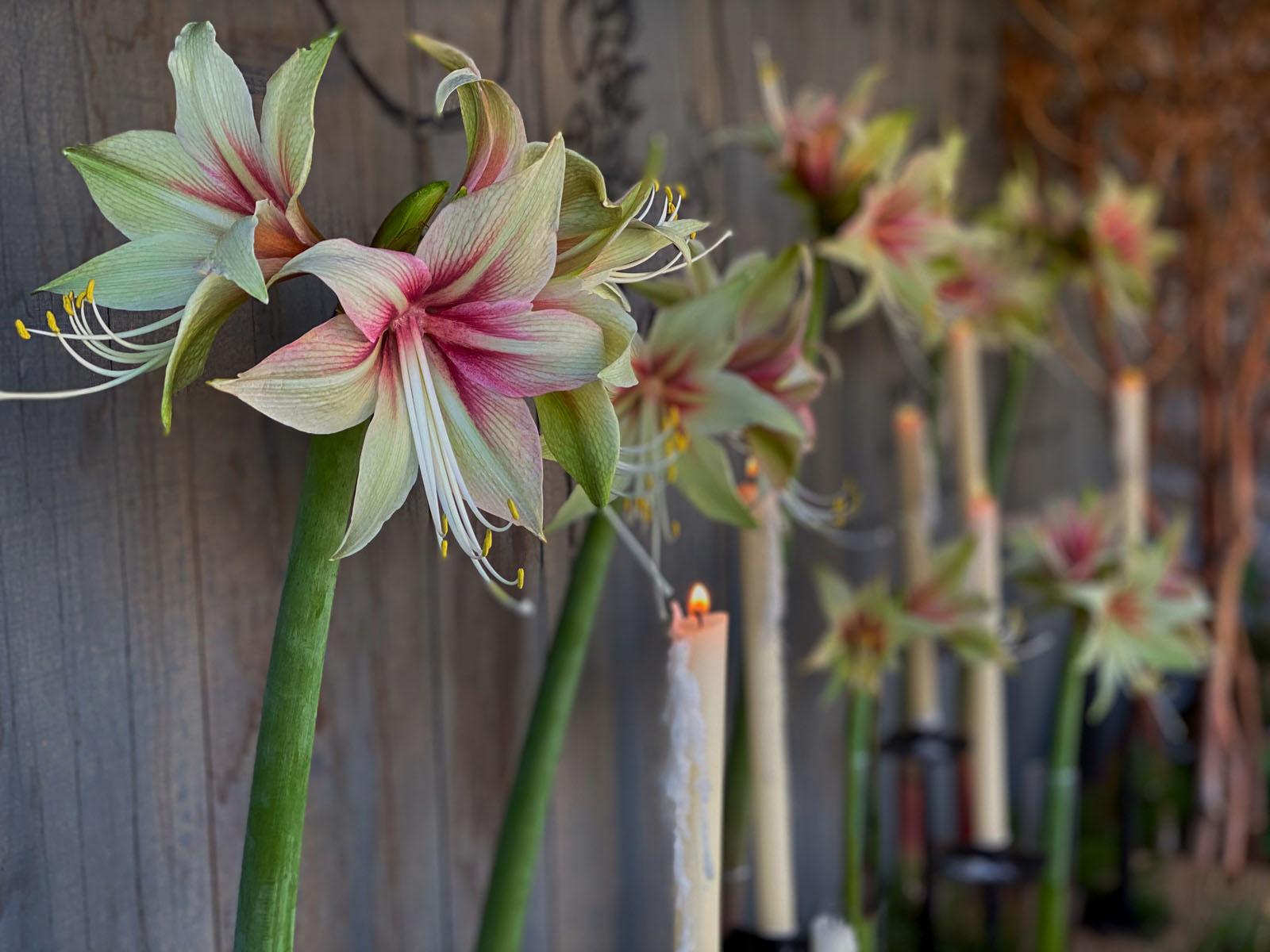 Od biljaka prevladavaju borove grane, kugle bijele imele, amarilis, božićna zvijezda.