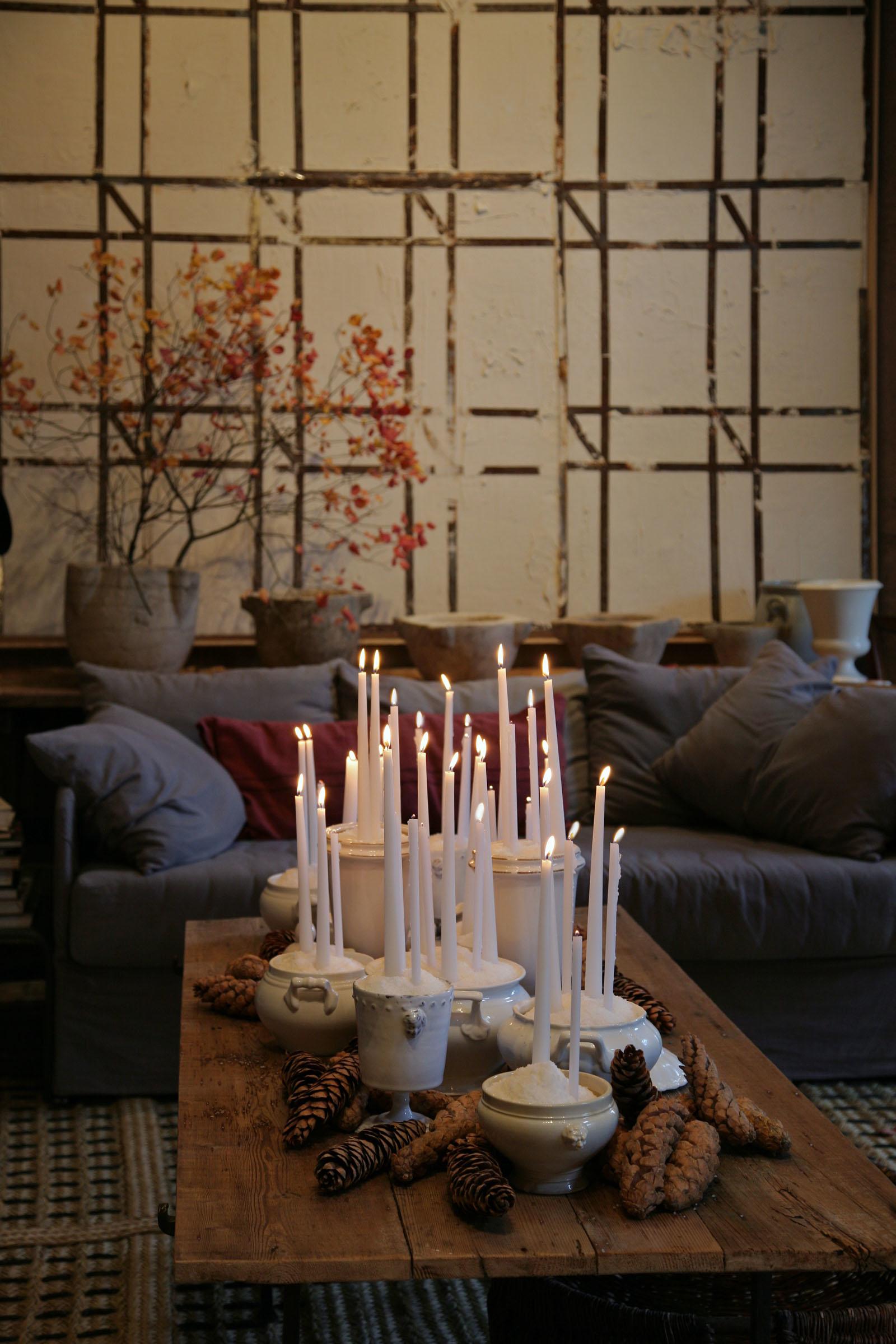 - Bijeli porculan napunio sam sa soli i postavio puno svijeća koje daju glavnu rasvjetu u prostoru oko stola, posuda za vodu od cinka postala je stalak za bor - kaže.