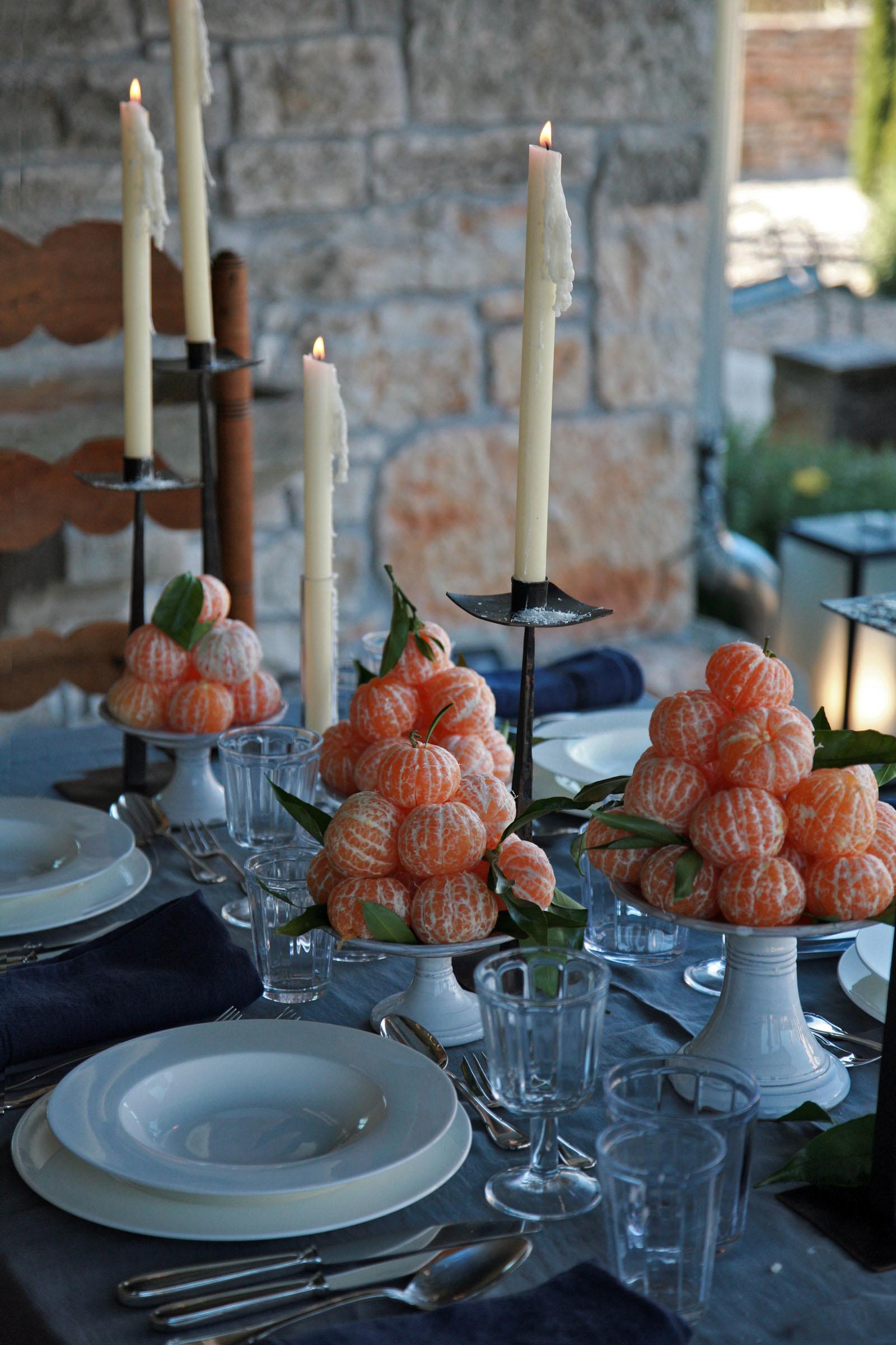 Umjesto cvijeća, na drugom su stolu, onom u prostoru ljetne kuhinje, postavljene oguljene mandarine na etažerima jer obožava njihov miris...
