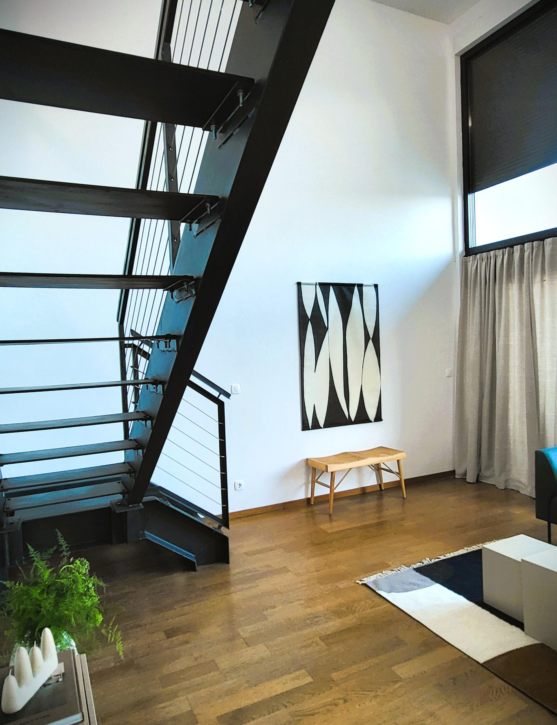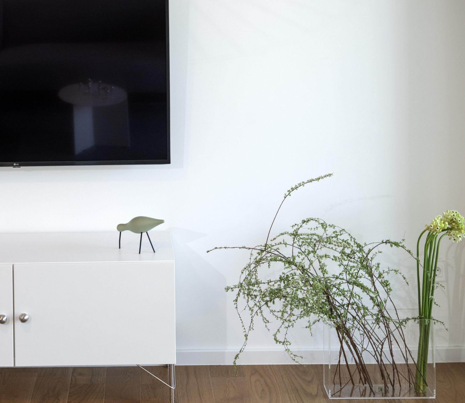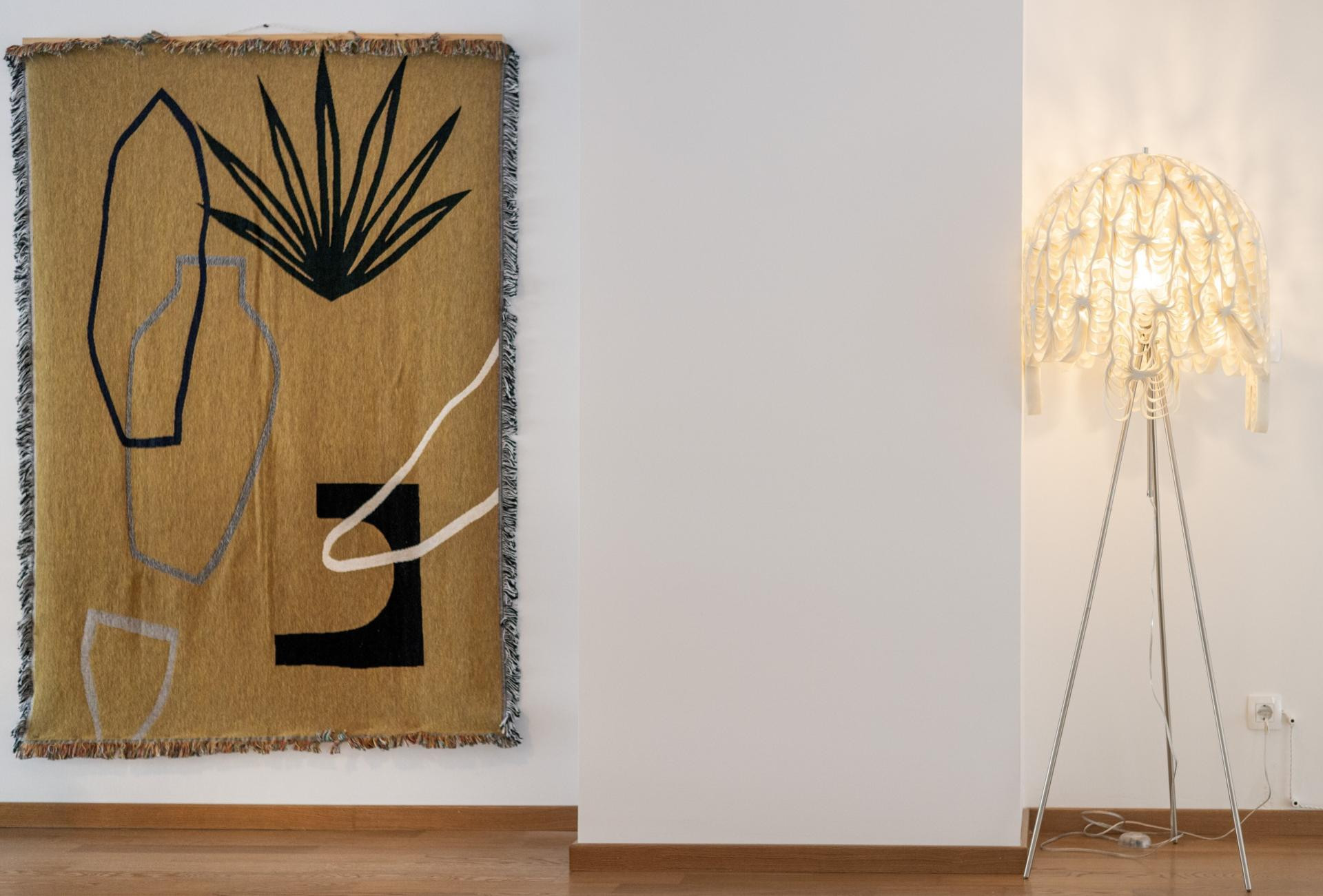 Kako je interijer potpuno minimalistički i djeluje kao da boja gotovo i nema, tek smo na tepihu u dnevnom boravku unijeli nešto nježno plave i žute. Htjela sam ga podići nekim dizajnerskim komadom koji će potpuno dominirati prostorom. Izbor je pao na ogroman luster Vertigo koji je dizajnirala francuska dizajnerica Constance Guisset za svoj diplomski rad. U međuvremenu je luster postao ikona koja je u stalnom postavu njujorške MoMA-e, a danas ga proizvodi francuska tvrtka Petite Friture. Riječ je o predimenzioniranom lusteru od pletenih poliuretanskih traka koji bez obzira na svoju veličinu djeluje prozračno i lagano.
