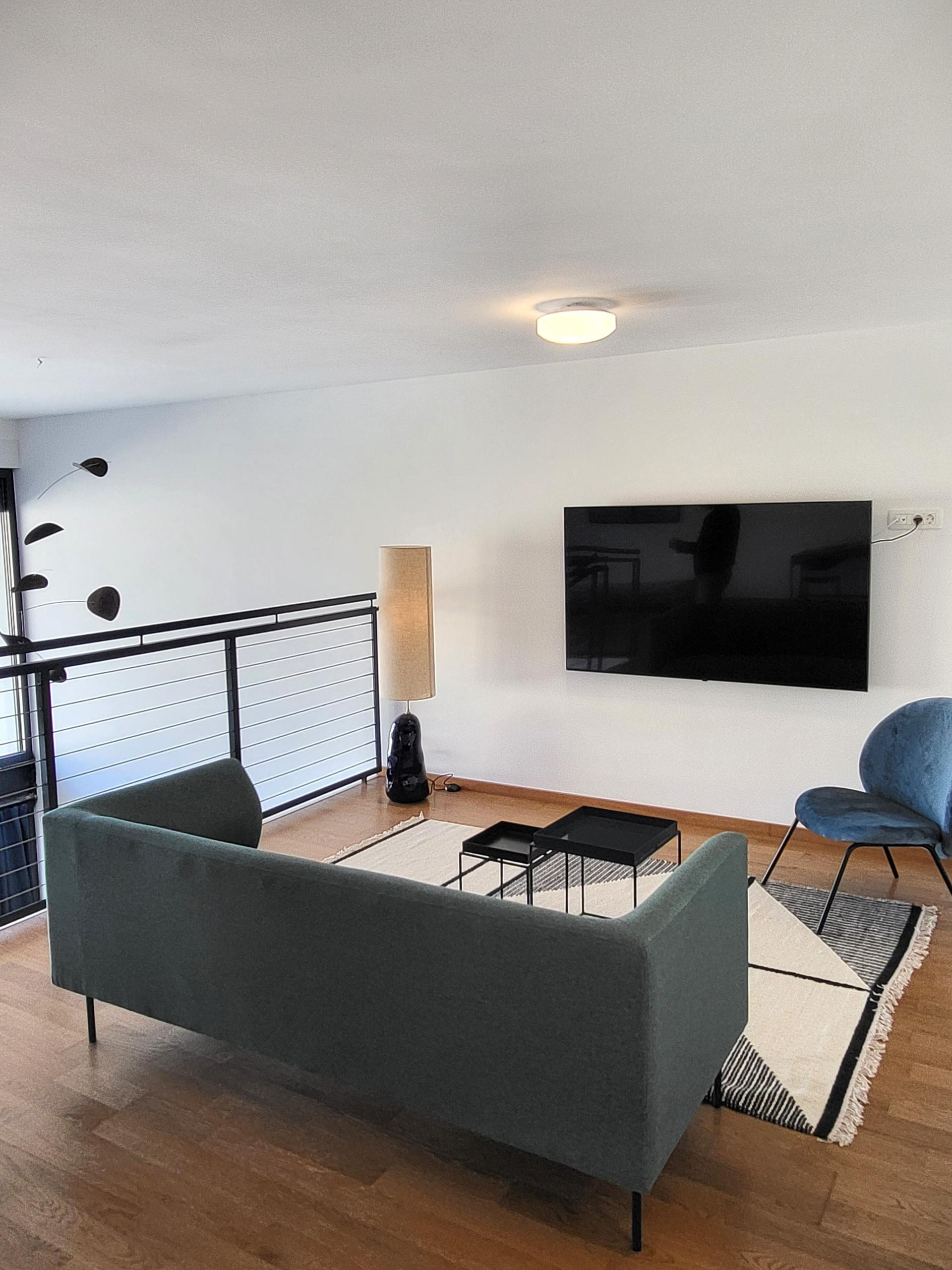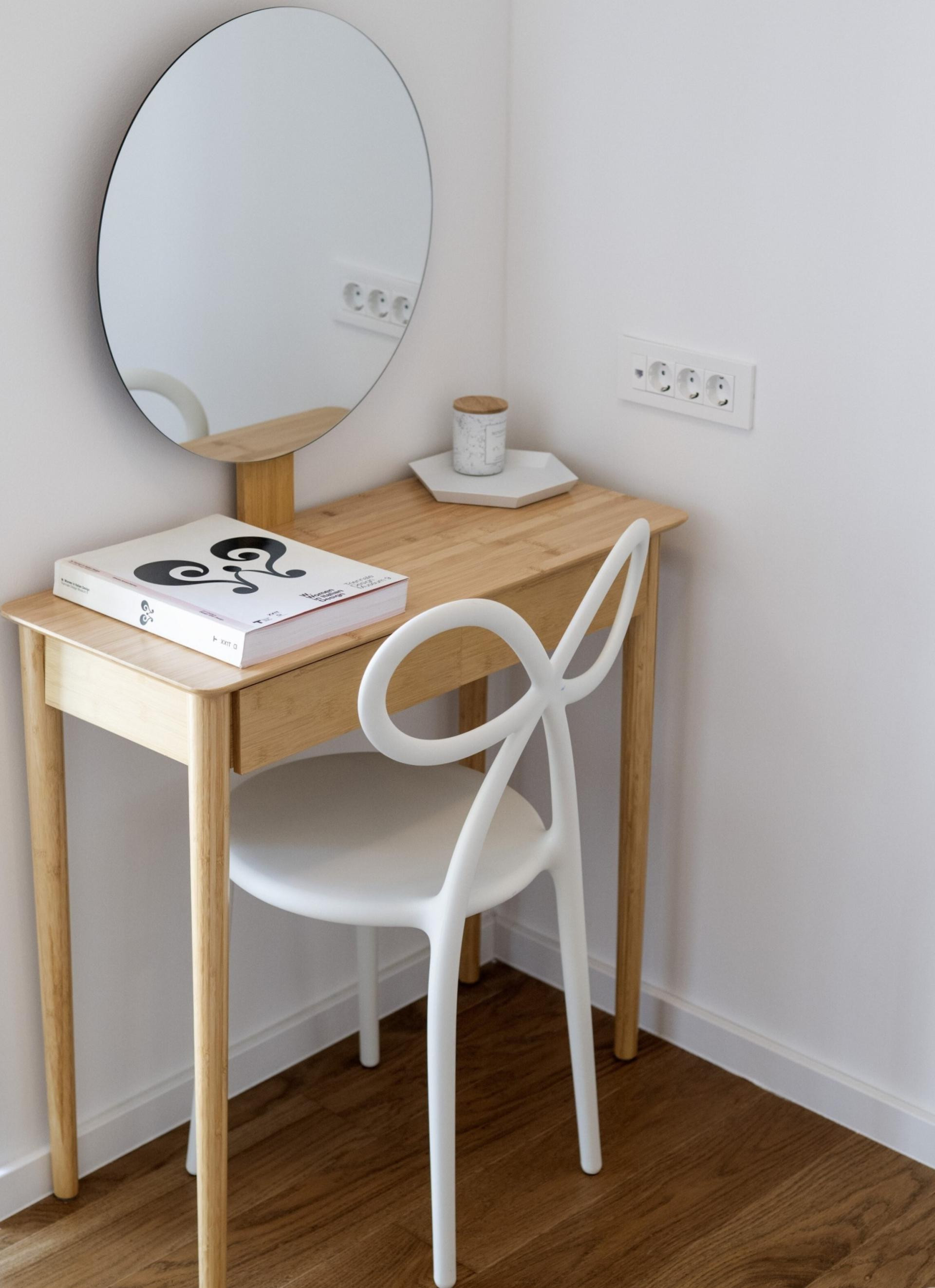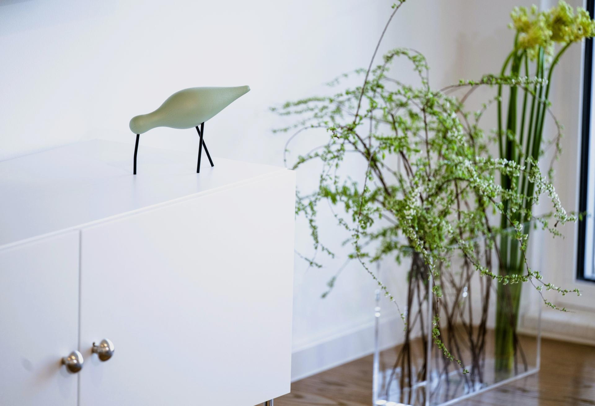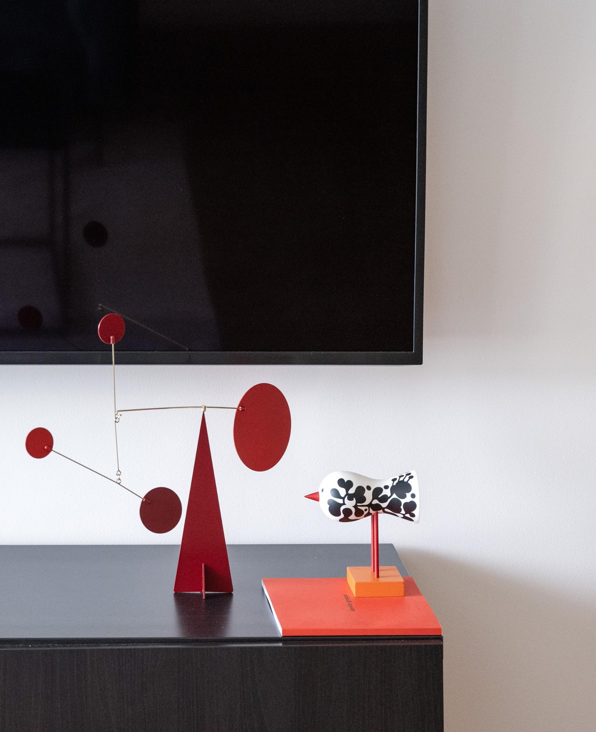 Kako je interijer potpuno minimalistički i djeluje kao da boja gotovo i nema, tek smo na tepihu u dnevnom boravku unijeli nešto nježno plave i žute. Htjela sam ga podići nekim dizajnerskim komadom koji će potpuno dominirati prostorom. Izbor je pao na ogroman luster Vertigo koji je dizajnirala francuska dizajnerica Constance Guisset za svoj diplomski rad. U međuvremenu je luster postao ikona koja je u stalnom postavu njujorške MoMA-e, a danas ga proizvodi francuska tvrtka Petite Friture. Riječ je o predimenzioniranom lusteru od pletenih poliuretanskih traka koji bez obzira na svoju veličinu djeluje prozračno i lagano.