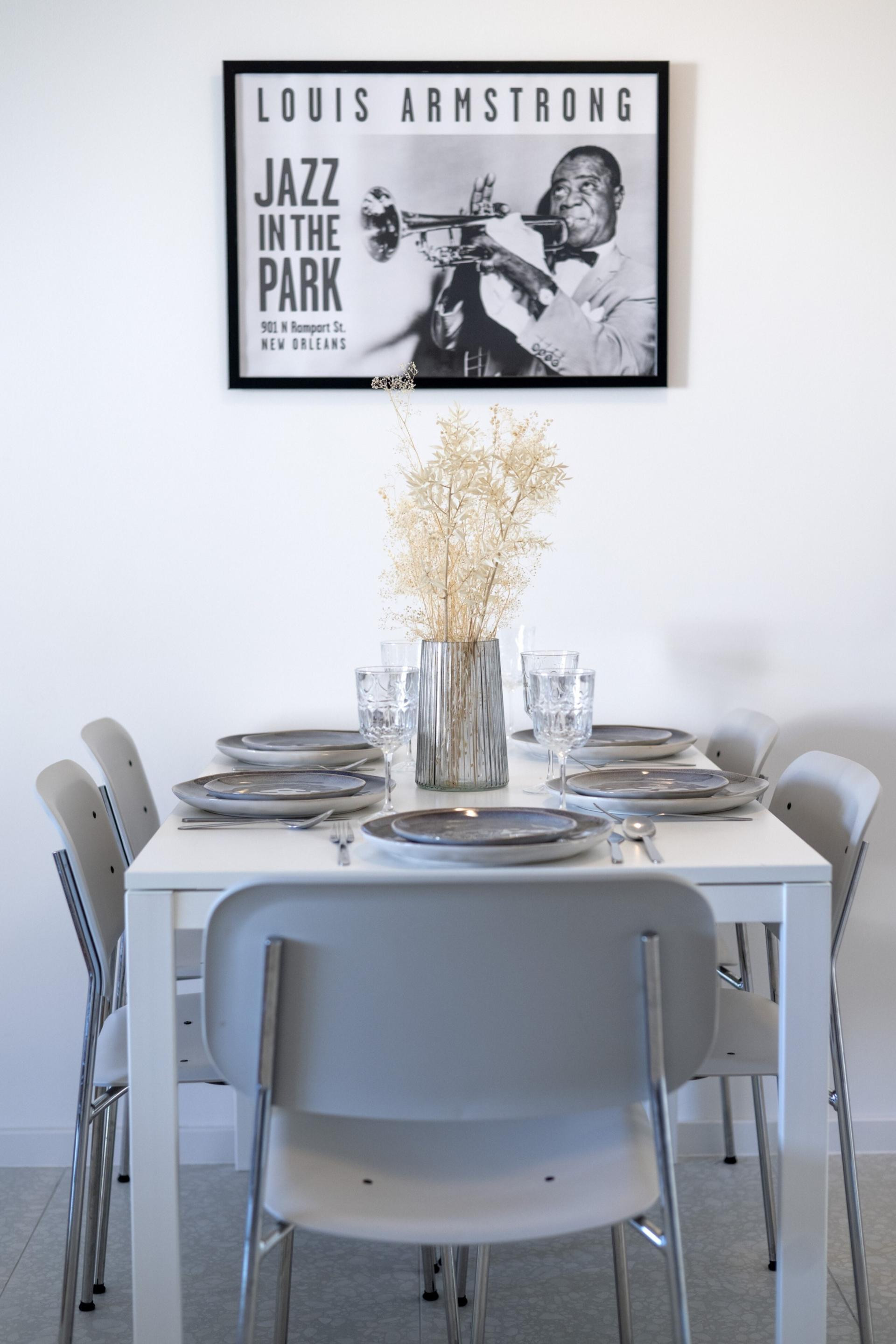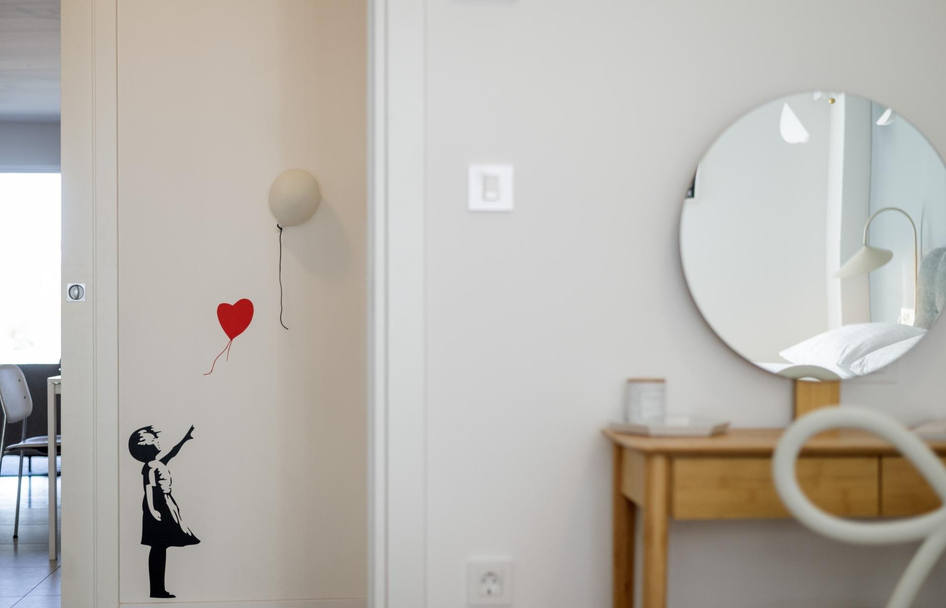 - Da prostor ne bi djelovao ‘preozbiljno‘ upotpunila sam ga detaljima na temu. Tako zid blagovaonice krasi poster slavnog jazz trubača Louisa Armstronga, dnevni boravak veliki surferski poster, a hodnik naljepnica možda najpoznatijeg Banksyjevog rada, ‘Djevojčice s balonom‘. Printu smo dodali i stvaran 3D balon izrađen od keramike - kaže dizajnerica.