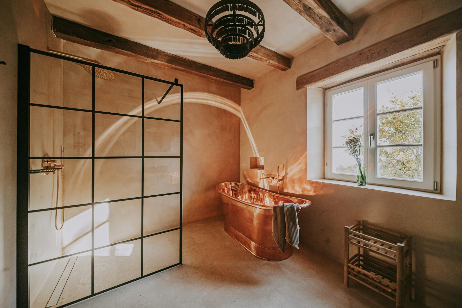 - Korištene su samo prirodne blijedo limene boje iz Bauwerka (Australija). Koristili smo podove od vapnenca iz Burgundije, hrastove podove iz Nizozemske i velike antičke kamene podove iz Istre. Antičke hrastove grede donijeli smo iz stare kuće, a namještaj je uglavnom od lana, bambusa i blijedi antikni namještaj. Mnogi su tepisi od jute, a lampe od ratana i kašmira. Kupaonice su sve u mikro cementu. Opet, sve u prirodnim zemljanim bojama i sve usklađeno - opisuje Andreas i dodaje kako su supruga i on željeli da se sve dobro uklopi u polja, masline, vinograde, šume i glineno tlo imanja.