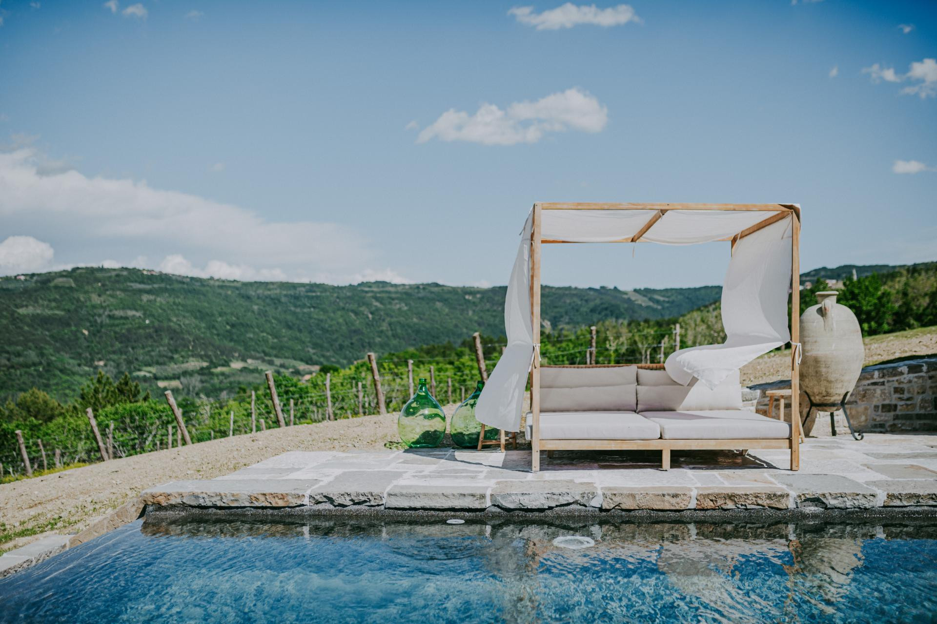 - Trebalo nam je oko godinu dana da kupimo zaselak od šest obitelji. Mnogi sastanci kod javnog bilježnika nisu doveli do uspjeha jer su mnogi vlasnici mijenjali mišljenje i cijene. Trebalo je puno strpljenja i pregovaračkih vještina da to privedemo kraju. Zaselak je bio potpuno zarastao. Stoga smo trebali dovesti kompletnu infrastrukturu, smanjiti divljinu, mjesecima premještati tlo i terase, ponovno zasaditi masline i vinograde te ga vratiti u prvobitno stanje. Rekonstrukcija je bila golem izazov za tako veliku staru kuću, pronalaženje i zamjena nedostajućih antičkih materijala. Samo postavljanje terase bazena masivnim antičkim kamenim komadima s pomoću strojeva i obrtnika trajalo je oko četiri mjeseca - govori Andreas koji se posebno prisjeća lijepe anegdote vezane uz kuću, a to je bilo snimanje holivudske produkcije "Speak no Evil" u proljeće 2023. godine. Cijelo je imanje pretvoreno u butik-hotel u Toskani, s vanjskim pozornicama, barovima uz bazen i restoranom.