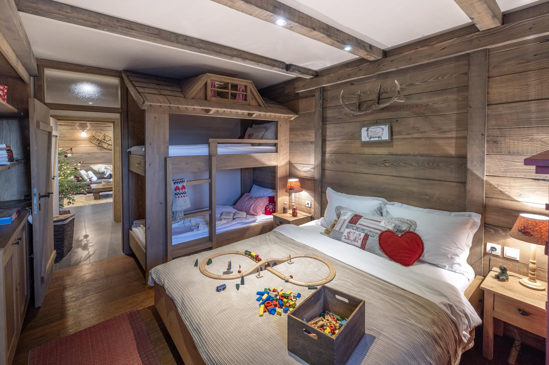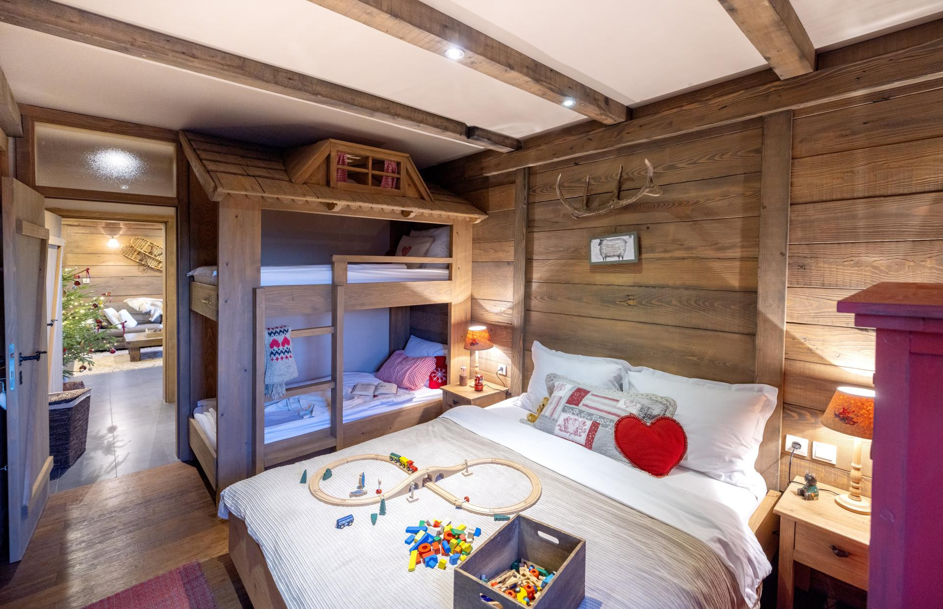 - Odabirom prirodnih boja i materijala naglasili smo teksturu drveta četkanjem godova na daskama i gredama te postigli stil alpskog chaleta, rustičnu, toplu i udobnu atmosferu doma. Neutralne teksturirane tkanine i elementi crvene boje unose kontrast i karakter u prostor, kao i ručno tkani vuneni prekrivači suprugove bake. Preferiramo maksimalizam u interijeru i jednostavno volimo starine te vještinu i kvalitetu izrade. Kao primjer su Drucker skije iz 1920-ih, rađene u Ilici 39 u Zagrebu. Proizvodnja sportske industrije bila je prva tvornica u Hrvatskoj koja je izvozila čak u Norvešku i Švedsku. S druge strane, snježne krplje kupili smo na eBayu i samim su čudom dospjele do nas. Ručno su ih 1930-ih izradili izvorni Indijanci iz Idaha, a primjer su vrhunske izrade. Sličan su primjer i stare kožne klizaljke iz 1940-ih, također nabavljene preko interneta. Sve je to isprobano i funkcionalno u povremenim zimskim radostima na snijegu i ledu, uz poneku modricu. Bilo je sve to baš jako zabavno - priznaje vlasnica Milena dok nam pokazuje njoj jako drage dekore, antikne medvjediće punjene piljevinom, krpicama ili slamom.