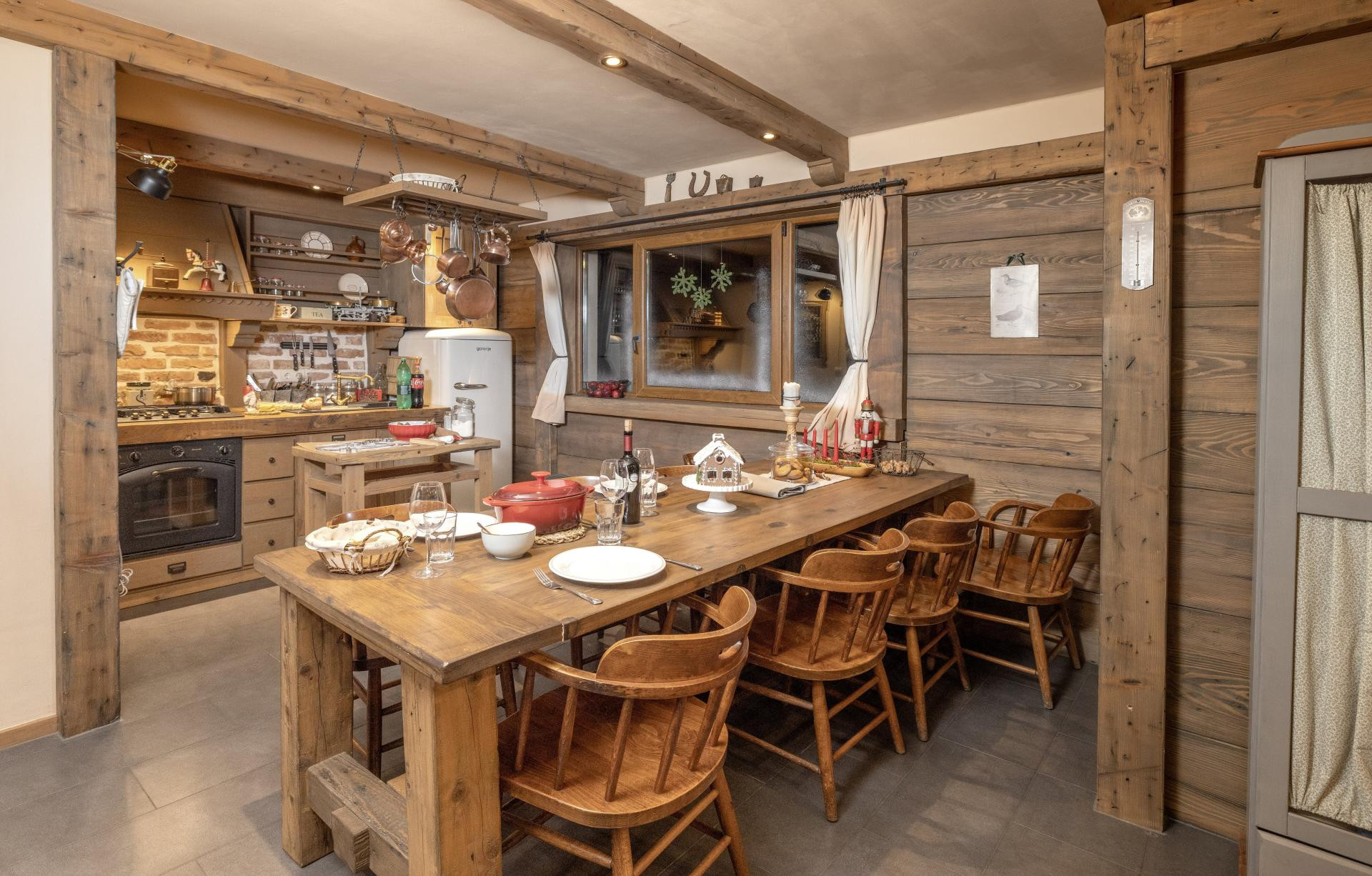 - Građevinski radovi trajali su godinu, a potom smo suprug i ja svaki slobodan trenutak provodili u planiranju, skiciranju te nabavi materijala i dekora, kao i u izradi namještaja. Naša kuća nalazi se na 1200 metara nadmorske visine, na kupreškoj planinskoj visoravni, pod padinama planine Stožer, kako se i zove tamošnje skijalište. Eksterijer kuće izgleda klasično i na prvi pogled nitko ne sluti da je interijer, koji nam je kao vlasnicima omogućio da razigramo maštu, obložen drvenim oblogama i gredama, inspiriran satima koje smo proveli listajući francuske časopise o uređenju domova, posebno alpskih chaleta. Riječ je o dva zasebna prostora, površina jednog je 85 četvornih metara, a drugog 25 kvadrata, koji čine cjelinu s ručno izrađenim namještajem koji nesavršenostima i grubom teksturom naglašava rustikalnost interijera. Otvoreni tlocrt čine boravak, blagovaonica i kuhinja, dvije sobe s pripadajućim kupaonicama, a kamin i podno grijanje pridonose toplini prostora. Manji dio predviđen je za goste, kojima je na raspolaganju jednak komfor - opisuje vlasnica Milena Jozipović i prisjeća se kako su suprug i ona nakon kupnje zemljišta vrijedno prikupljali predmete sa svih putovanja, buvljaka, s interneta i iz antikvarijata te potom razmišljali kako ih uklopiti u prostor. Mnogo je dragih predmeta, naslijeđenih i zaboravljenih u maloj šupi ili na tavanu, strpljivo čekalo da budu postavljeni na najistaknutiju policu ili stalažu i tako uljepšaju prostor.