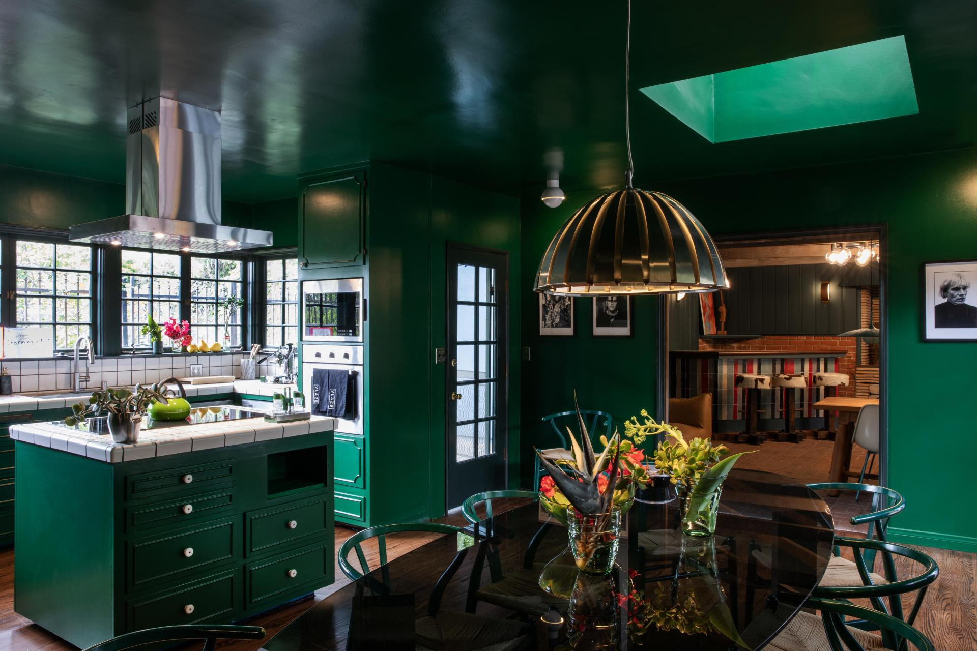 U središtu Piloseneove filozofije nalazi se jedno pravilo koje je obilježilo i ovaj projekt, a to je da nikada ne ostavlja strop bijelim. Bijeli strop, tvrdi on, "prereže" prostoriju na pola i gasi njezinu energiju. Boja, kada obuhvati i strop, stvara jedinstven, kohezivan ambijent koji posjetitelja doslovno obavija. U Zappa Nestu ta je ideja provedena do kraja. Stropovi su ili u istoj nijansi kao zidovi ili u snažnom kontrastu, što prostoru daje osjećaj dubine i intenziteta, posebno u kombinaciji s prirodnim svjetlom Hollywood Hillsa. Zasićeni pigmenti koje koristi Tonester Paints mijenjaju se tijekom dana, reagirajući na sunce i sjene, pa interijer postaje dinamičan, gotovo živ.