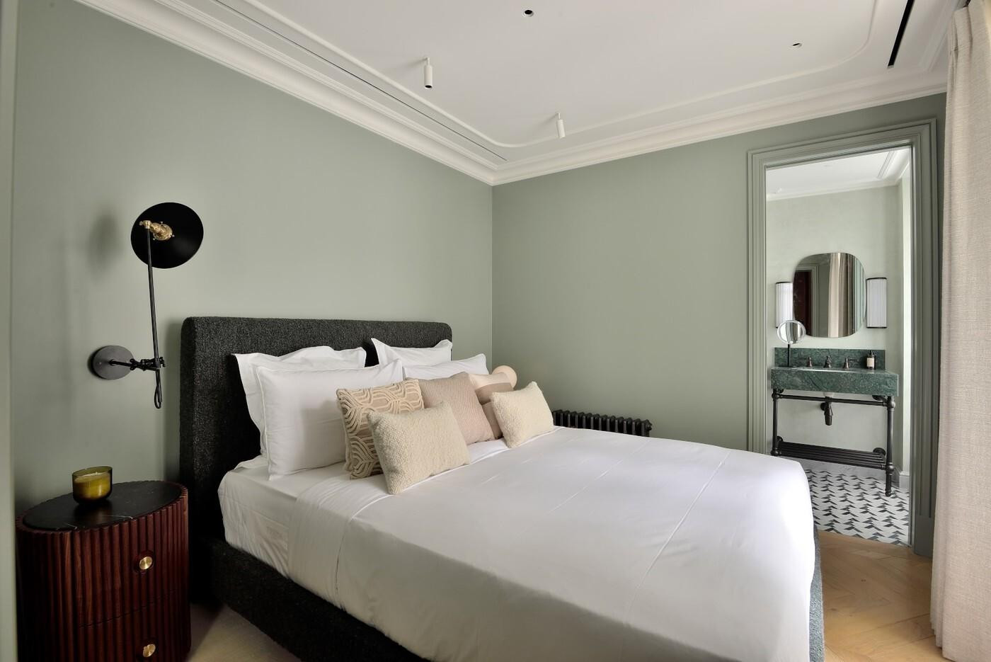 Stan ima dvije spavaće sobe, od kojih je glavna spavaća soba prava privatna oaza - s prostranom kupaonicom u kojoj se ističu kameni detalji i raskošna samostojeća kada, kao diskretni hommage zlatnim danima pariške elegancije.
