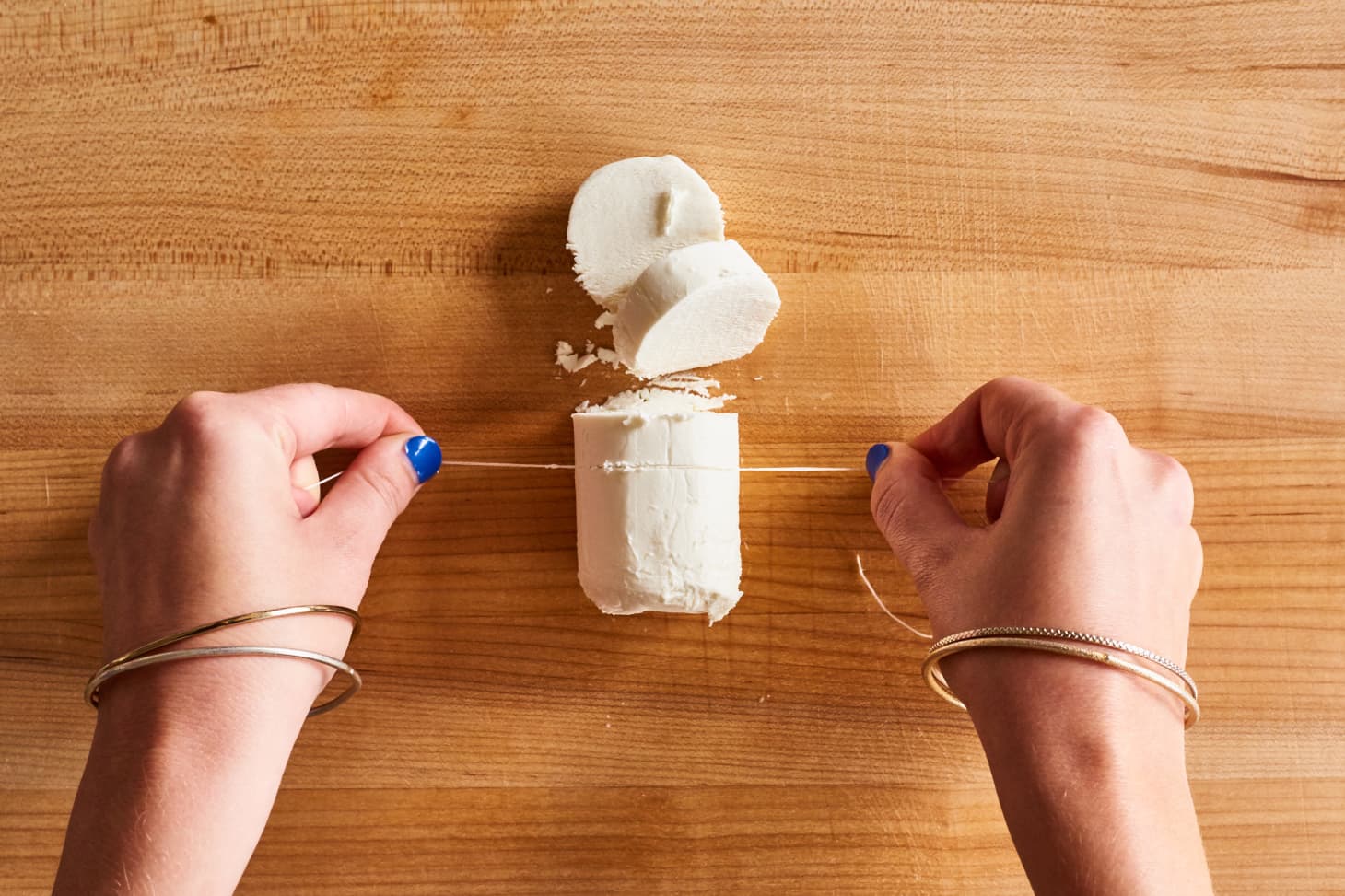 Zubni konac možete koristiti za rezanje stvari u kuhinji koje su sklone raspadanju. Držite ga između dva prsta i povucite prema dolje za rezanje na kriške ili, ako je moguće, gurnite ga ispod predmeta i pretvarajte se kao da ćete vezati nit, no umjesto toga nastavite ga povlačiti kako biste odrezali uredne šnite. Evo nekoliko stvari koje zubnim koncem možete lakše izrezati nego nožem.