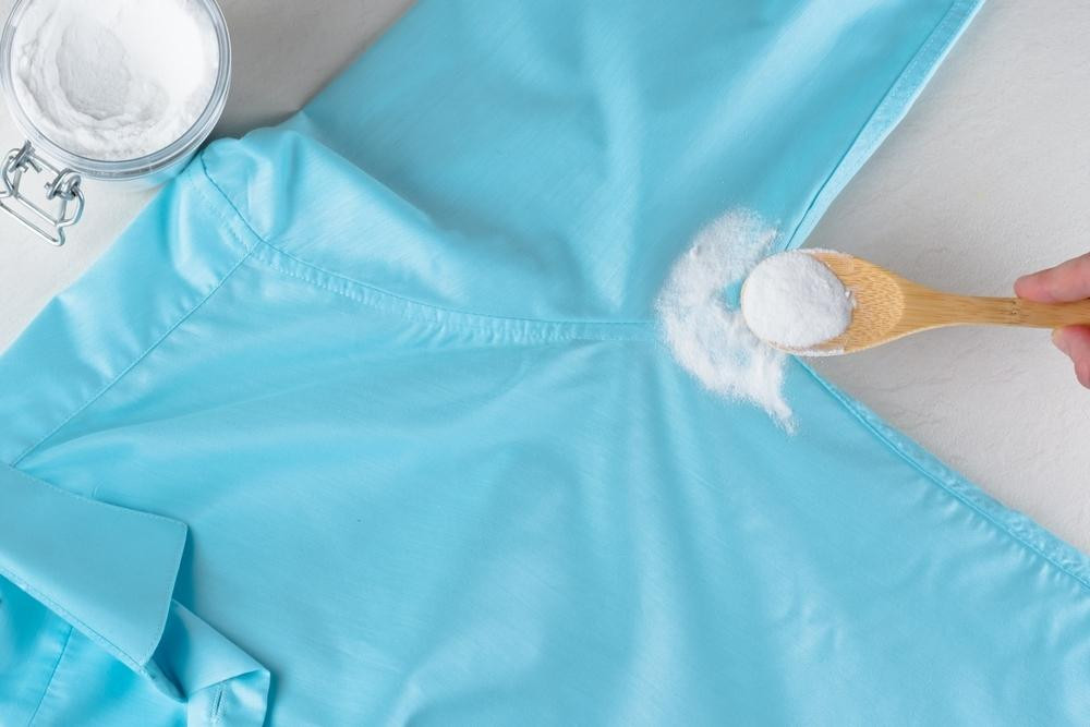 Jedna od najdjelotvornijih metoda uklanjanja mrlja od dezodoransa uključuje korištenje sode bikarbone i vodikovog peroksida. Smjesa tih sastojaka djeluje poput prirodnog izbjeljivača i sredstva za razgradnju proteinskih ostataka. Nakon što je nanesete izravno na mrlju, smjesu ostavite da djeluje 30-ak minuta, zatim odjeću operite u stroju za pranje rublja. Ipak, budite oprezni kod obojenih tkanina jer peroksid može izblijediti boju tkanine. Za osjetljivije tkanine možete koristiti pastu od sode bikarbone i vode, koju nježno utrljajte u mrlju i zatim isperite.