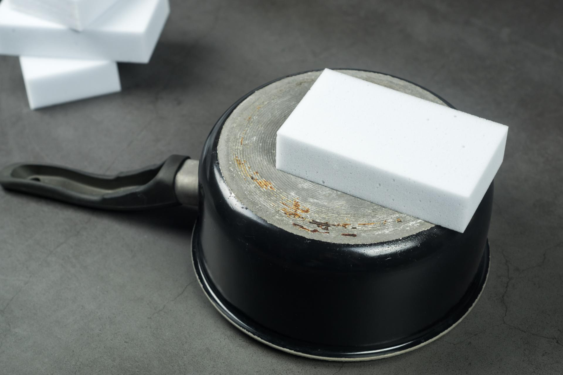 Riječ je o melaminskoj pjeni koja djeluje poput vrlo fine brusne površine. Izvrsna za tragove na zidovima, obuću, kuhinjske površine i pribor. Uvijek prvo testirajte na manjem području jer može skinuti boju ili završni sloj.