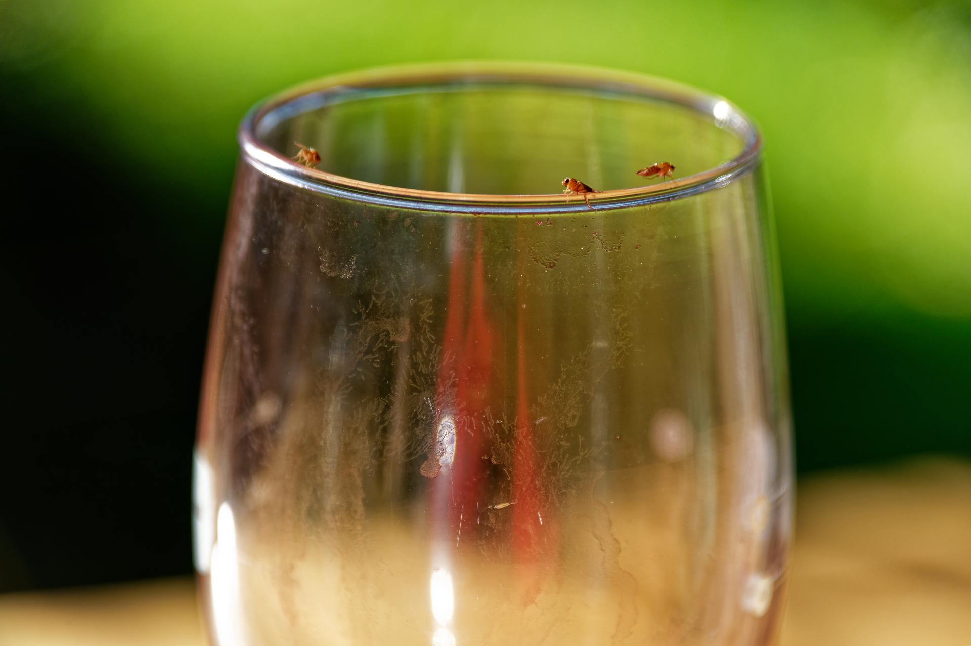 Vinske mušice okupljaju se oko zdjele s voćem, ali i oko praznih čaša, u sudoperu, pa čak i kanti za otpad, privučene fermentirajućim voćem, sokovima, vinom, octenim mirisima i ostacima hrane.