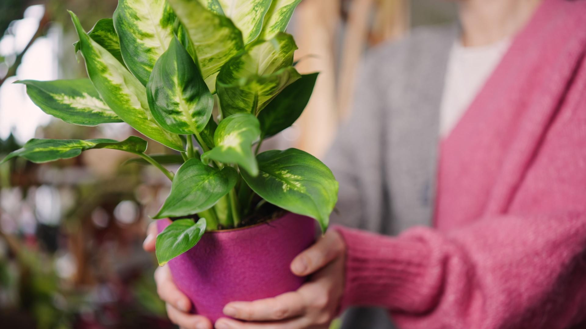 Među najpoznatijim otrovnim kućnim biljkama svakako je difenbahija koju zovu još i "svekrvin jezik". Poznataje po dekorativnim listovima u nijansama zelene, bijele i žute, može narasti od 30 centimetara pa sve do impresivnih 2,4 metara, ovisno o vrsti. Iako rijetko cvjeta u zatvorenim prostorima, njeni sočni listovi i stabljike sadrže otrovni sok koji može izazvati jake iritacije kože.