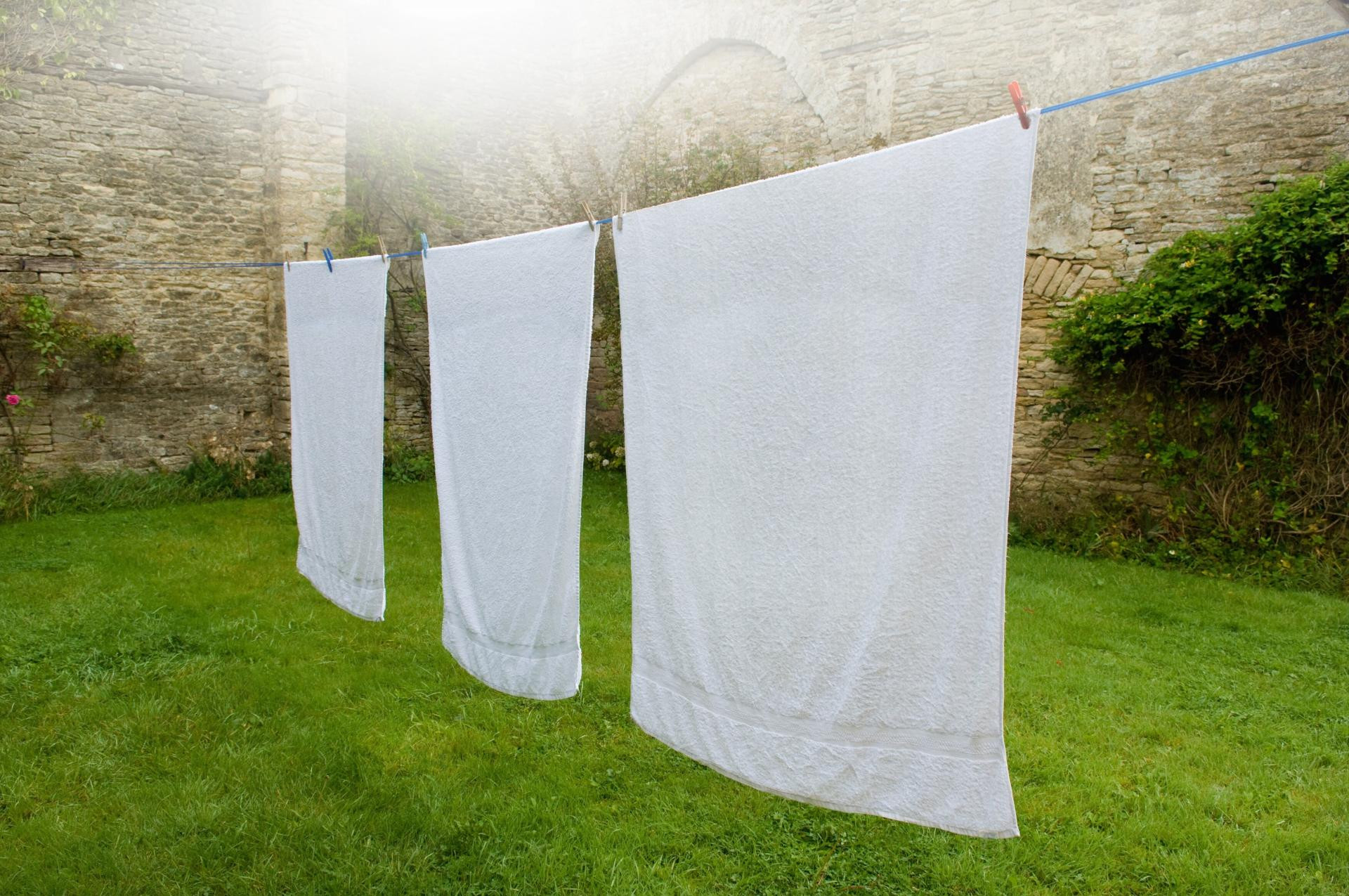 Nakon završetka pranja, ručnike je najbolje osušiti na otvorenom, na suncu. Sunčeve zrake u kombinaciji s limunskom kiselinom dodatno pomažu u čišćenju i izbjeljivanju vlakana, pa ručnici postaju ne samo mekši, već i svjetliji. Ova je metoda posebno prikladna za bijele i svijetle ručnike; kod tamnijih ručnika, koji bi mogli izblijediti, preporučuje se umjesto limuna koristiti alkoholni ocat (koji će također ukloniti naslage, ali bez rizika za boju).