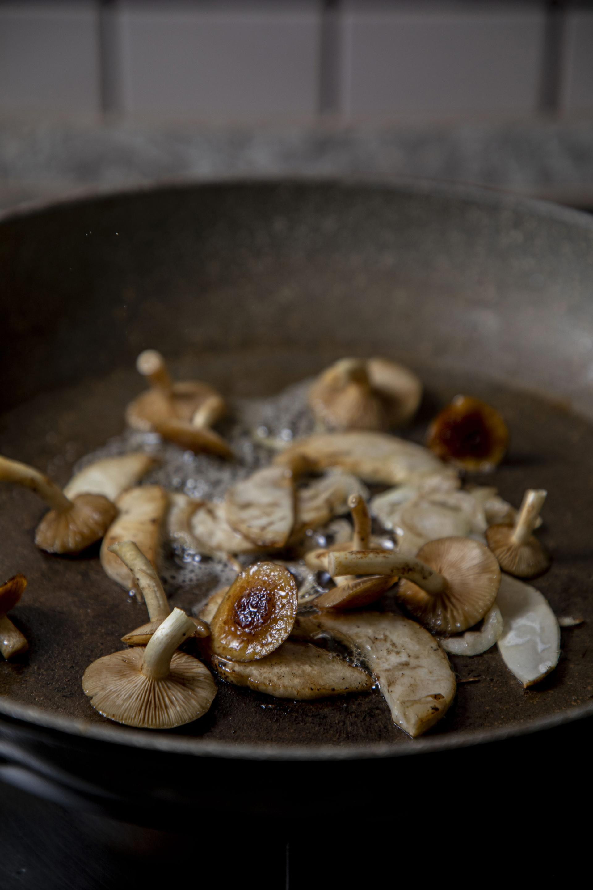 U velikoj posudi zakuhajte 5 sitno nasjeckanih Lion‘s Mane gljiva. Po želji dodajte sodu bikarbonu za uklanjanje mirisa.
