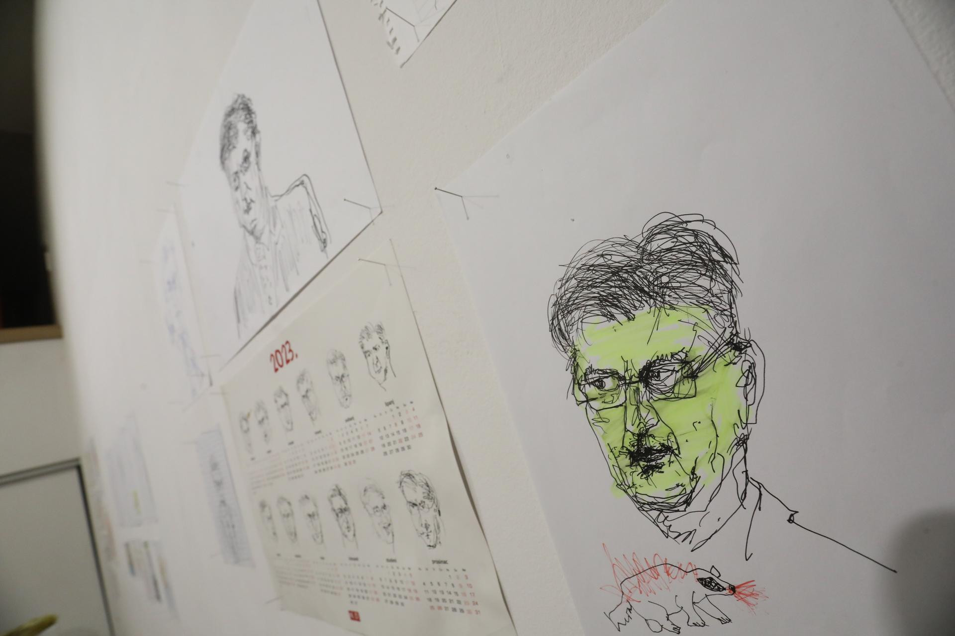 Intimno, najdraži su mi crteži u kojima portretira osobe iz kulture. Izložba je postavljena po cjelinama. Na jednoj su se cjelini tako na izložbi mogle vidjeti oštre crte lica, ali i znatiželjno, inteligentno oko kritičara Igora Mandića, nešto nježniji, no portretno precizni crteži Antuna Masle i Inoslava Beškera. I karizmatični Vladimir Dodig Trokut.
