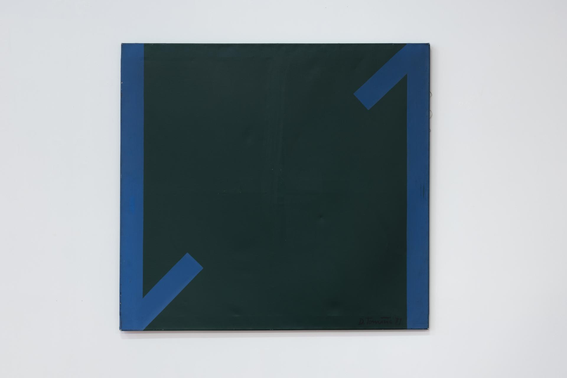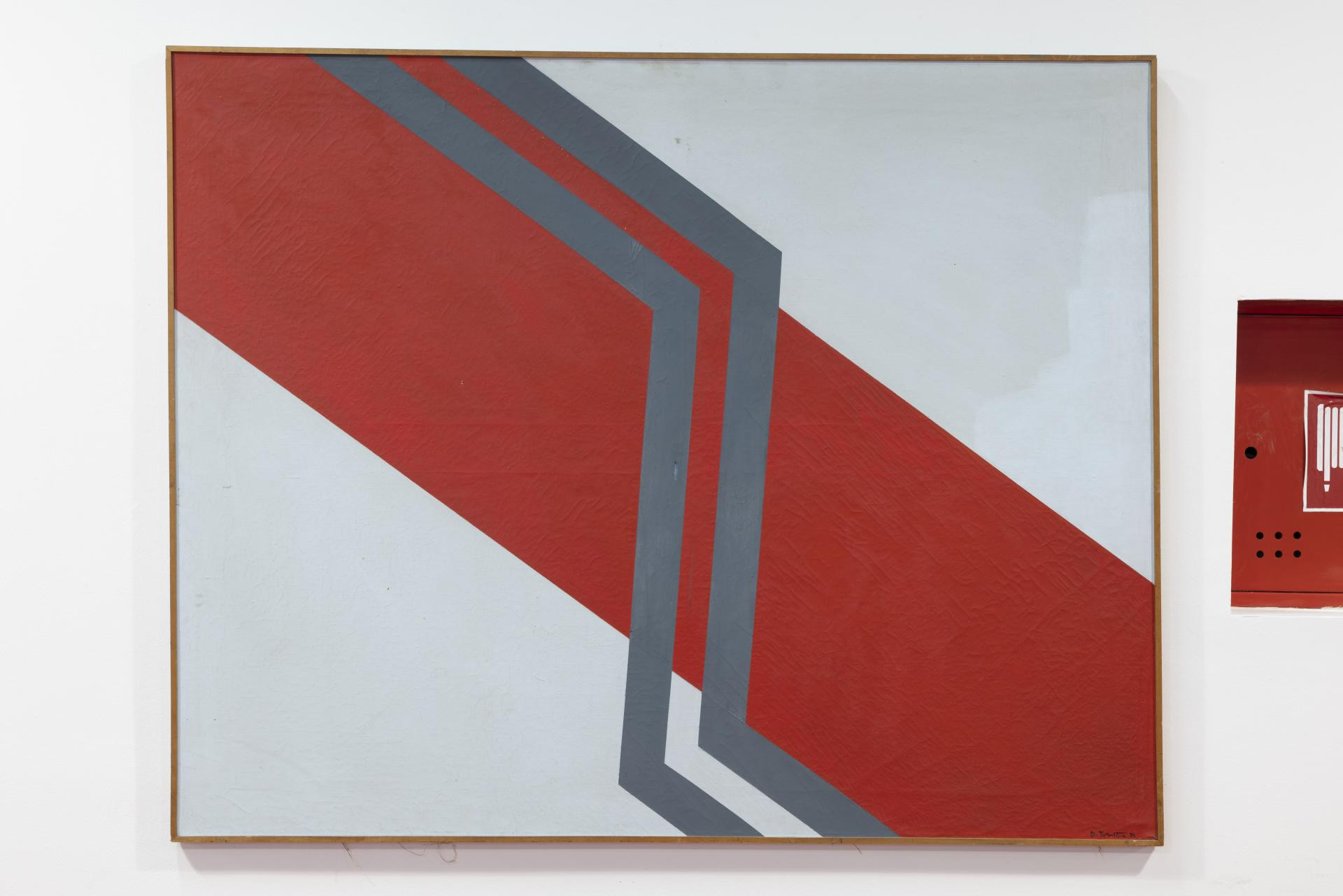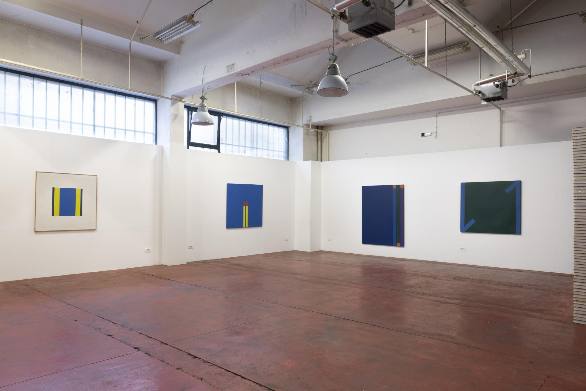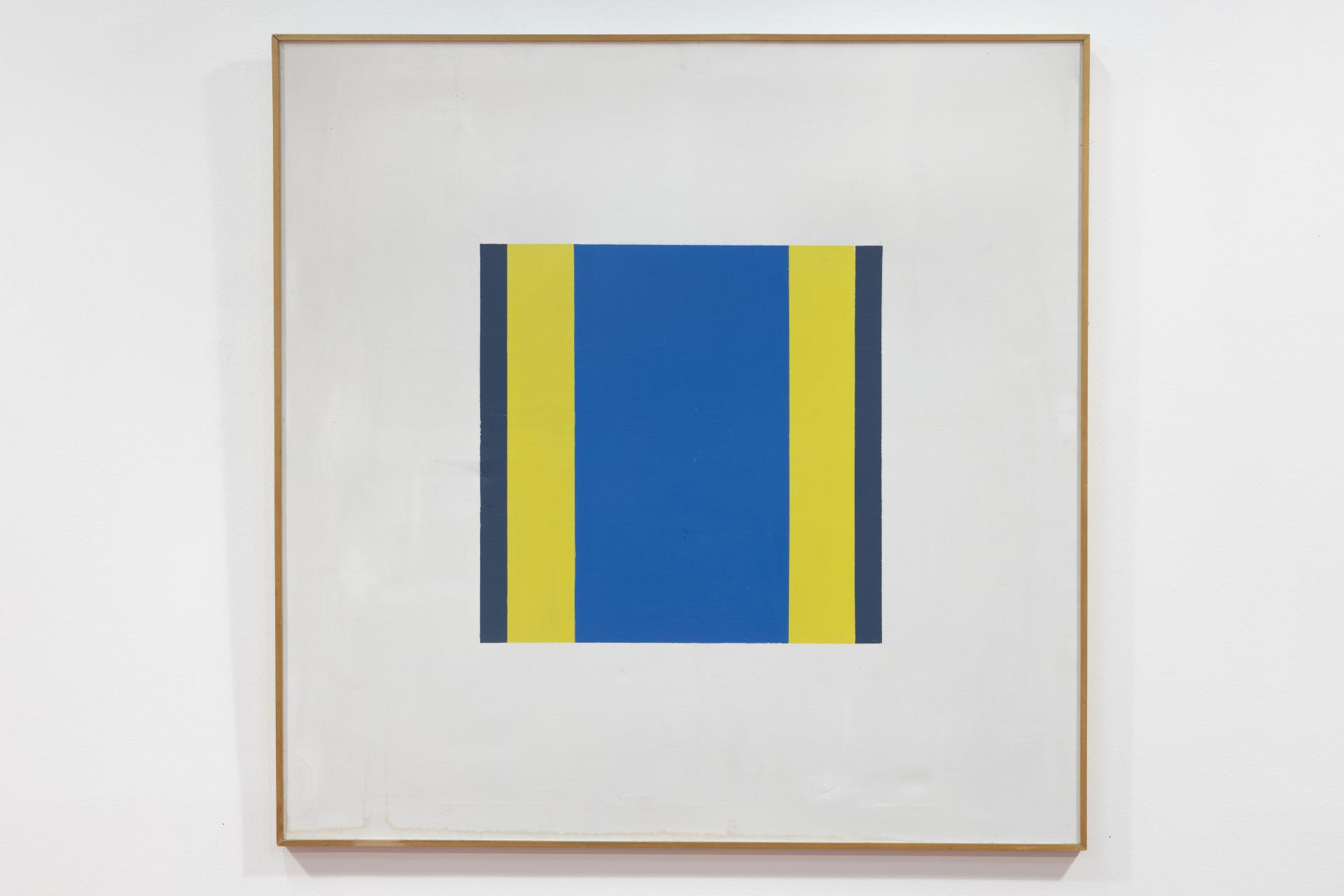 Izložene slike iz tog razdoblja pokazuju kako se motiv reduciran na nekoliko traka boje pretvara u samostalan znak. Vertikale, dijagonale i ‘chevron‘ prijelomi funkcioniraju kao vizualni signali: rub i boja postaju mjera slike, a ekonomija sredstava stvara maksimalan vizualni učinak. Paleta je reducirana, ali dinamična - plava, žuta i crvena nose strukturu kompozicije, dok siva, zelena ili narančasta djeluju kao akcenti, bliski jeziku urbane signalizacije.
