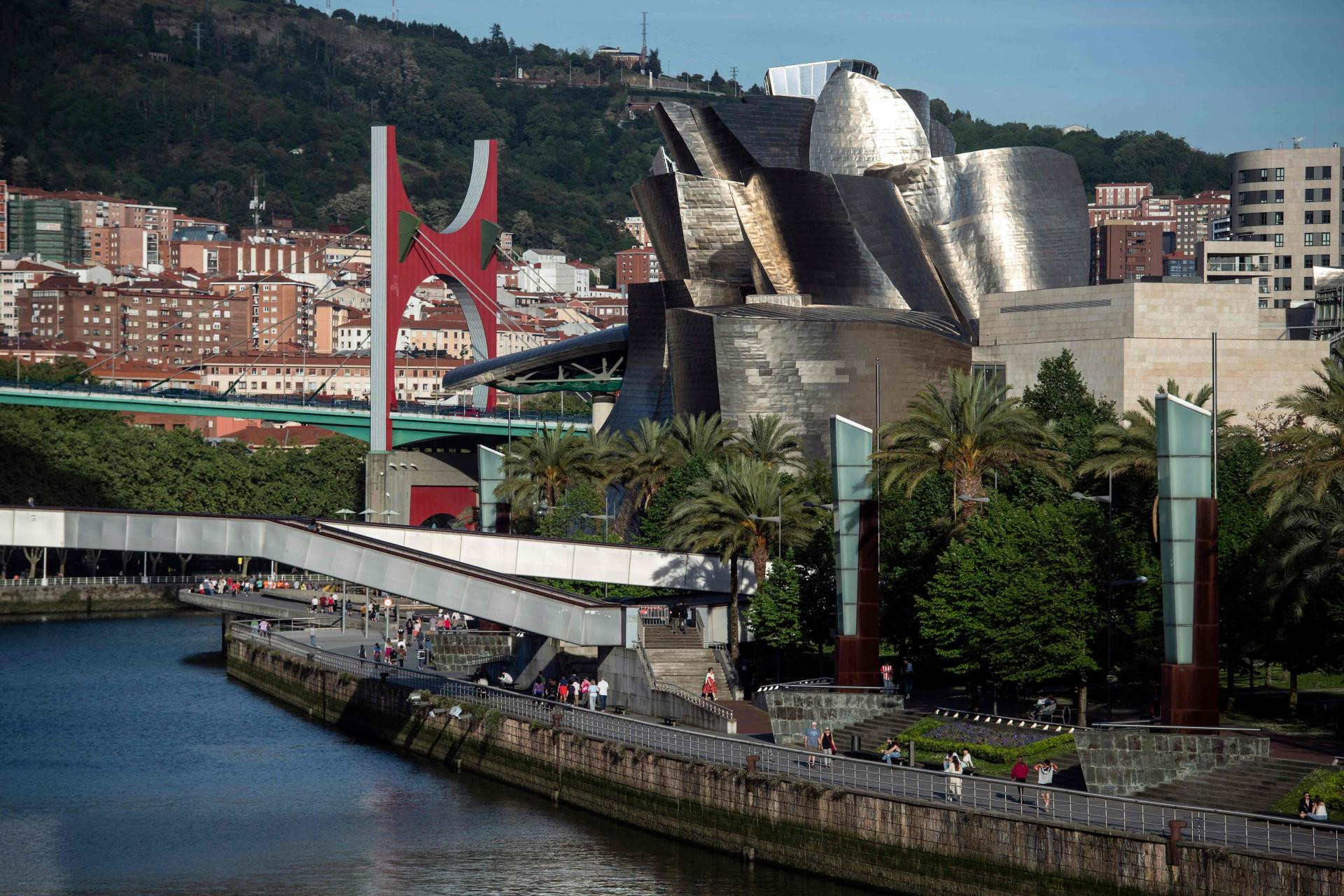 Partial view taken 15 October of the new Guggenheim museum at Bilbao built by American architect Frank O. Gehry next to the Bilbao river. Spanish King Juan Carlos will inaugurate the museum on Saturday 18 October. (Photo by DOMINIQUE FAGET/AFP)