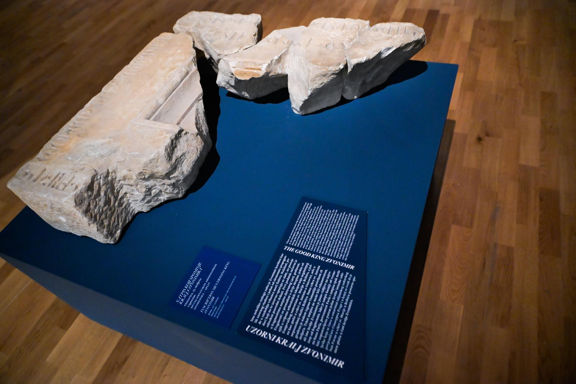 Na izložbi se, između ostalog, ističu Višeslavova krstionica, natpis sa sarkofaga kraljice Jelene, Bašćanska ploča, Ladislavov plašt, škrinja sv. Šimuna i rijetki primjerci povijesnih dokumenata poput Historia Salonitana, povijesno djelo splitskog povjesničara Tome Arhiđakona iz 13. stoljeća.