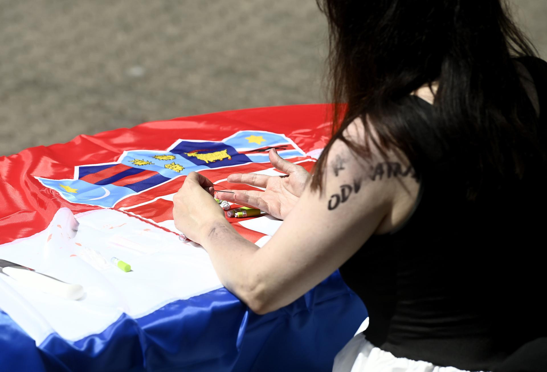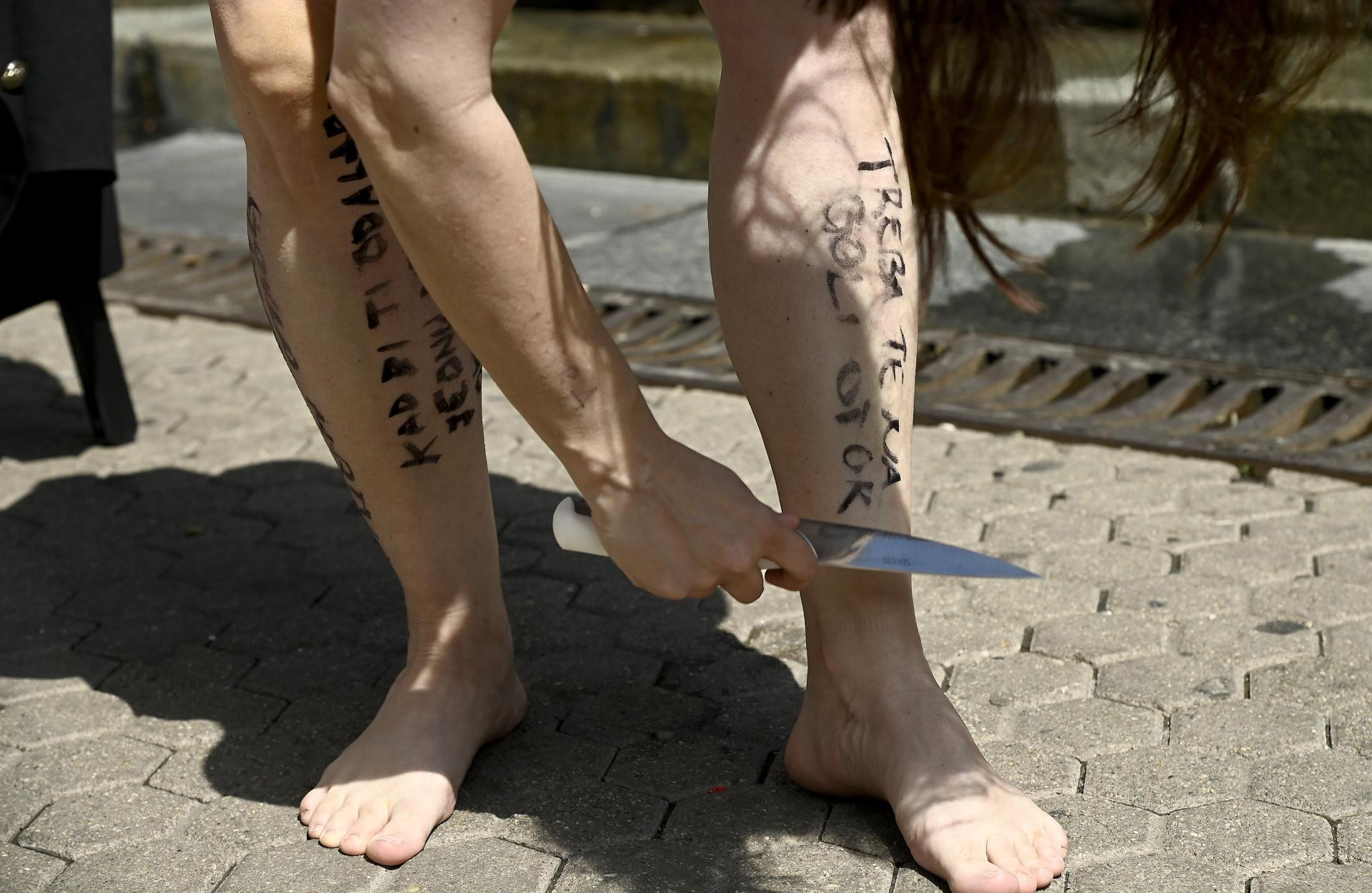 Performerica započinje pokušaj uklanjanja natpisa koristeći različite predmete koji nose snažnu simboliku: krpicu za suđe, posvećenu vodu, sapun, staklo, grubi kamenčić i nježne latice cvijeta; medicinski alkohol. Svaki predmet predstavlja drugačiji aspekt pokušaja iscjeljenja i oslobađanja od društvenih pritisaka i unutarnjih rana.