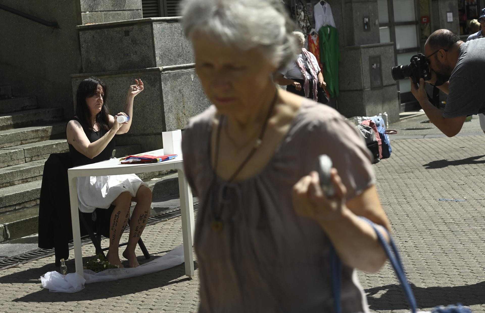 U sklopu Perforacija, u organizaciji udruge Domino, izvedeno je danas nekoliko performansa, među onima i onaj Krhotine čija je autorica Arijana Lekić-Fridrih, u podnožju stepenica na kraju Splavnice koje vode prema tržnici Dolac. Preko tijela je ispisala ružne poruke, mahom grafite, koje se odnose na žene, a nalaze se u javnom prostoru. Ova je umjetnica inače i autorica "Tihe mise", kontra muškaraca koji kleče svake prve subote u mjesecu.