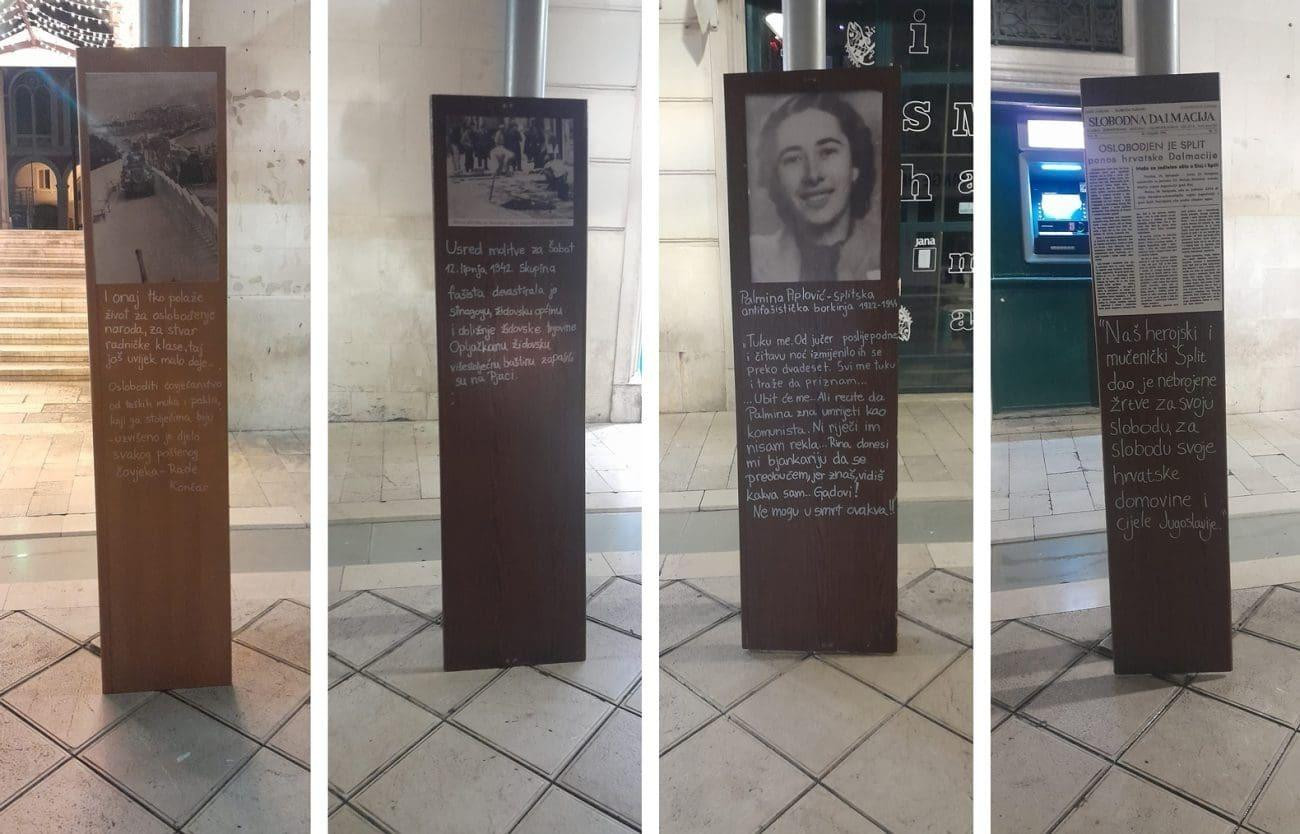 "U centru Splita izloženi su edukativni radovi i arhivske fotografije kojima su mladi Splita utvrdili povijesne činjenice, te ovom intervencijom u javnom prostoru skrenuli pažnju na važnost suprotstavljanja mržnji prema manjinama i drugačijima, kao i nedvosmislenog odbacivanja fašizma", poručuju organizatori izložbe u Marmontovoj ulici, Mladi Splita, otvorene 29. strudenog.
