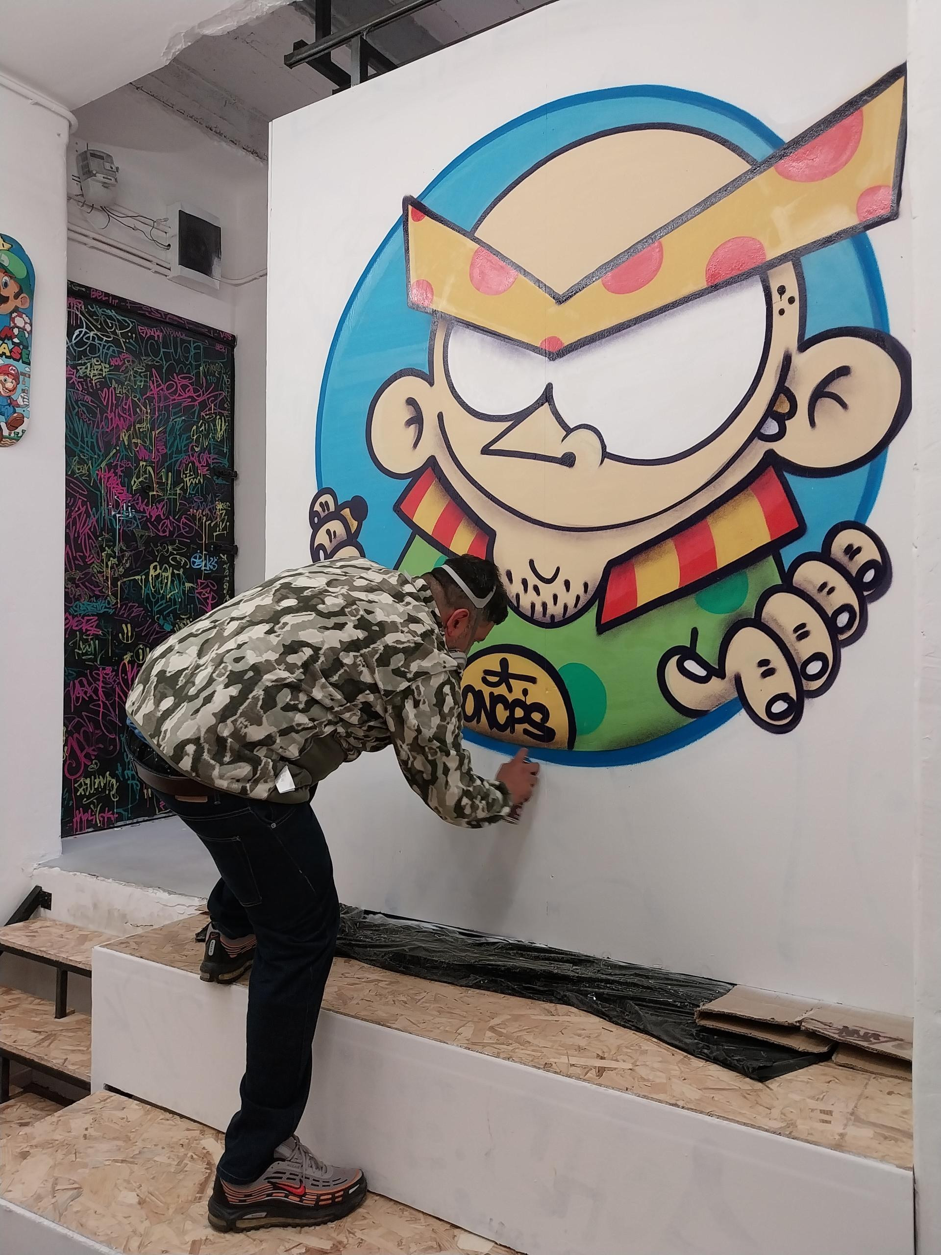 Miguelito je čileanski street art umjetnik koji živi u Madridu. Prije otvorenja izložbe moglo ga se, prolazeći Tratinskom, vidjeti kako crta grafite u unutrašnjosti galerije. Na dan otvorenja izlog je bio prekriven crnom plastikom koja je skinuta u noćnim satima. Ovdje se okupila ekipa koja je izgledala kao netipični posjetitelji umjetničkih galerija, ali baš je to bilo nešto novo za Zagreb.