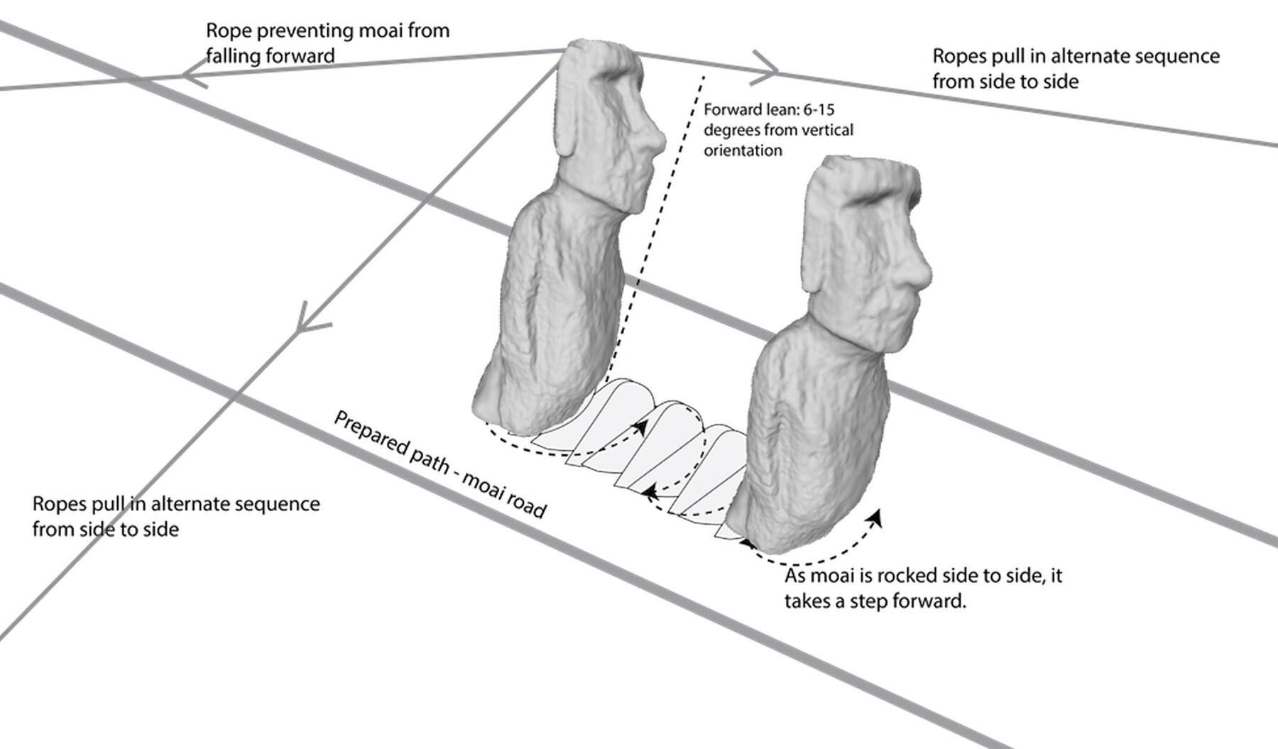 Godinama se raspravljalo kako pomaknuti kip težak kao kamion. Mnogi su mislili da su ih vukli ležeći po drvetu. Ali nova mjerenja pokazuju nešto drugo. Kipovi pronađeni uz stare ceste imaju šire dno, lagani nagib prema naprijed i oblik koji se lako njiše. To nema smisla ako ih se vuklo dok leže, ali ima savršen smisao ako stoje uspravno.