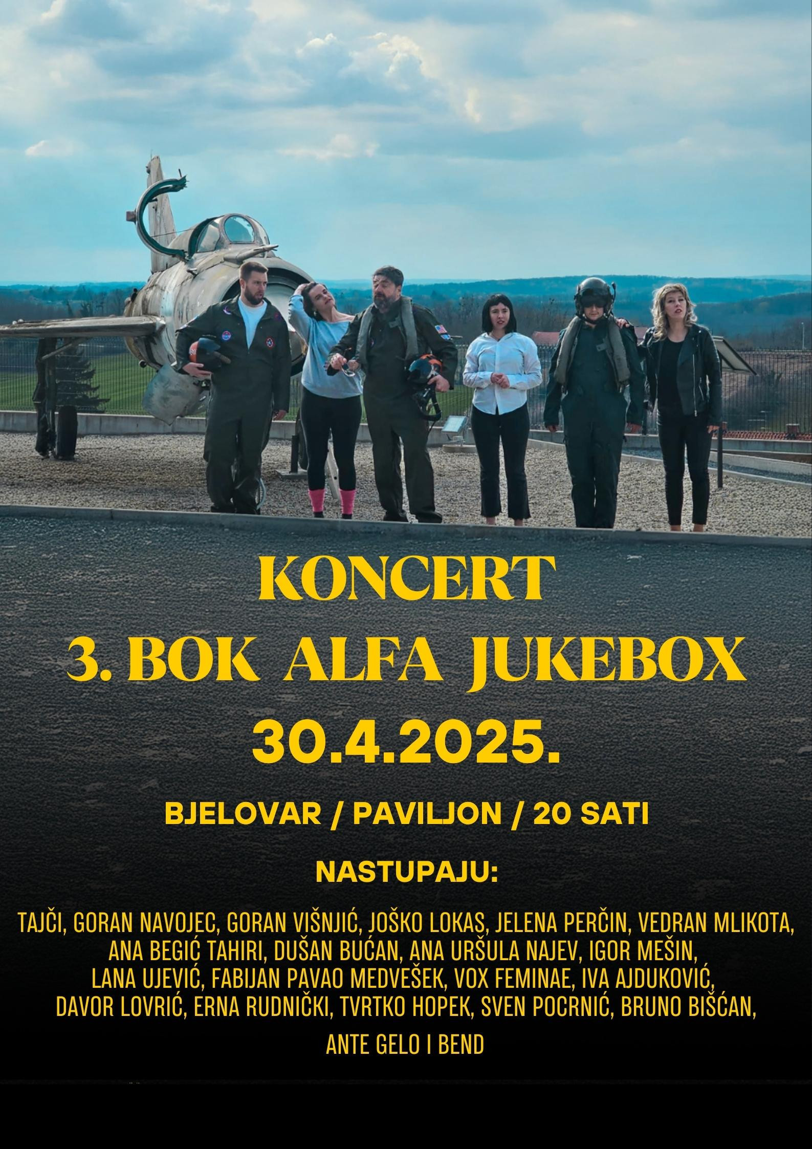 Treću godinu za redom poznati bjelovarski BOK FEST počinje koncertom BOK Alfa Jukebox, na kojem nastupaju glumci i pjevači. Kako stoji u najavi, organizator koncerta, Alfa radio, priprema odličnu atmosferu, a ovogodišnja tema su nezaboravni hitovi iz legendarnih filmova i serija poput Top Guna, Dirty Dancinga, Greasea, Flashdancea, Pretty Woman, ali i domaćih klasika poput Dnevnika velikog Perice i Tko pjeva zlo ne misli...